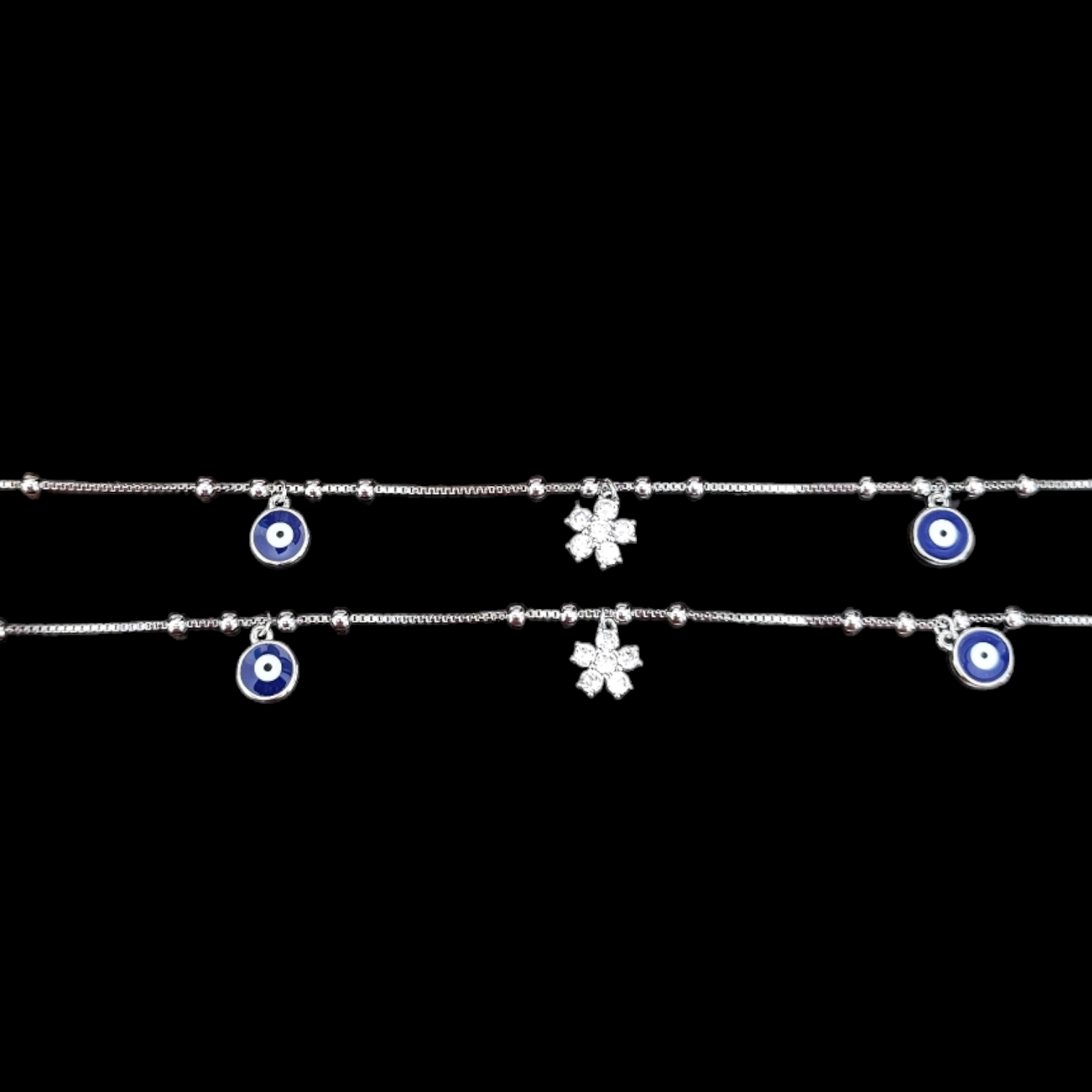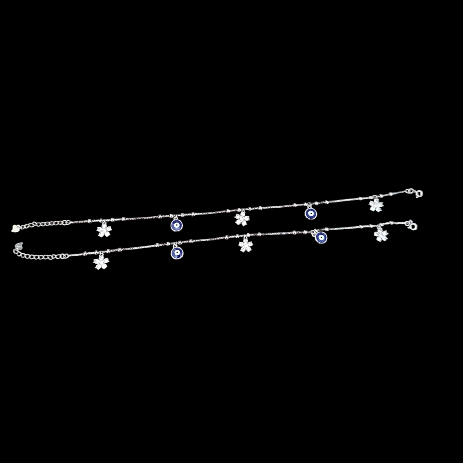 925 silver Evil Eye and zircon stone flower charm anklet