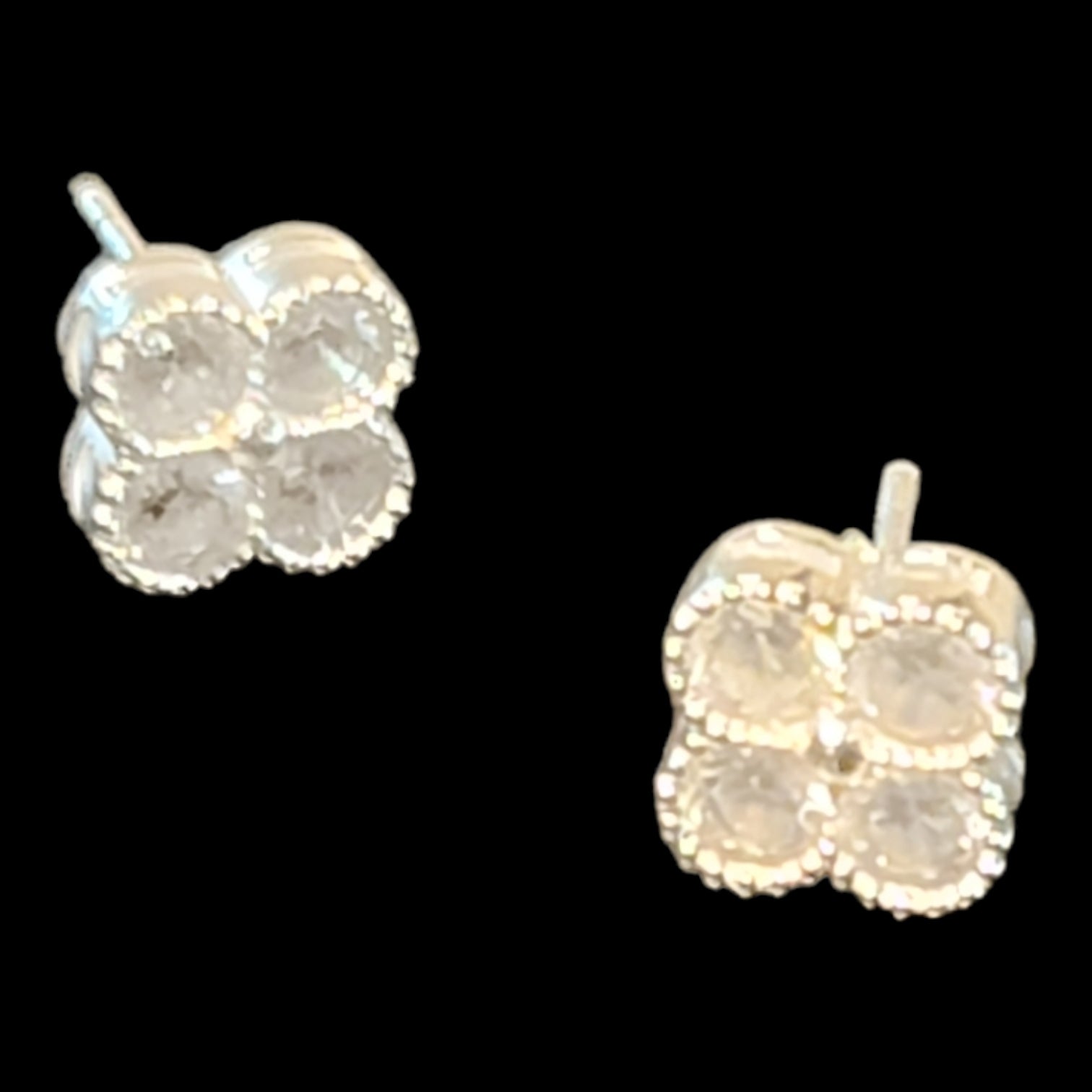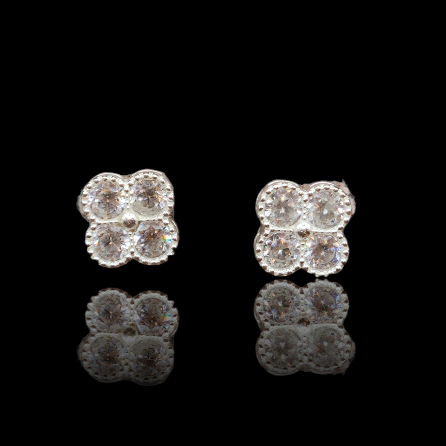 925 Sterling Silver Four Clove Stud Kids Earrings.