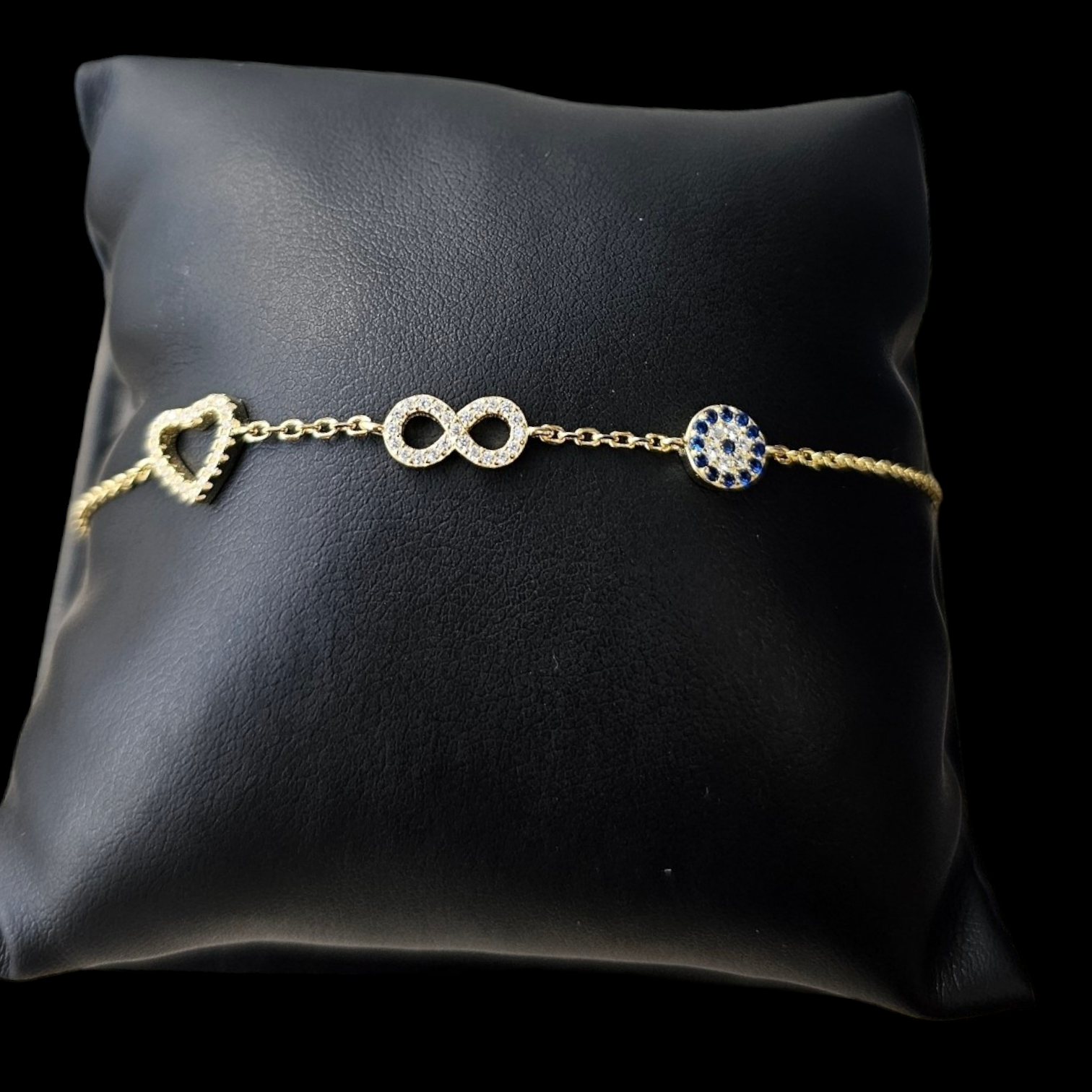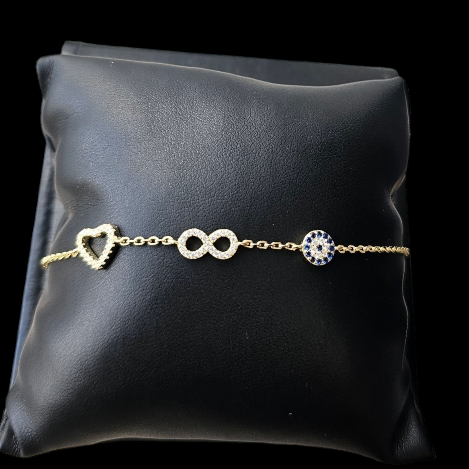 Beautiful infinity bracelet with a heart in 925 sterling silver.