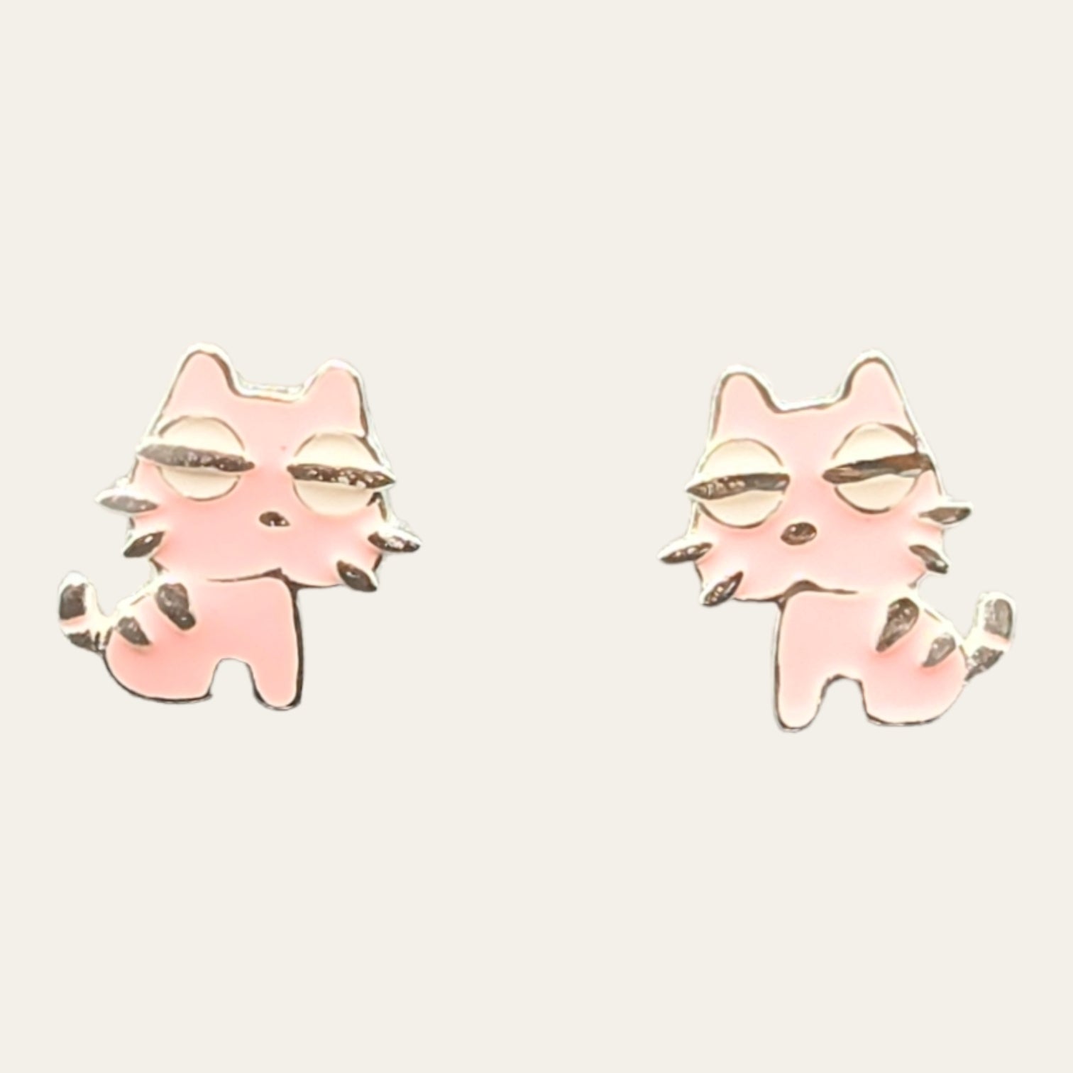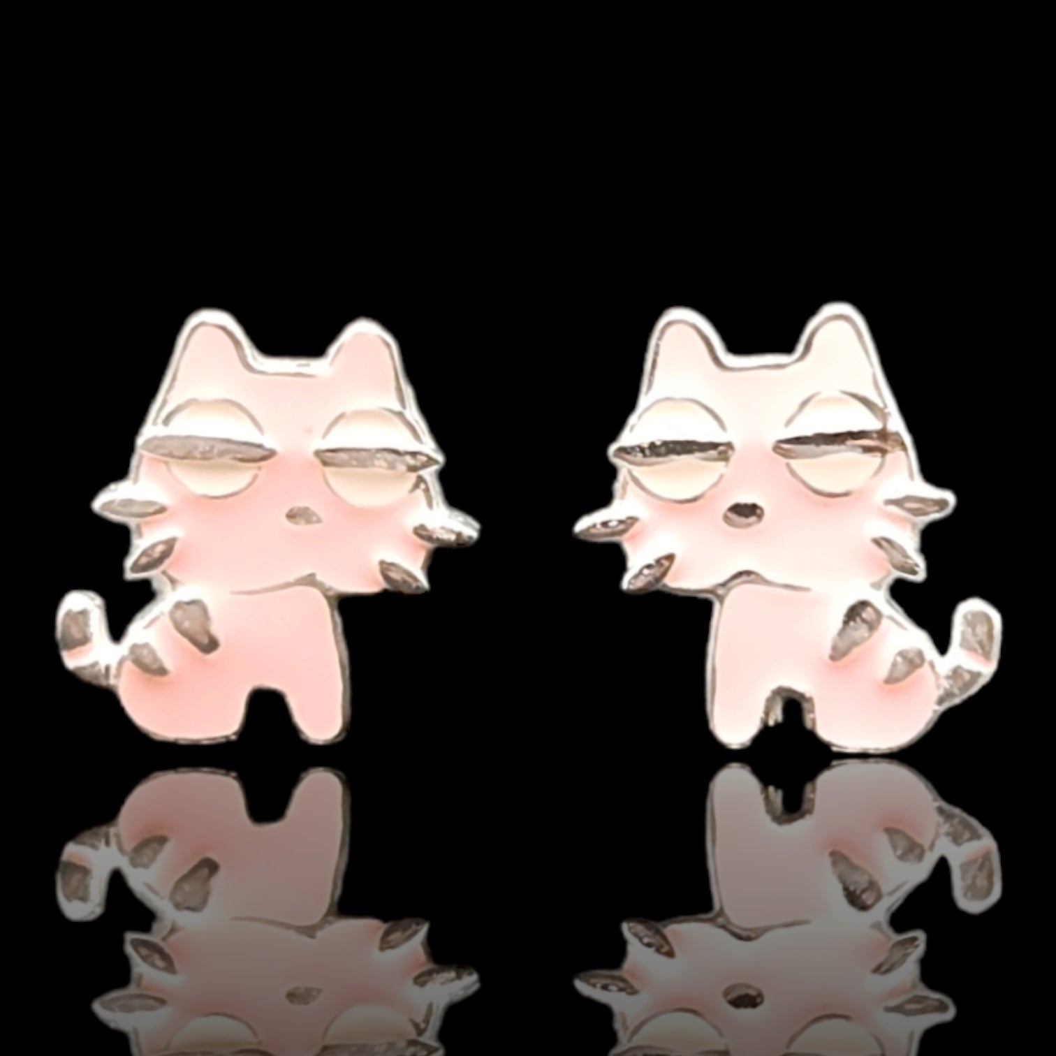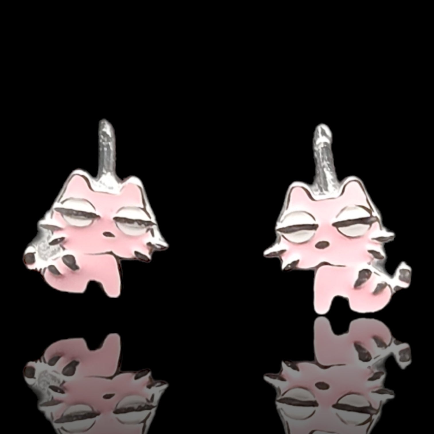 925 Sterling Silver Pink kitten Stud Kids Earrings.