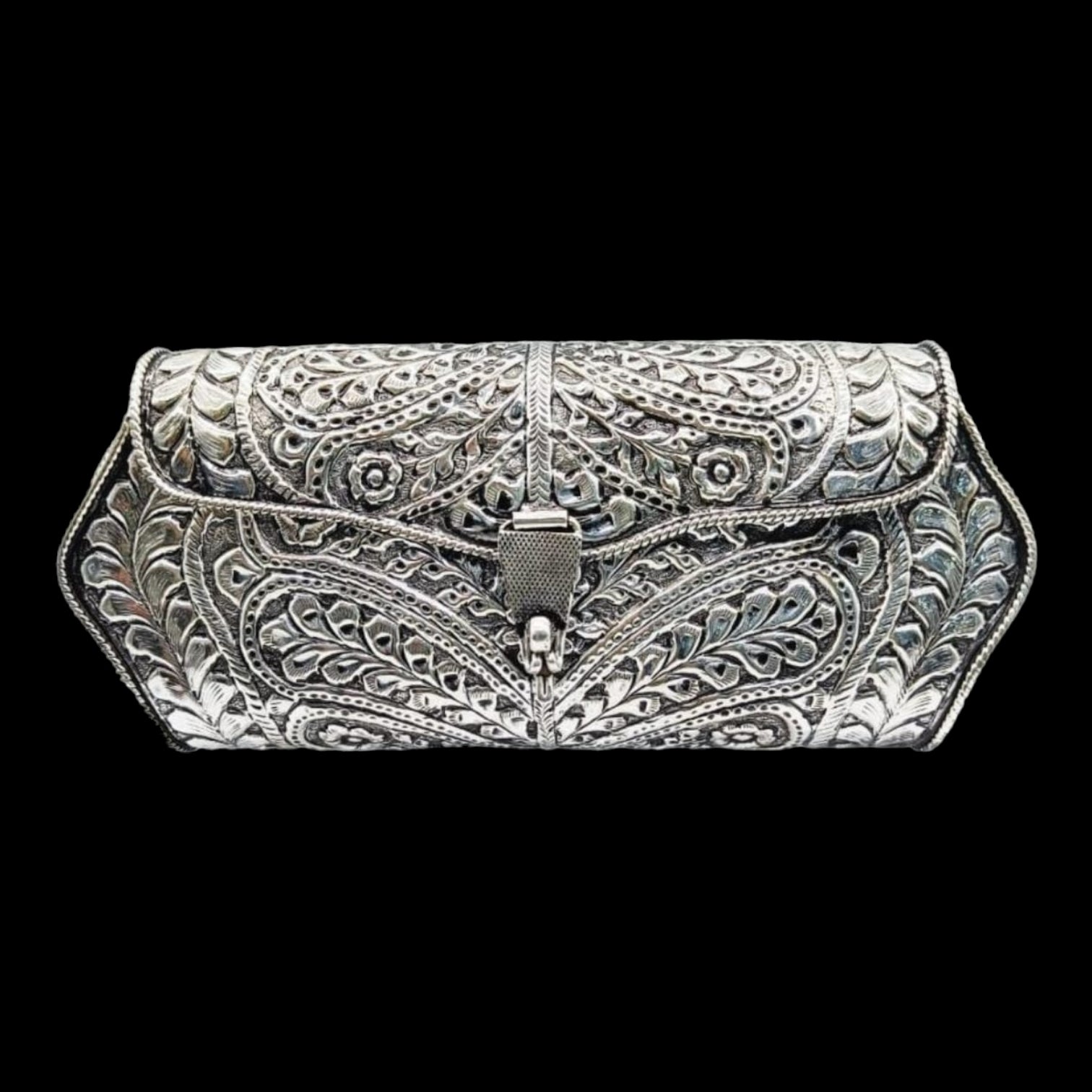 925 Antique Silver Chic Clutch Accessories For Party.Stunning Lock in Easy to Carry