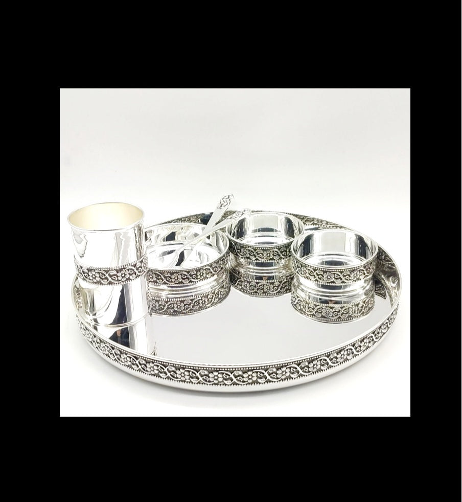 Beautiful handcrafted dinner set in 925 silver antique polish and nakshi design.