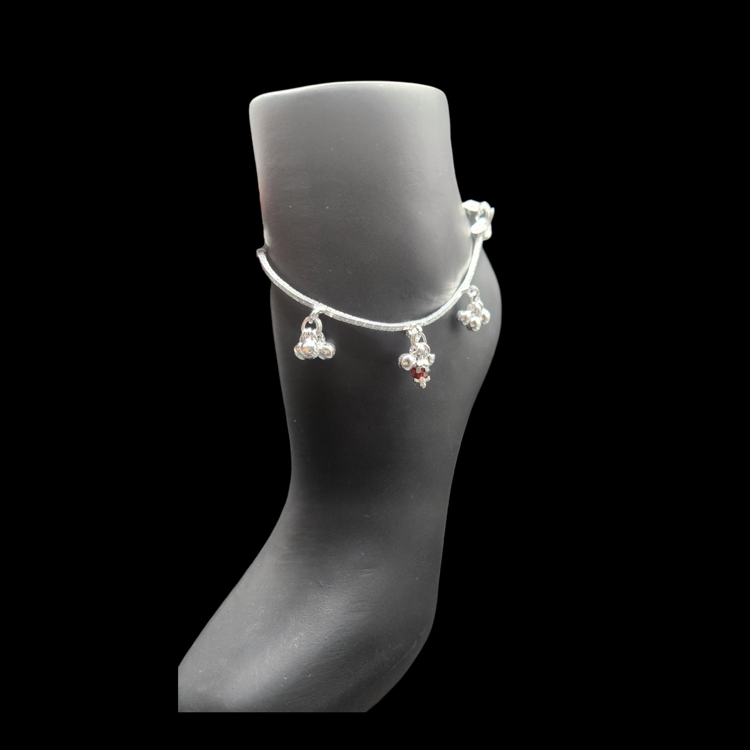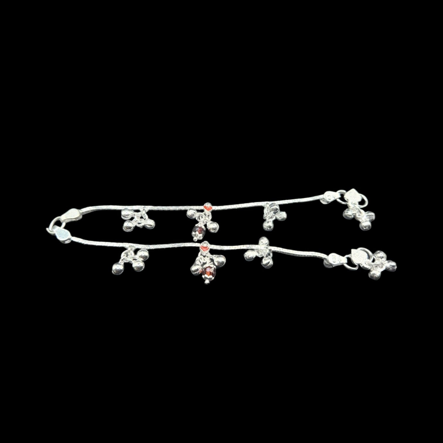 Beautifully crafted silver Anklets with Ghungrlaroo running across the anklet.Cute pair of ethnic anklets will make a great accessory for your little girl.