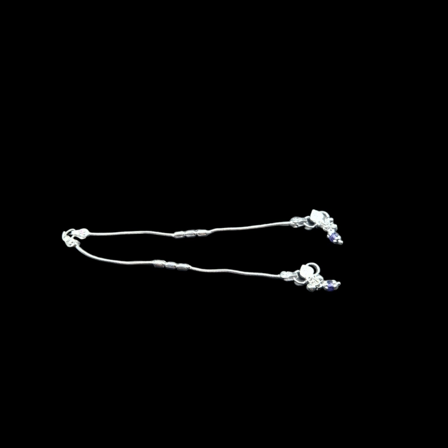 Beautifully crafted silver Anklets with Ghungrlaroo running across the anklet.Cute pair of ethnic anklets will make a great accessory for your little girl.