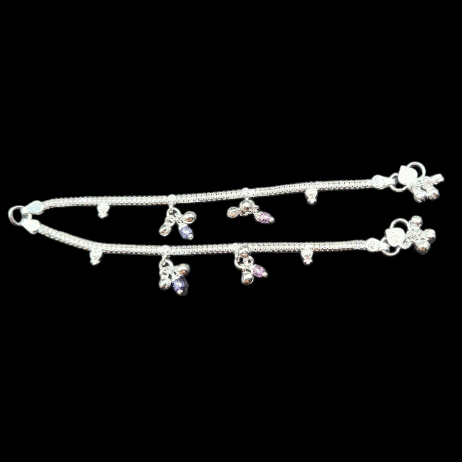 Beautifully crafted silver Anklets with Ghungrlaroo running across the anklet.Cute pair of ethnic anklets will make a great accessory for your little girl.