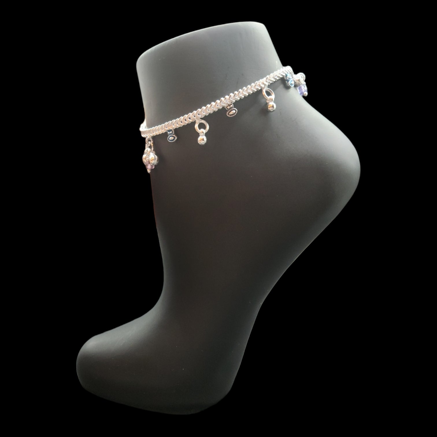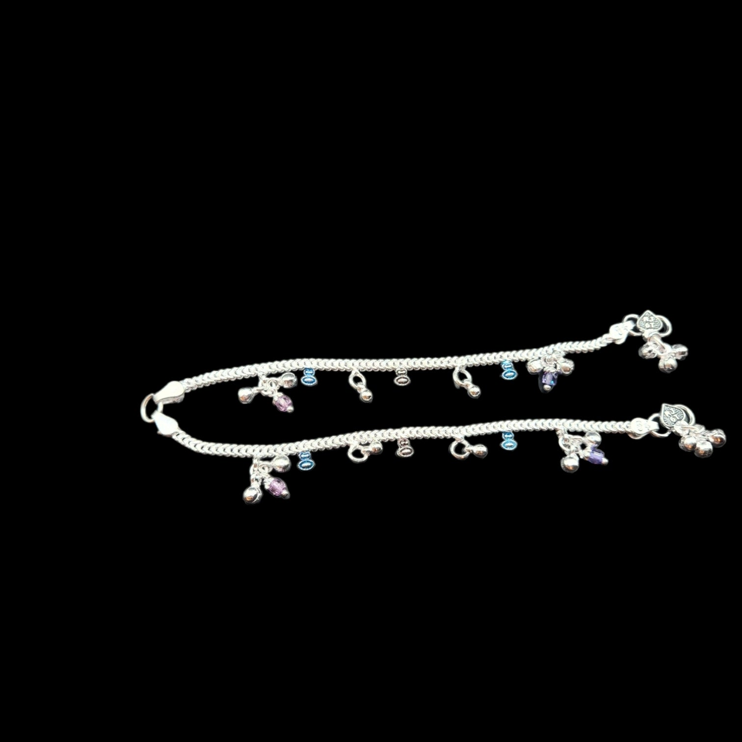 Beautifully crafted silver Anklets with Ghungrlaroo running across the anklet.Cute pair of ethnic anklets will make a great accessory for your little girl.