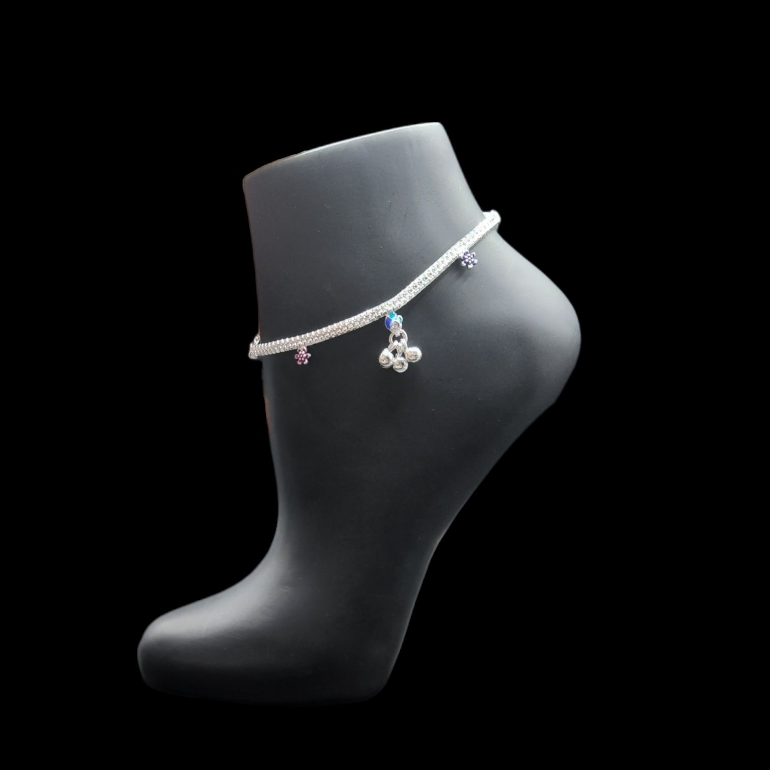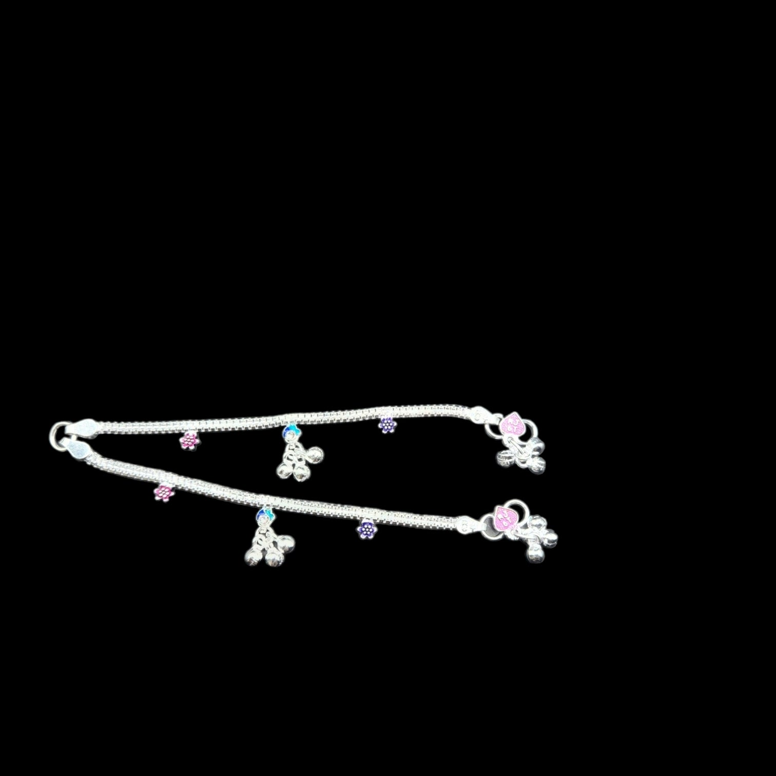 Beautifully crafted silver Anklets with Ghungrlaroo running across the anklet.Cute pair of ethnic anklets will make a great accessory for your little girl.