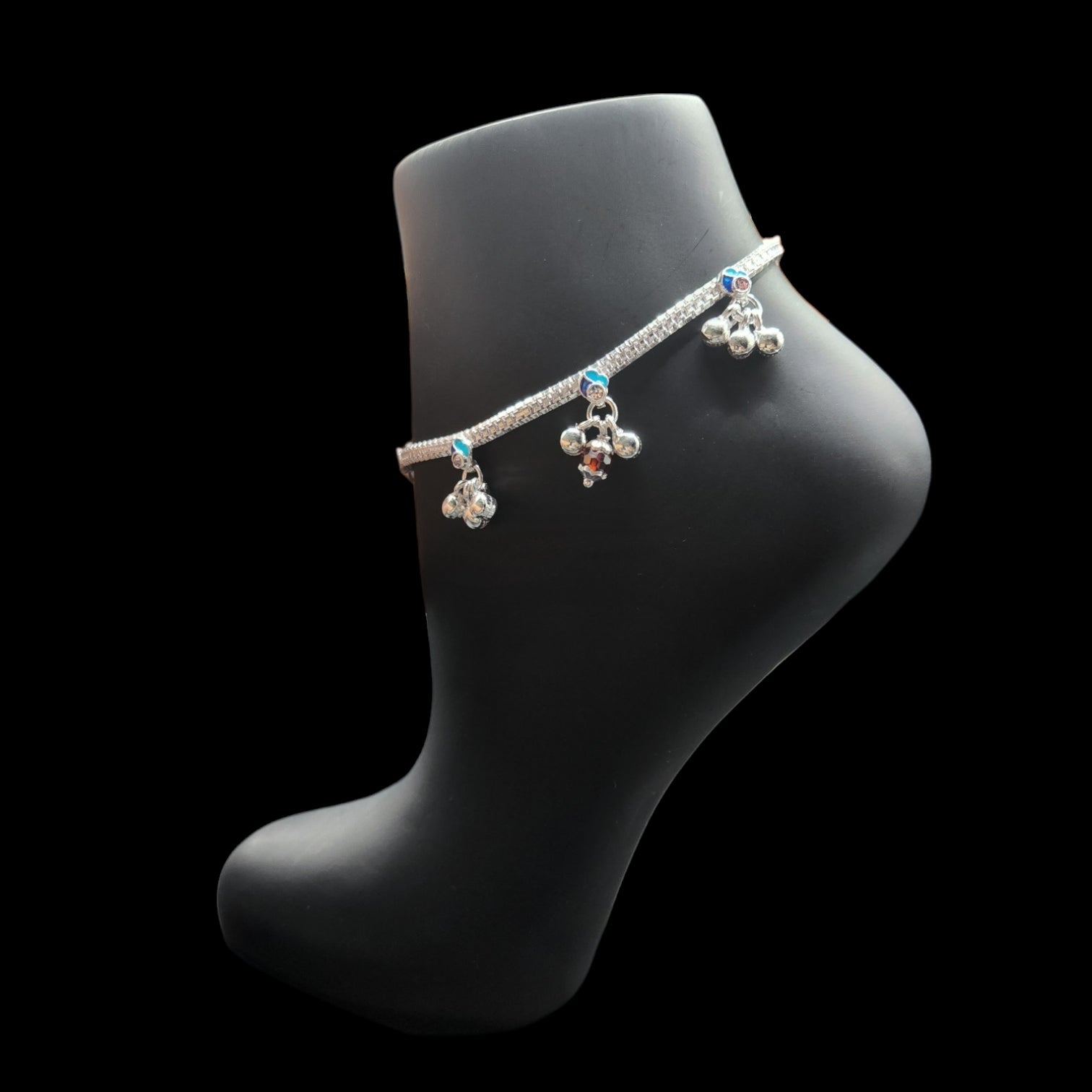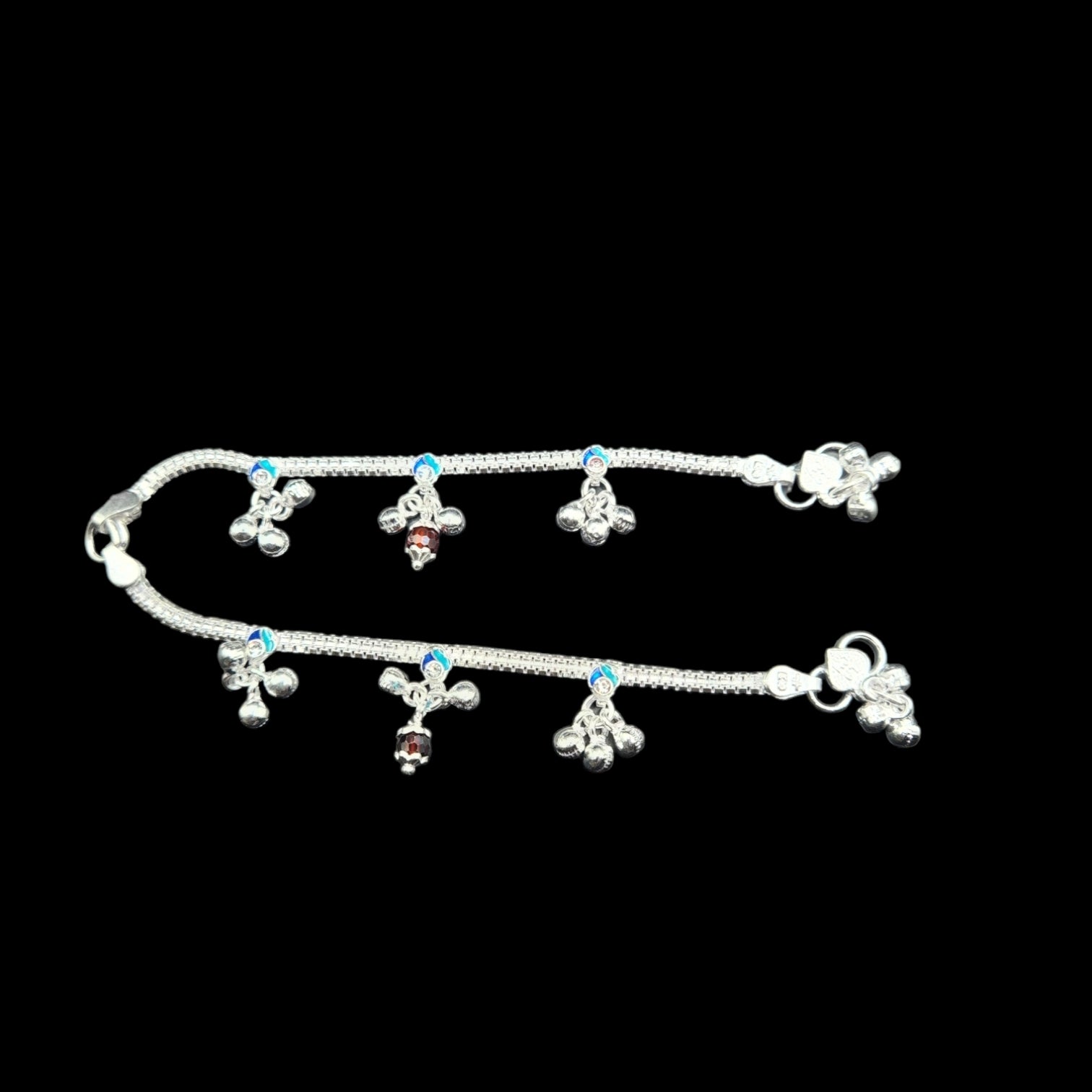 Beautifully crafted silver Anklets with Ghungrlaroo running across the anklet.Cute pair of ethnic anklets will make a great accessory for your little girl.