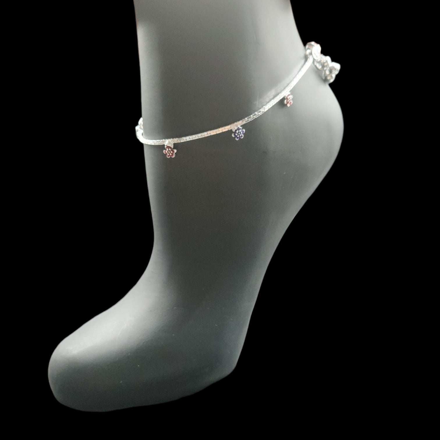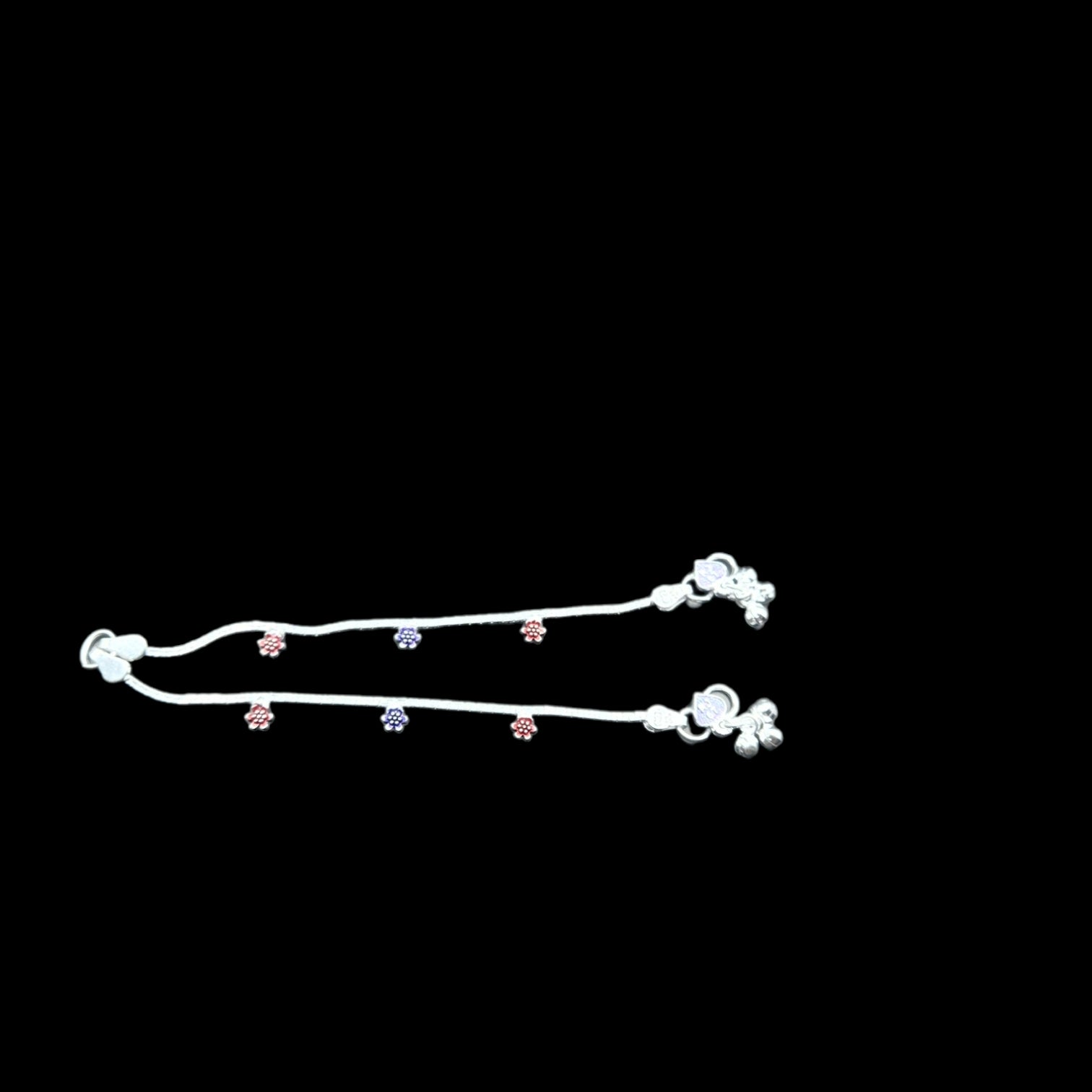 Beautifully crafted silver Anklets with Ghungrlaroo running across the anklet.Cute pair of ethnic anklets will make a great accessory for your little girl.
