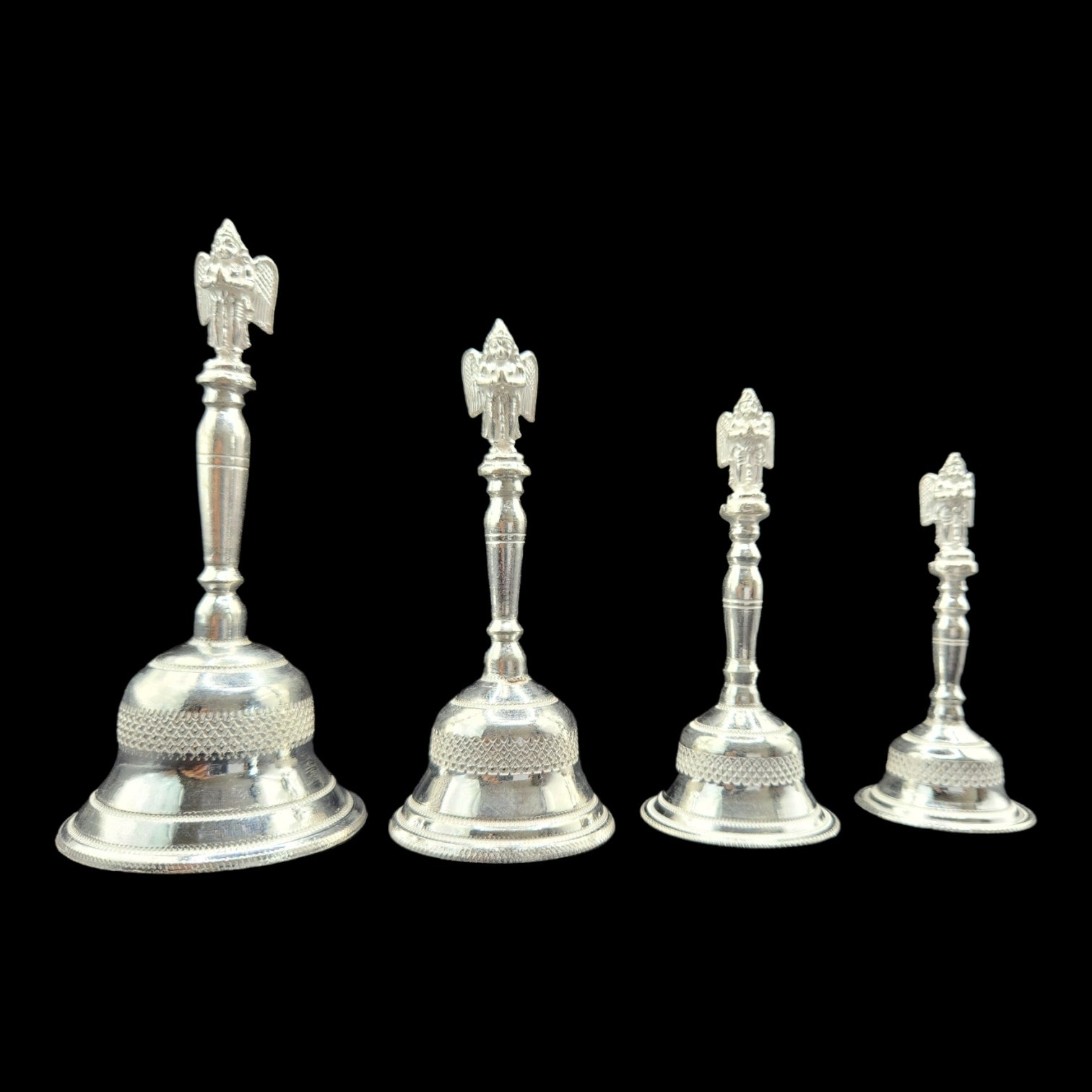 Pure Silver Temple Pooja Bell Ghanti with Melodious Sound - Silver Color, Pack of 1