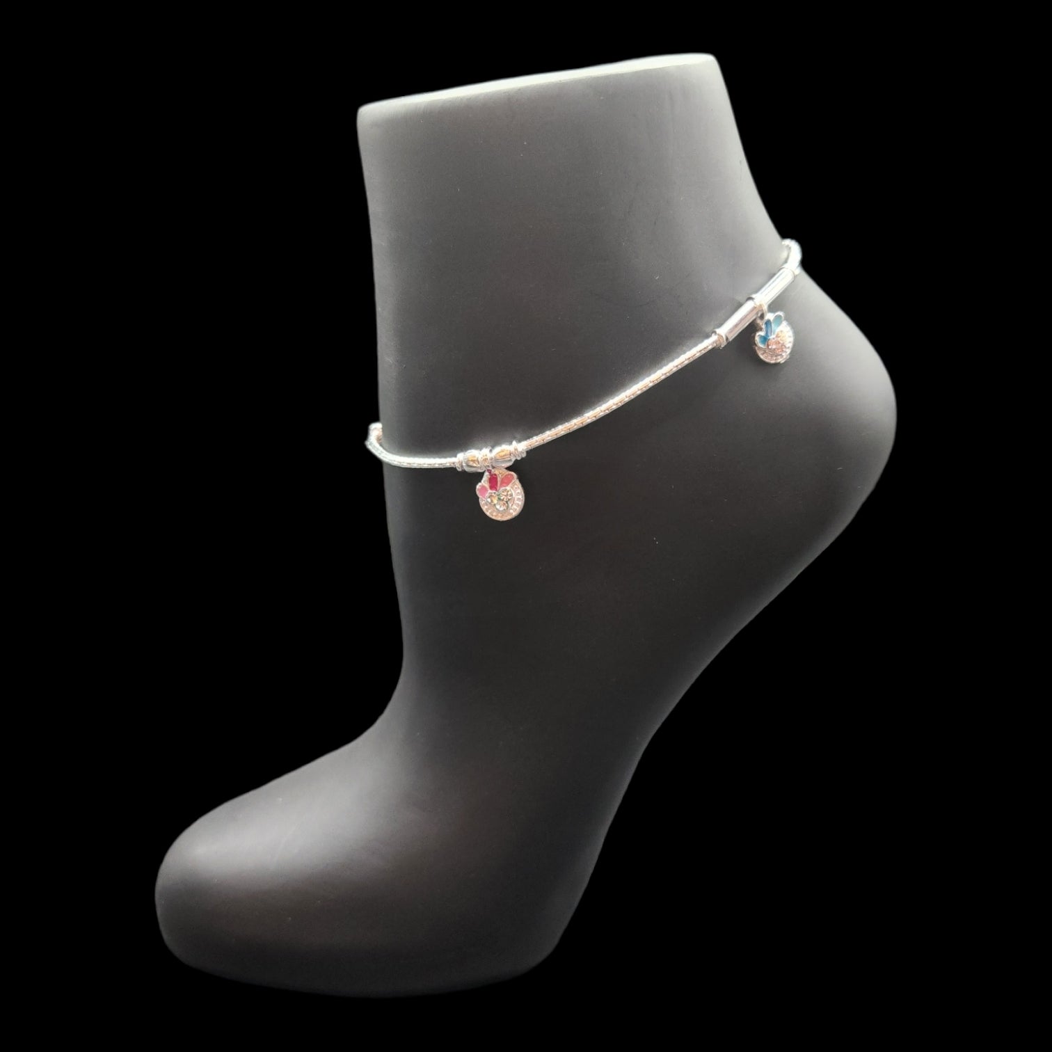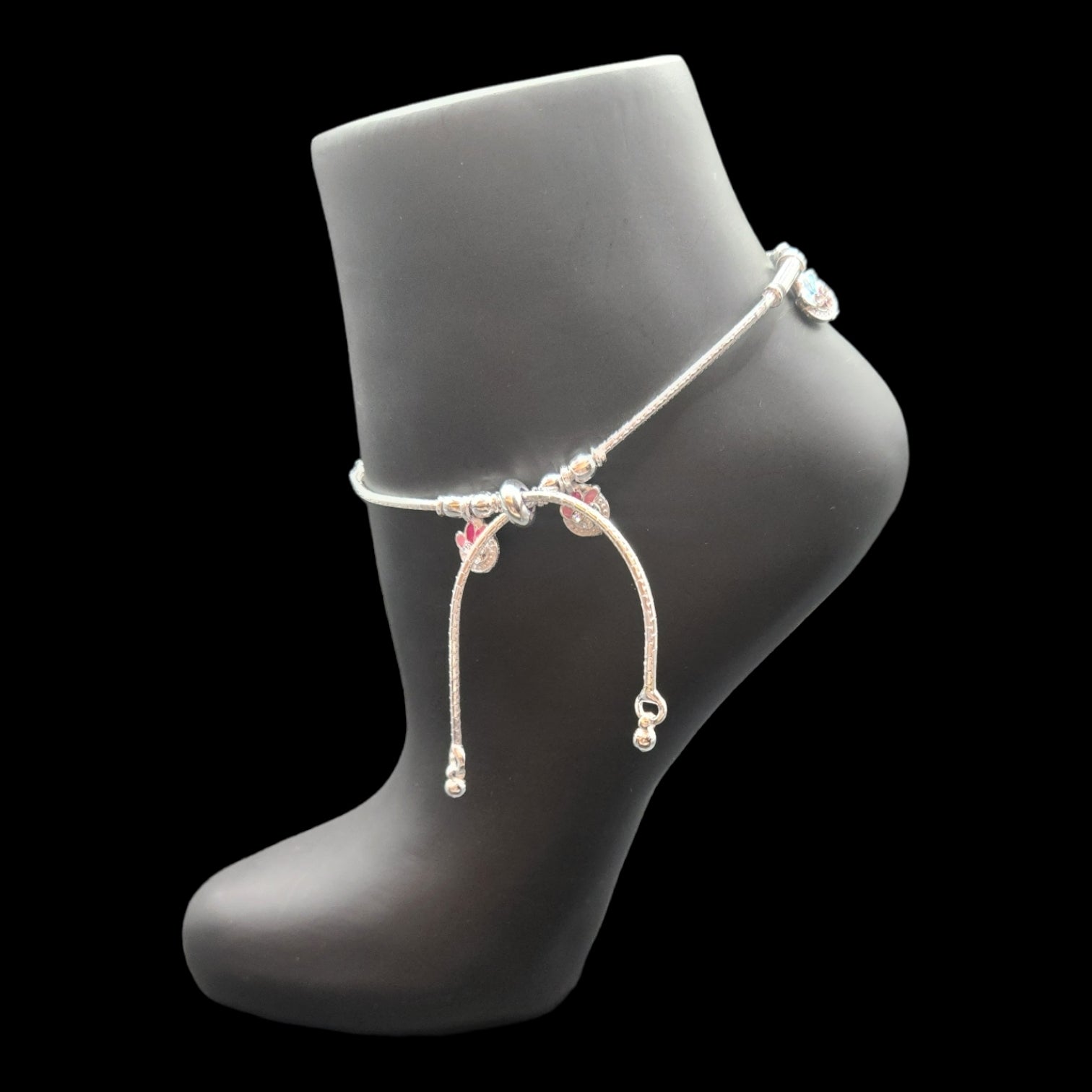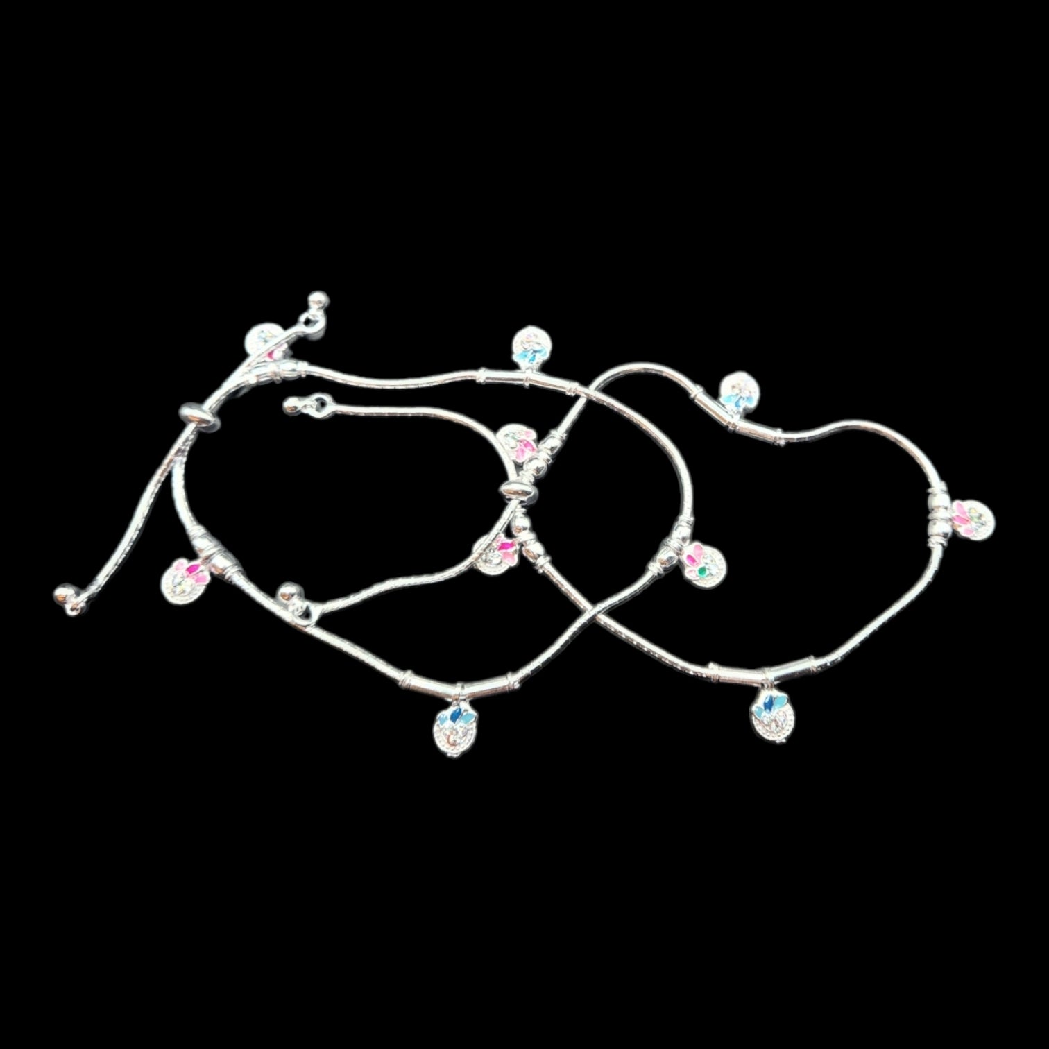 Beautifully crafted silver Anklets with Slider. Cute pair of ethnic anklets will make a great accessory