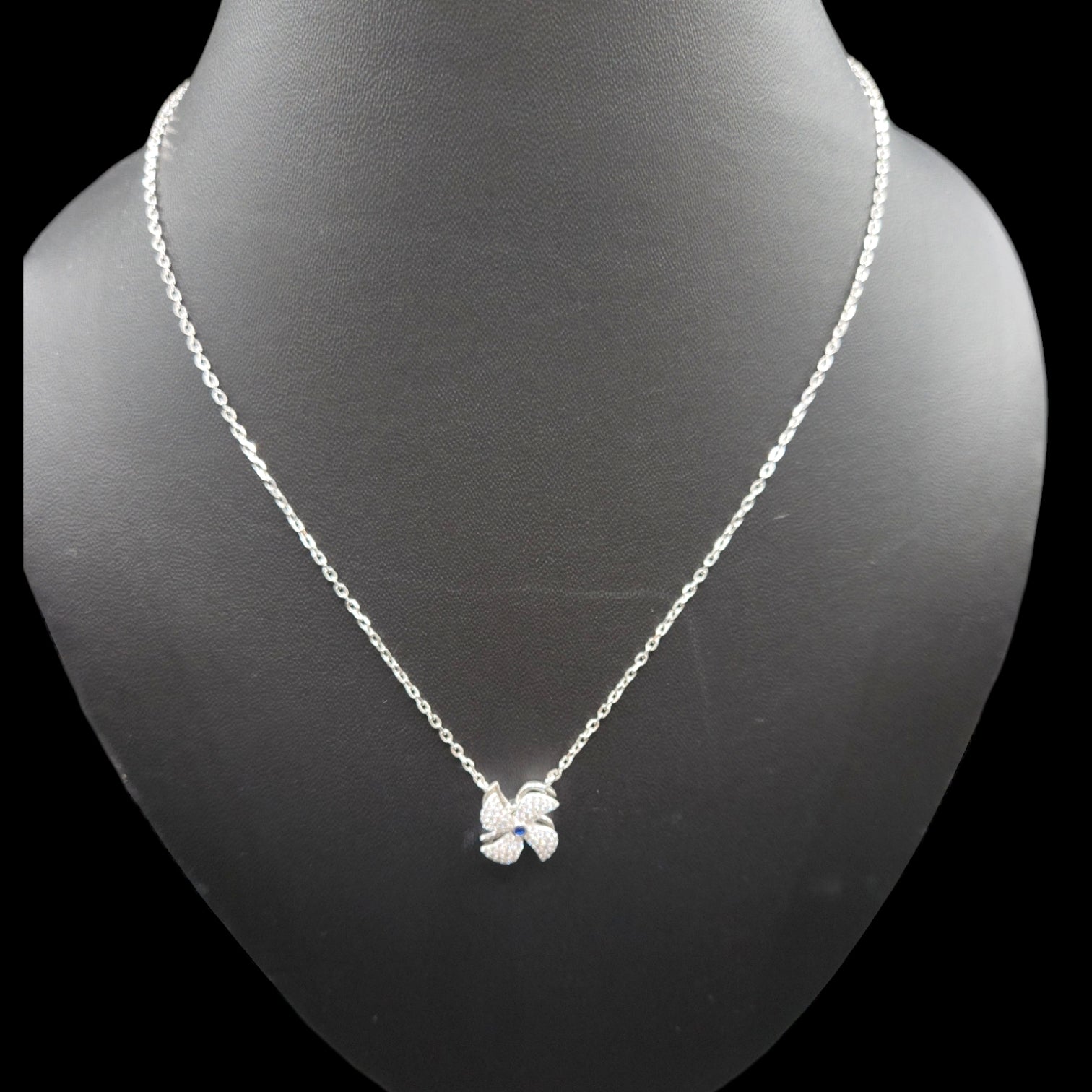 925 Sterling Silver Flower Pendant Necklace Sparkle Cubic Zirconia Hypoallergenic.