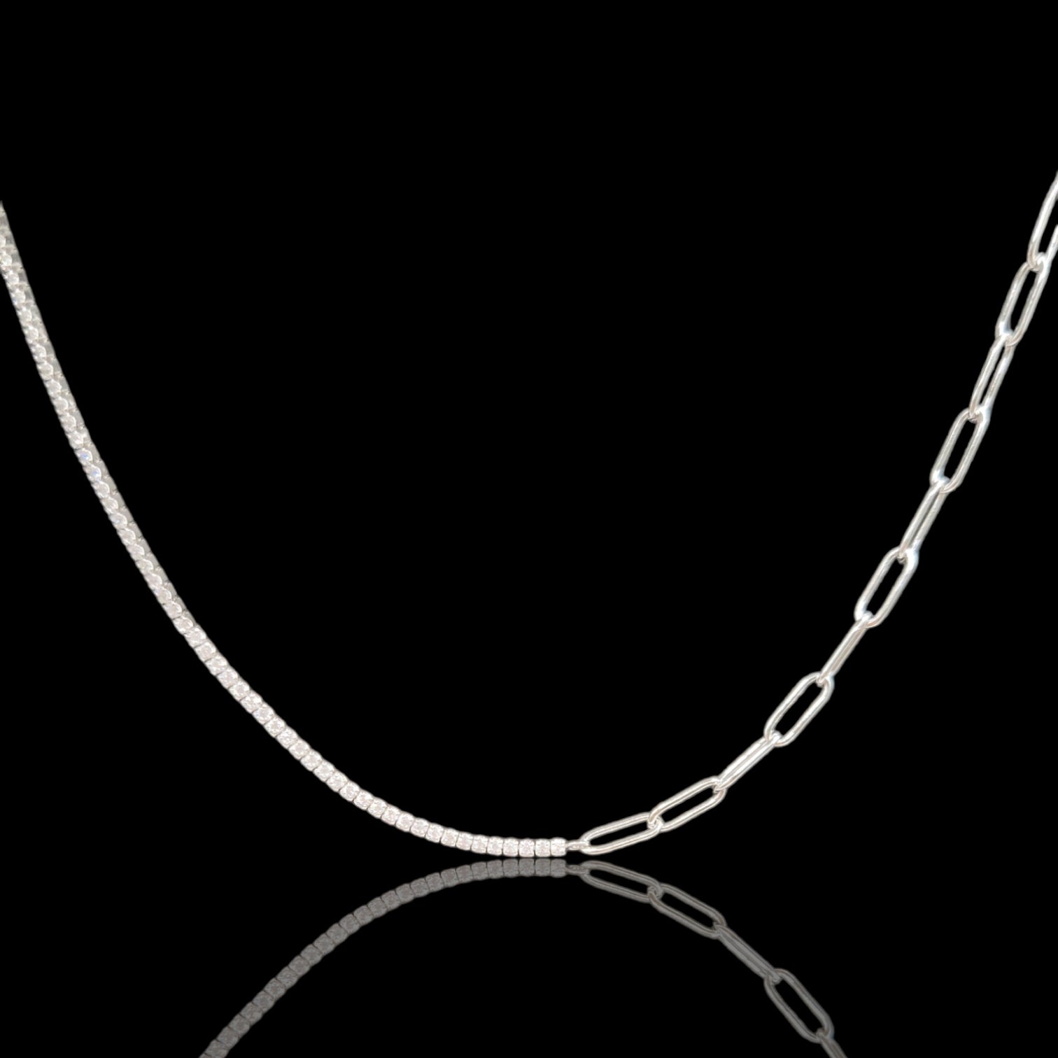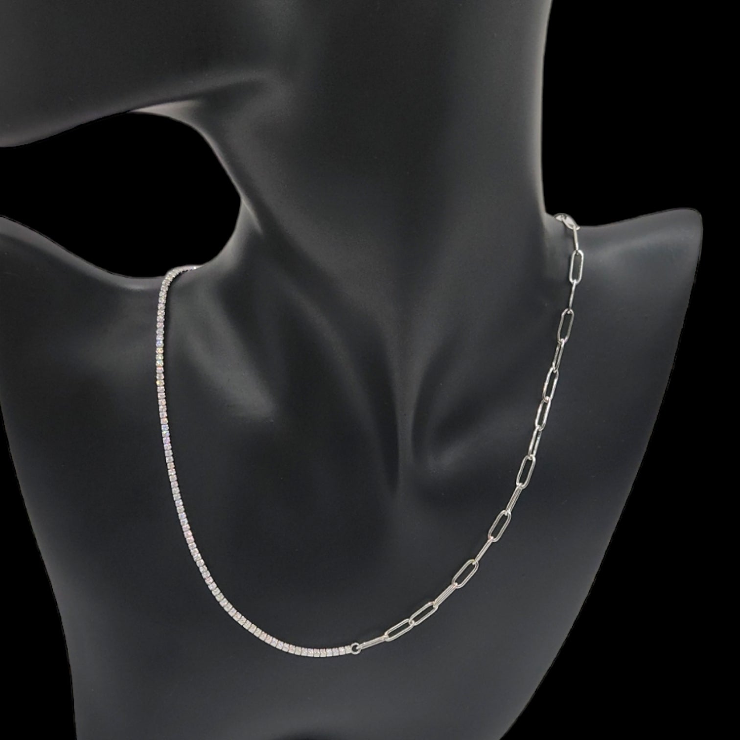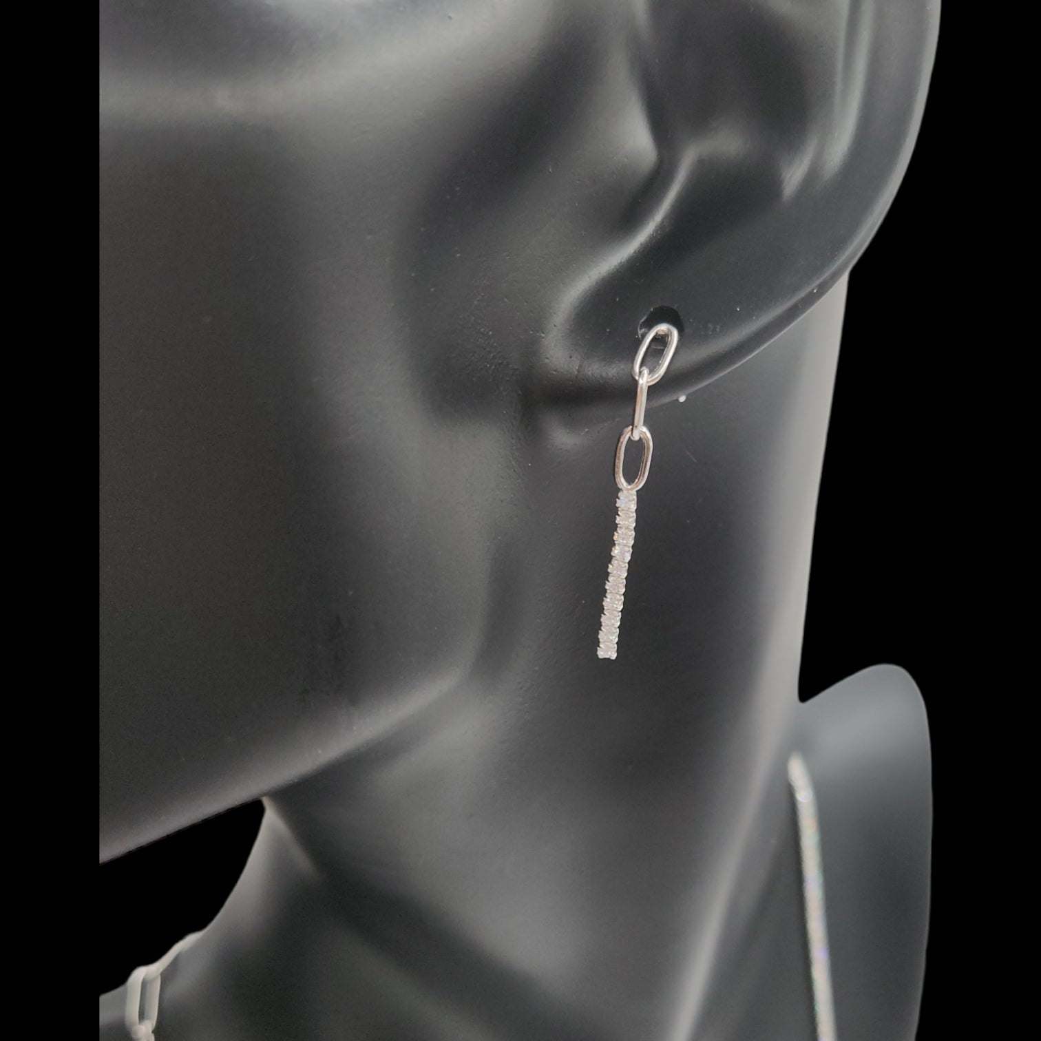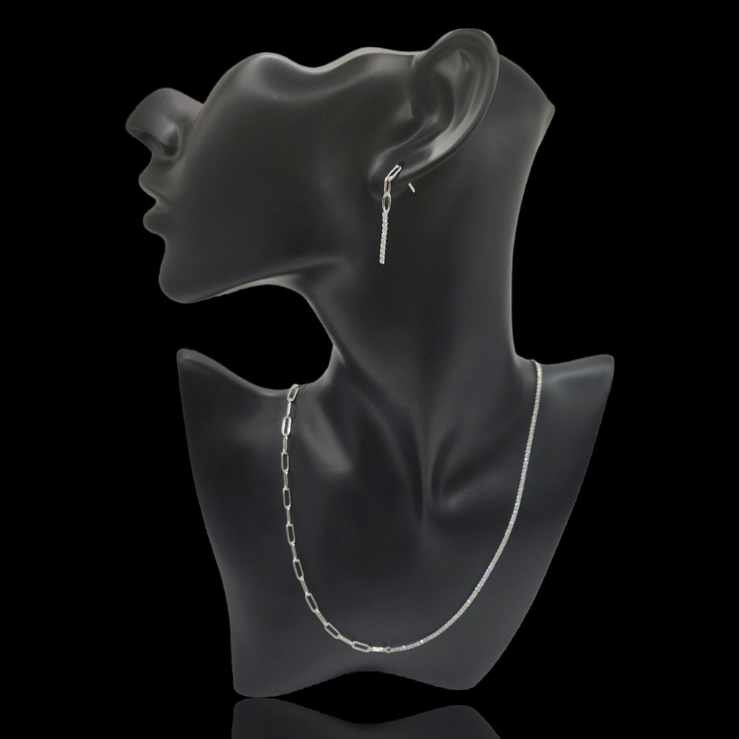 925 Sterling Silver Half Half Necklace With AD And chain Pattern with Drop Earrings.