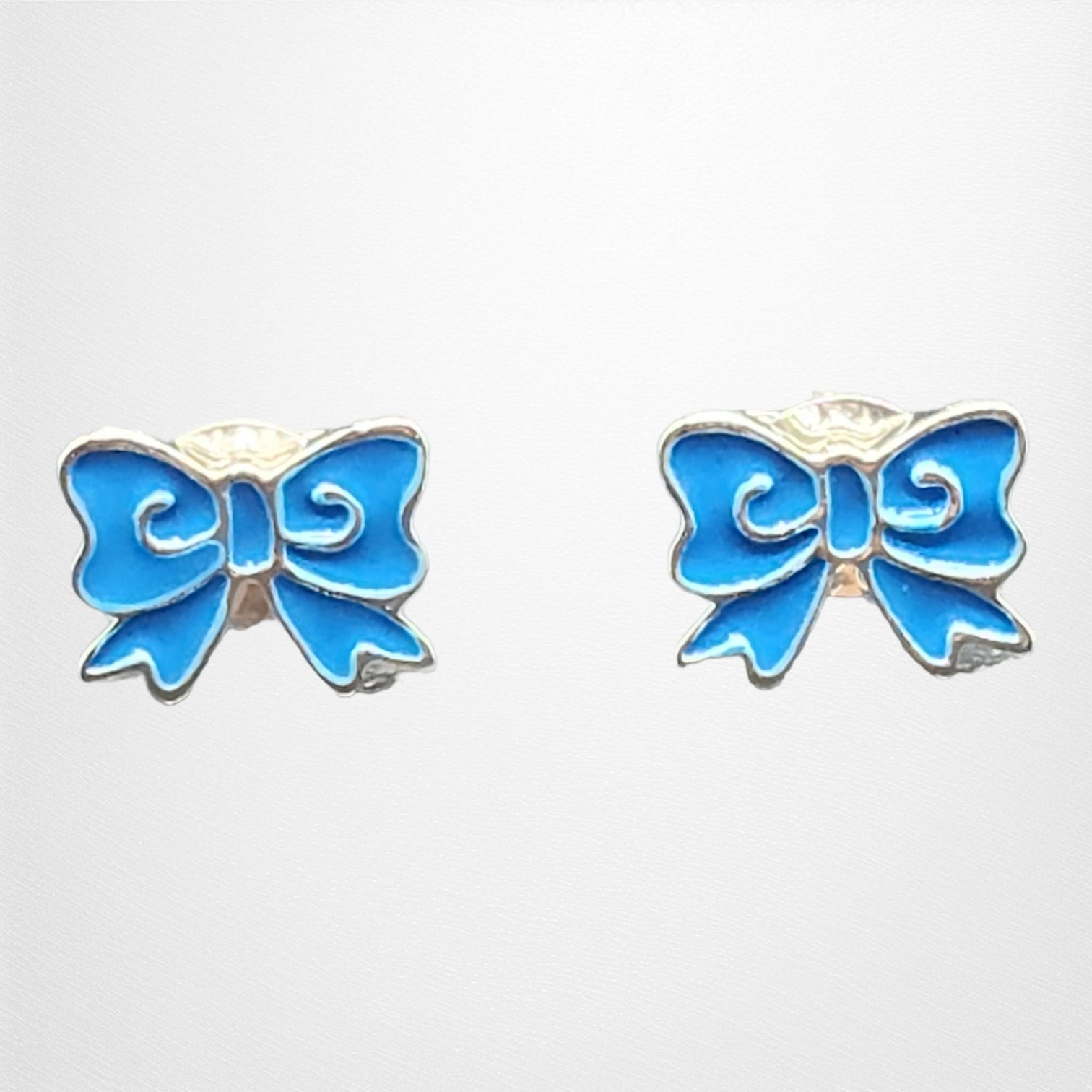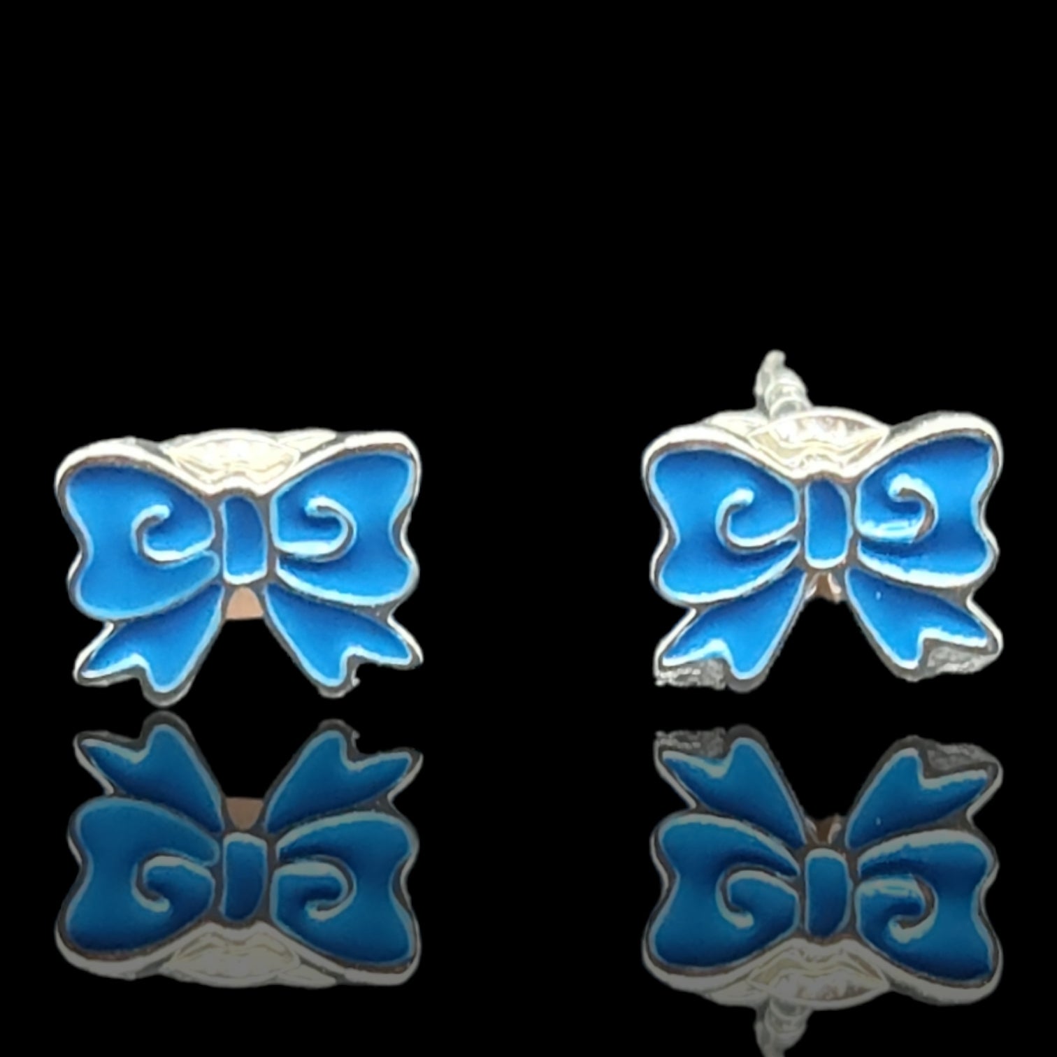 925 Sterling Silver Blue Bow Shape Kids Earrings.