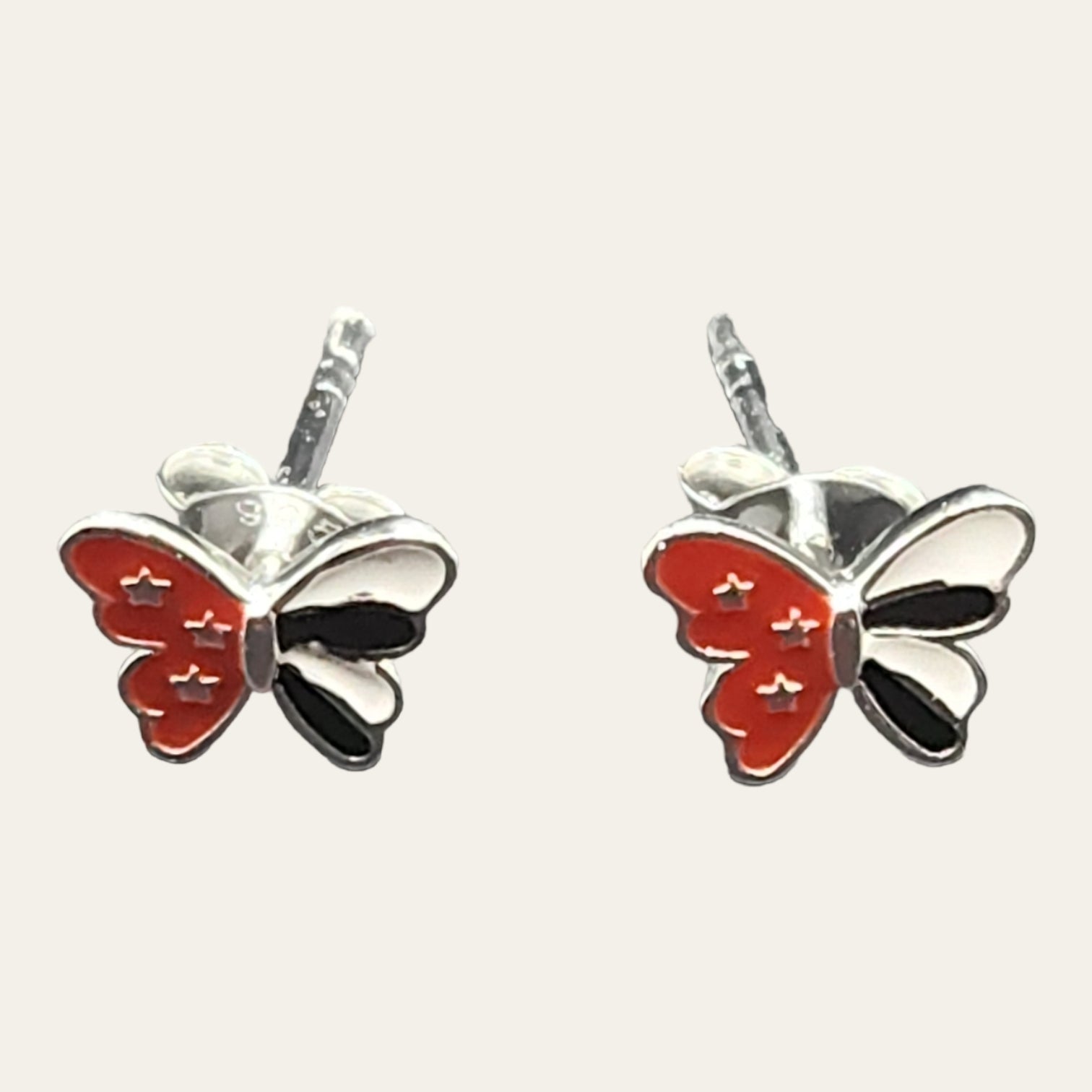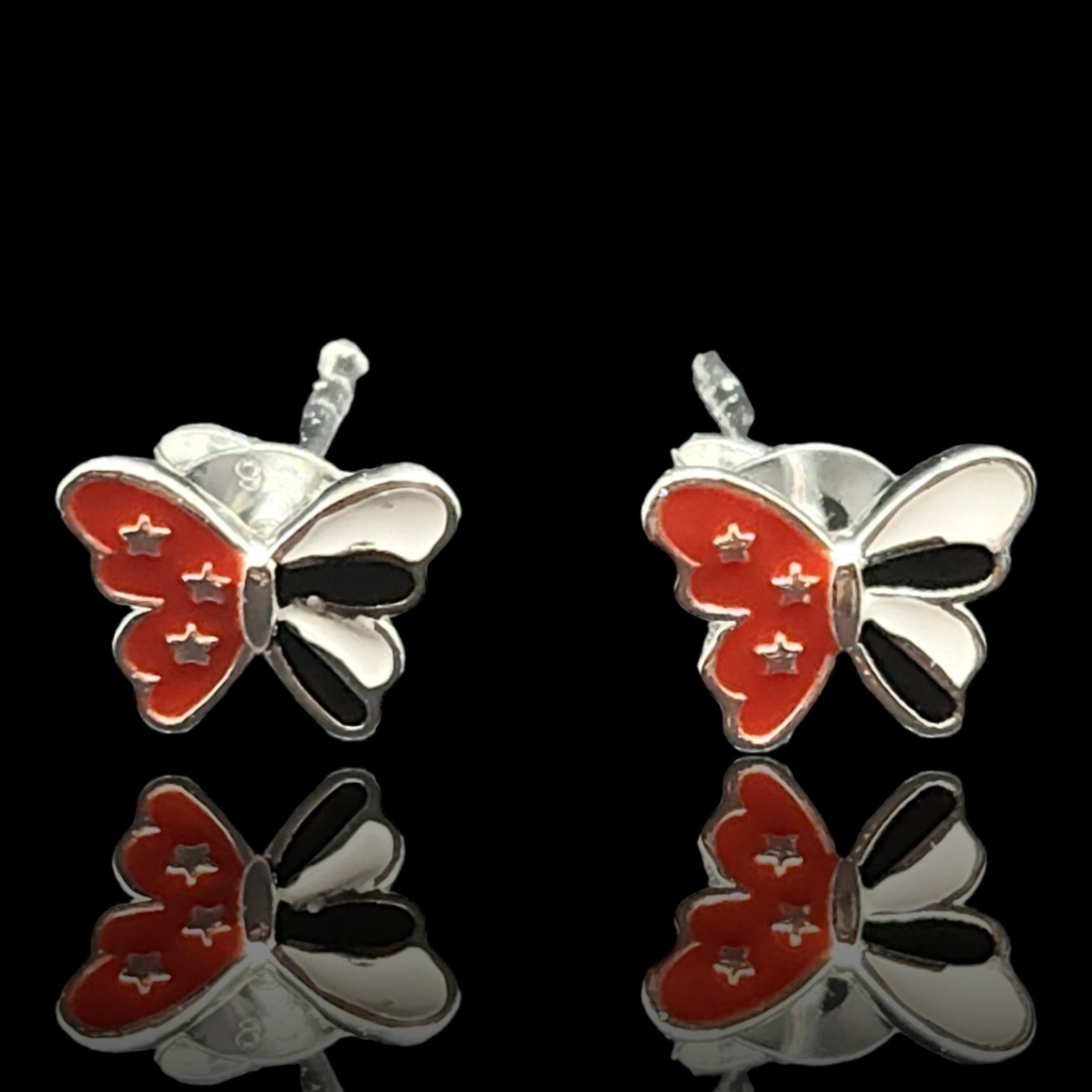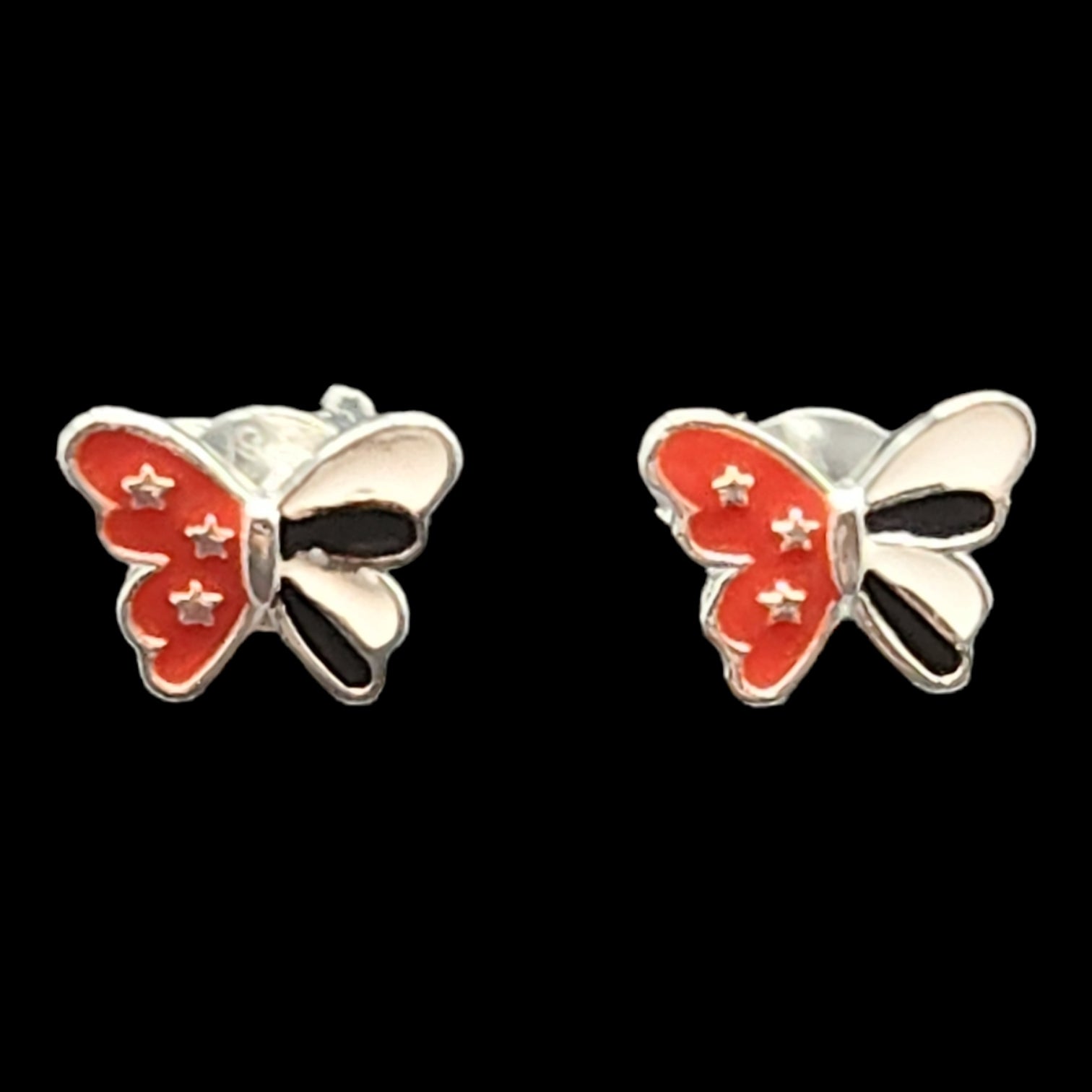 925 Sterling Silver Red & black Butterfly Kids Earrings.