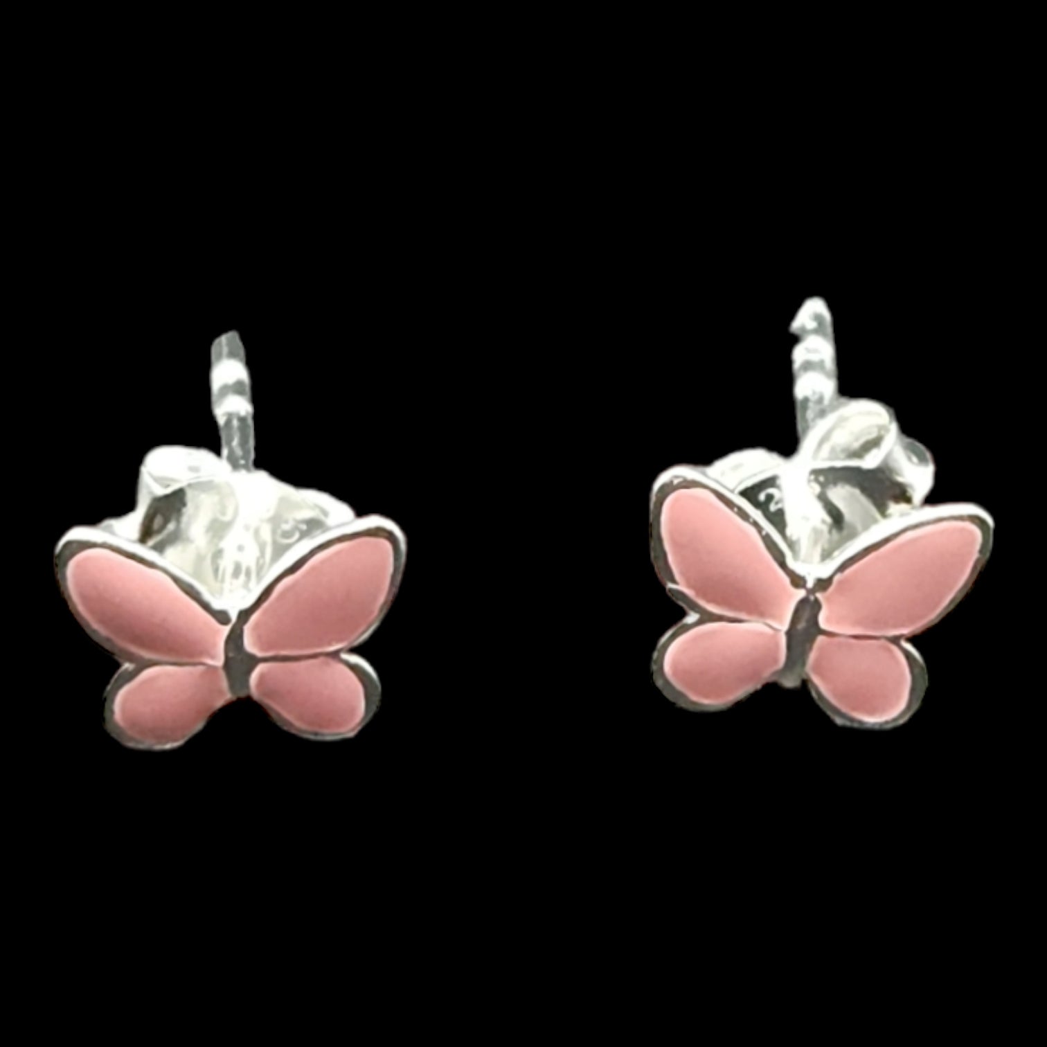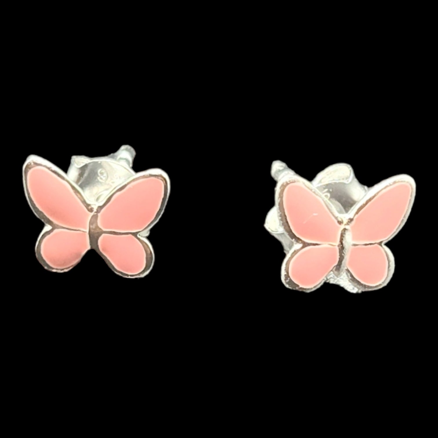 925 Sterling Silver Pink Butterfly Shape Kids Earrings.