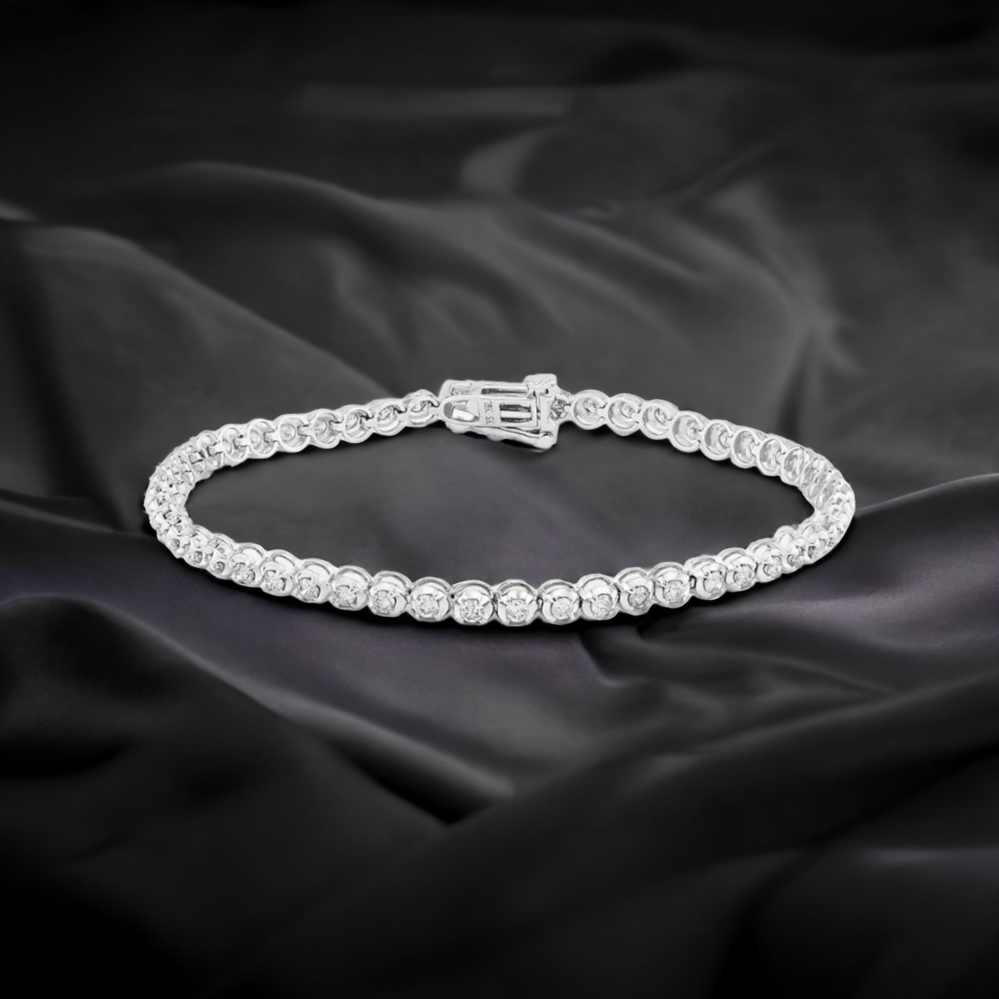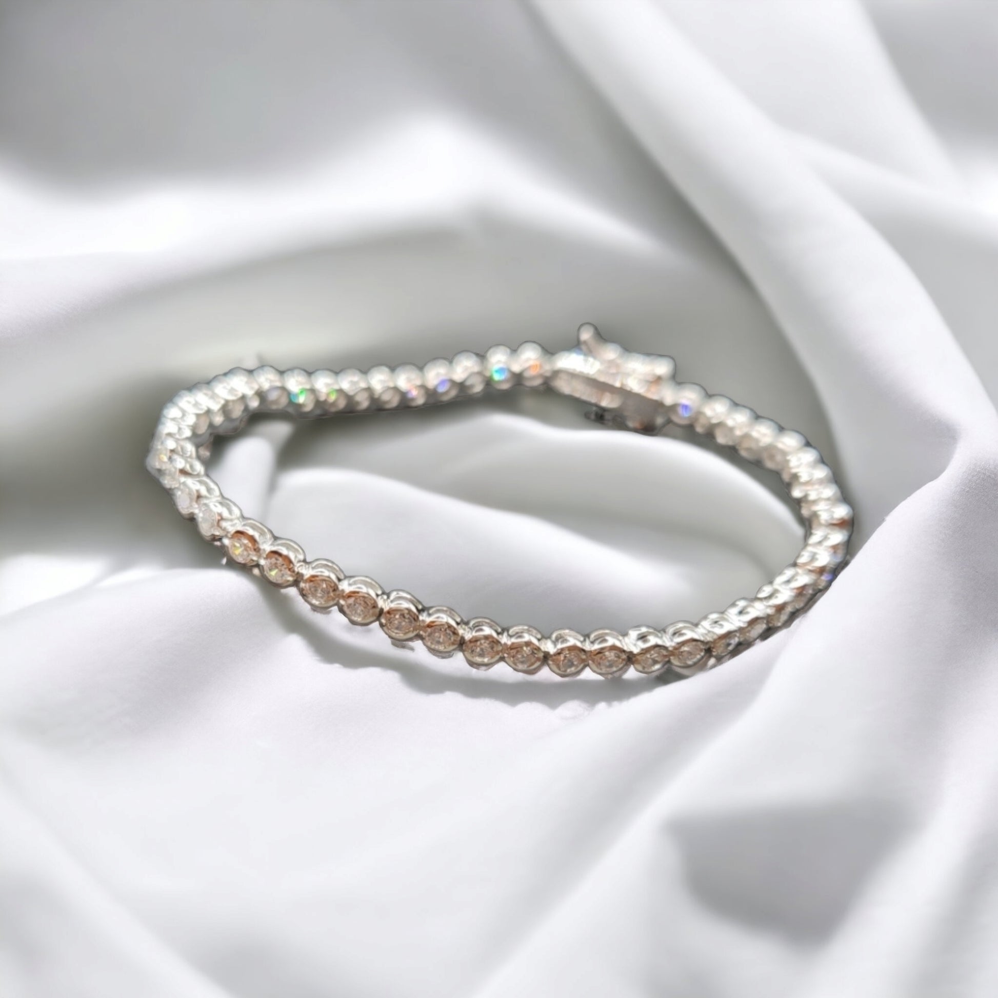 925 Sterling Silver Tennis Bracelet with 2 MM Round Carnival AD Diamonds.