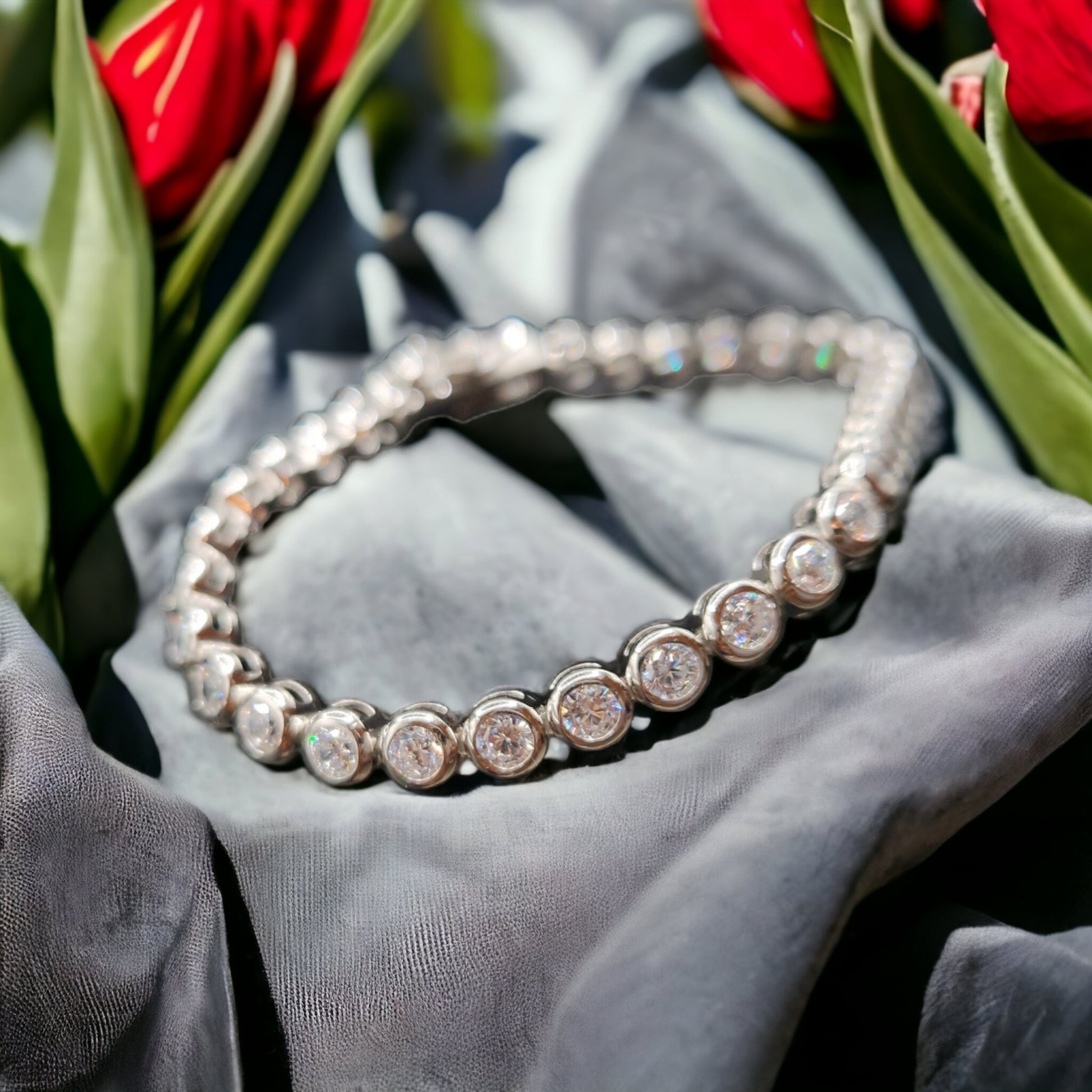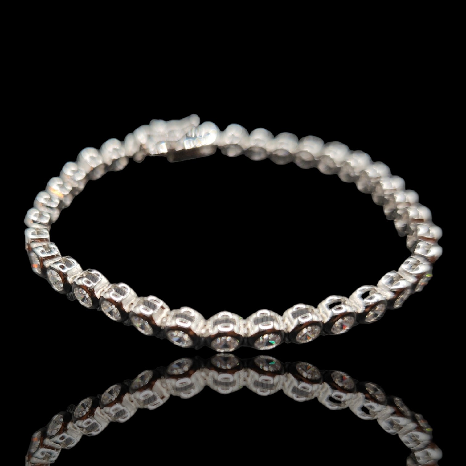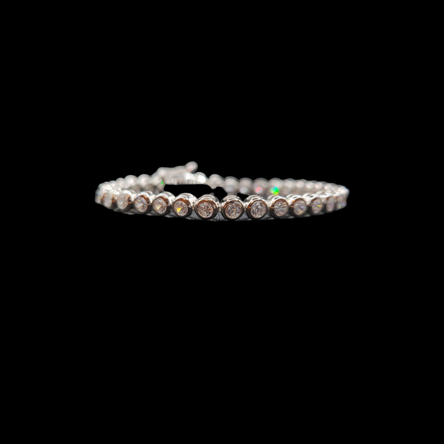 925 Sterling Silver Tennis Bracelet with 3 MM Round Carnival AD Diamonds.