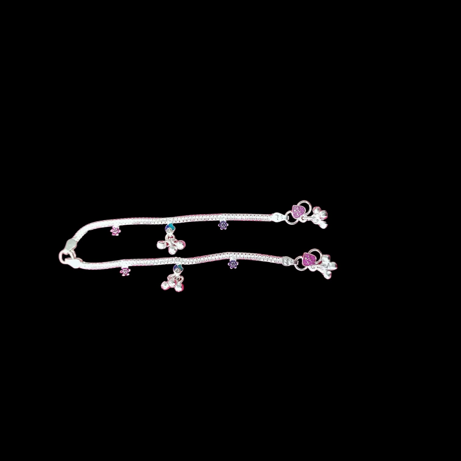 Beautifully crafted silver Anklets with Ghungrlaroo running across the anklet.Cute pair of ethnic anklets will make a great accessory for your little girl.