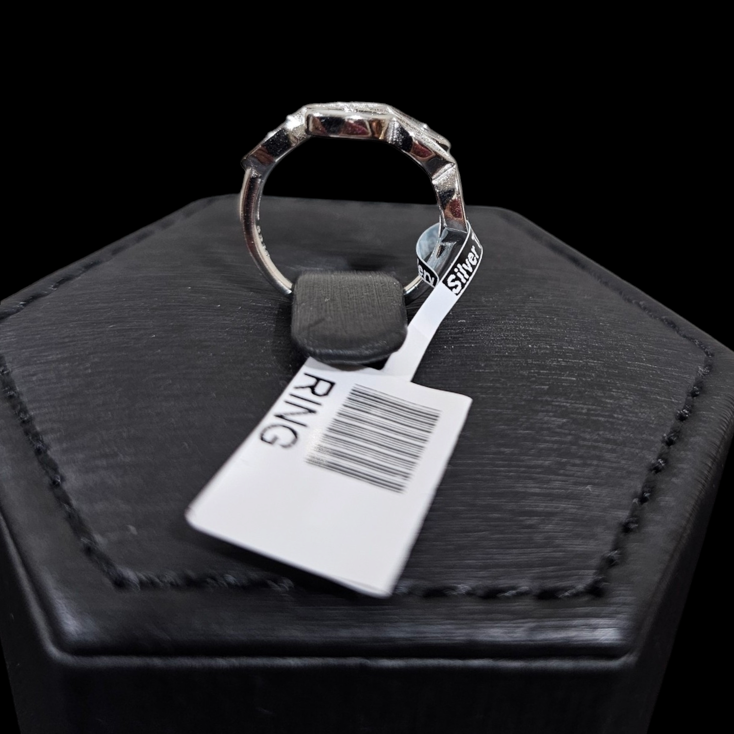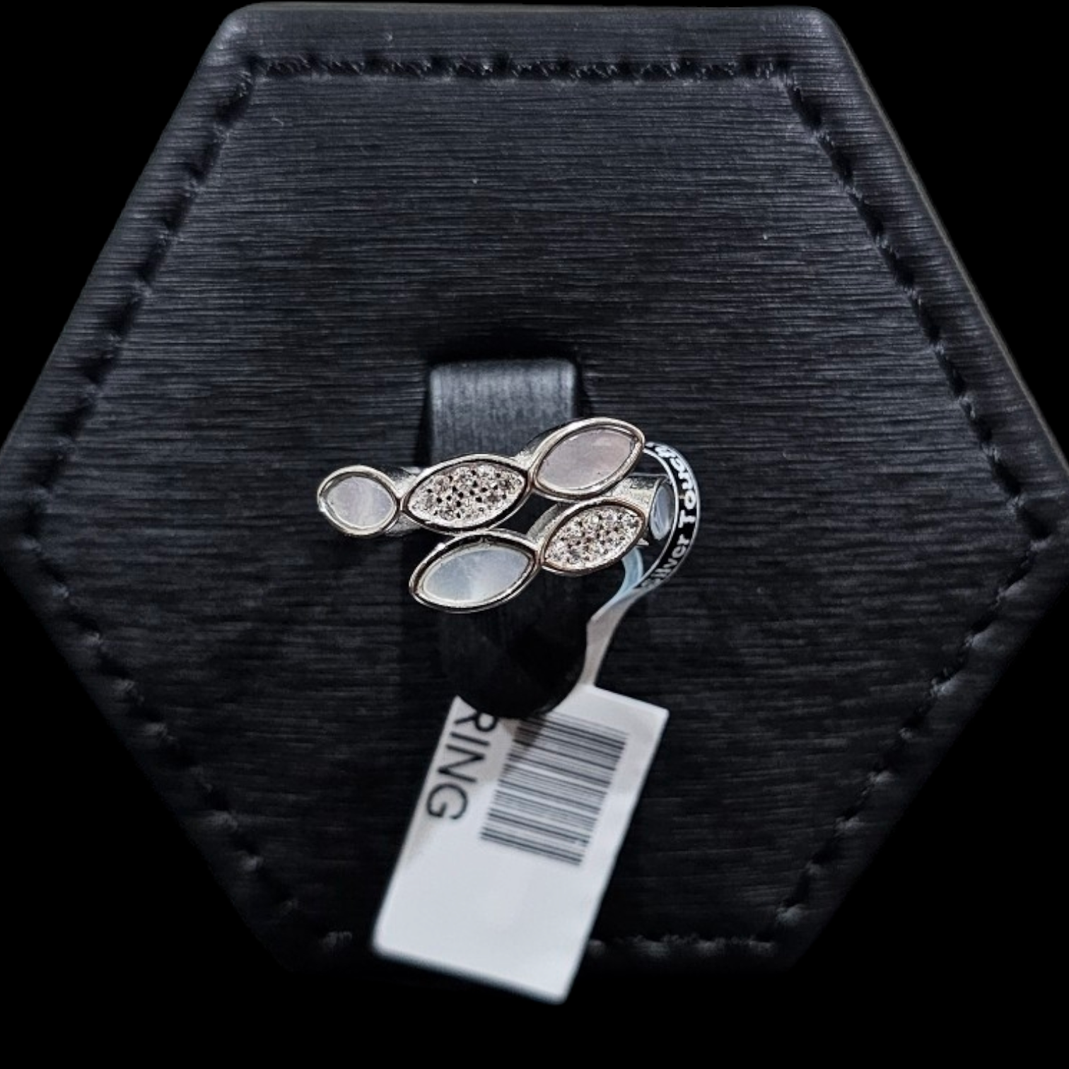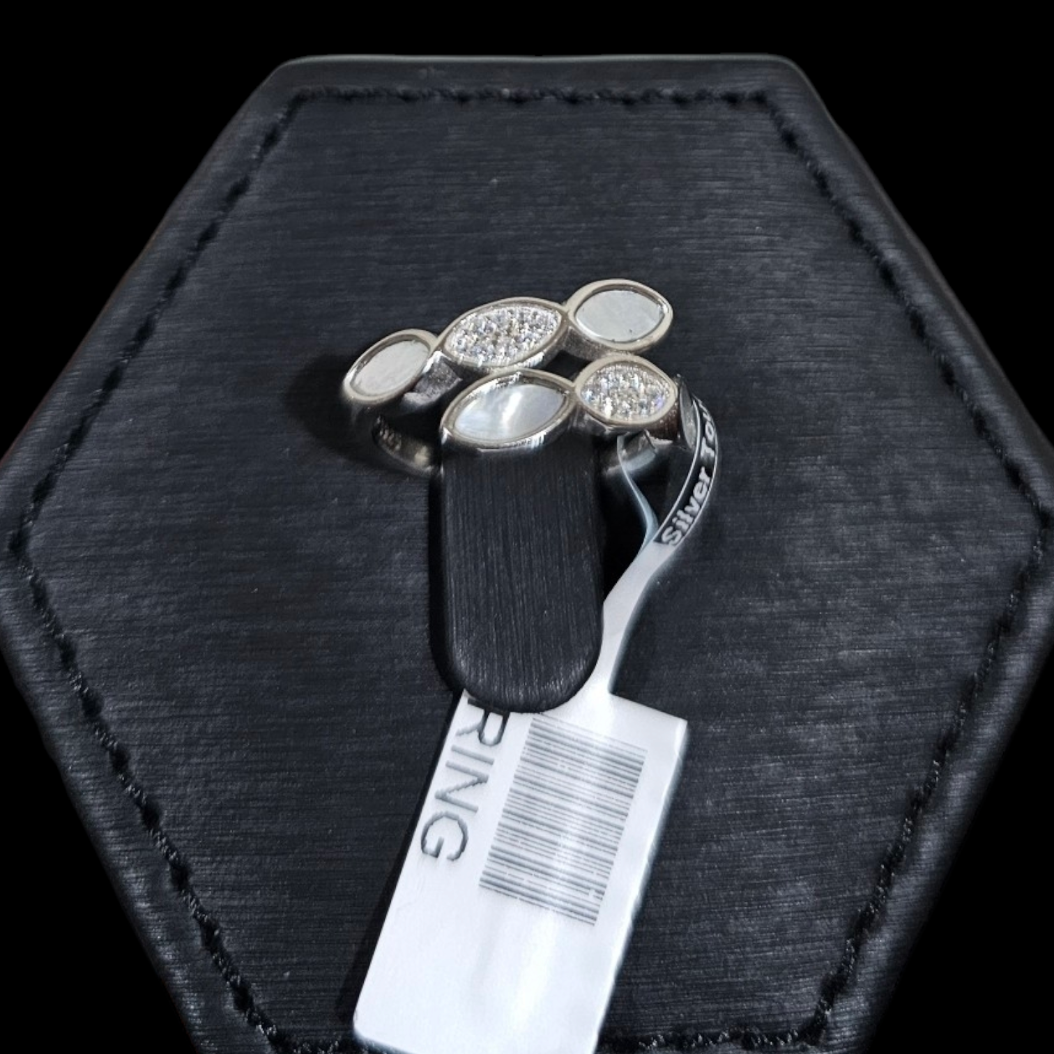 925 sterling silver overlapping ring with mother pearl and Zircon Stone.