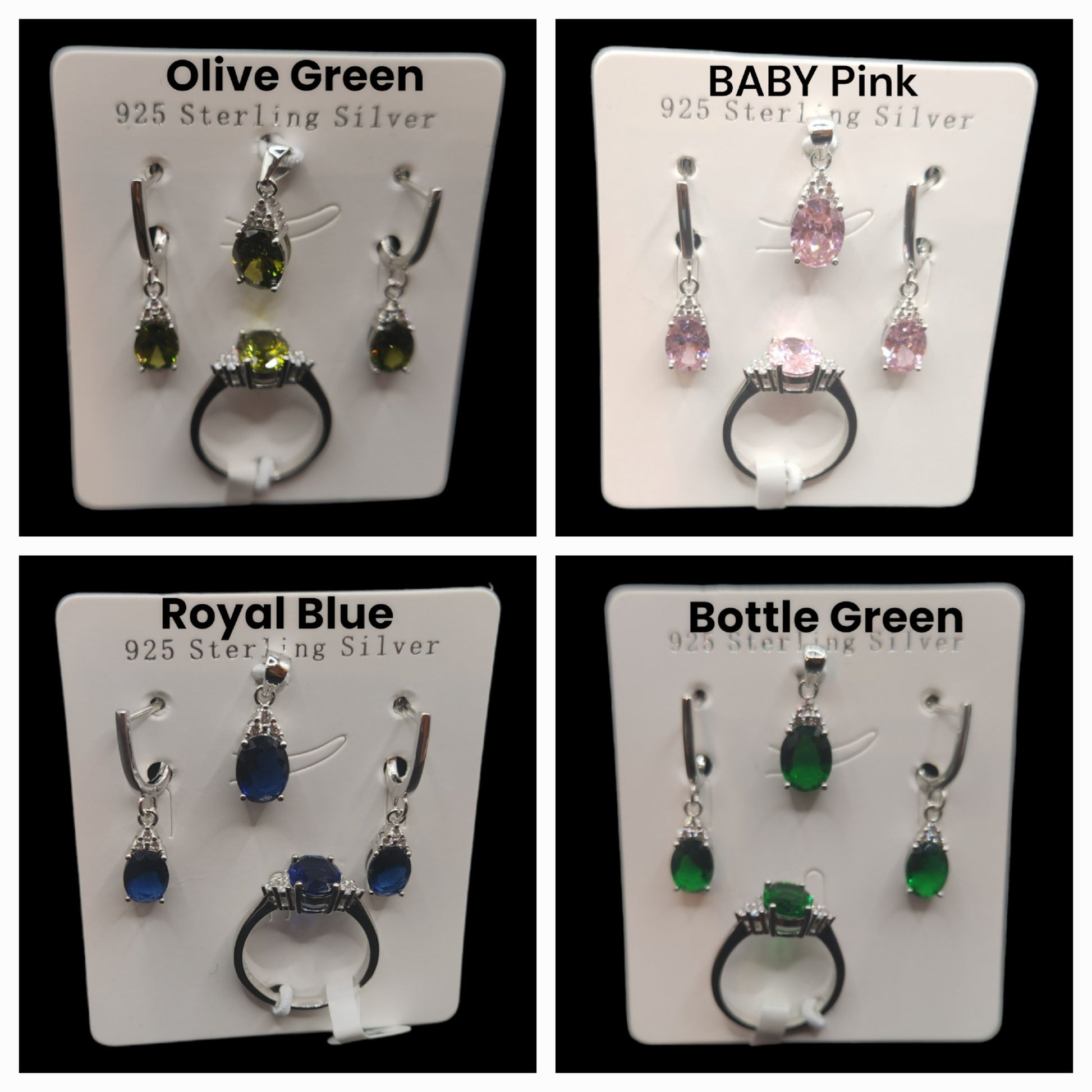 925 sterling silver spectacular Oval shape with Stone Pendant,  hoop earrings & ring set (without chain). available in different colors