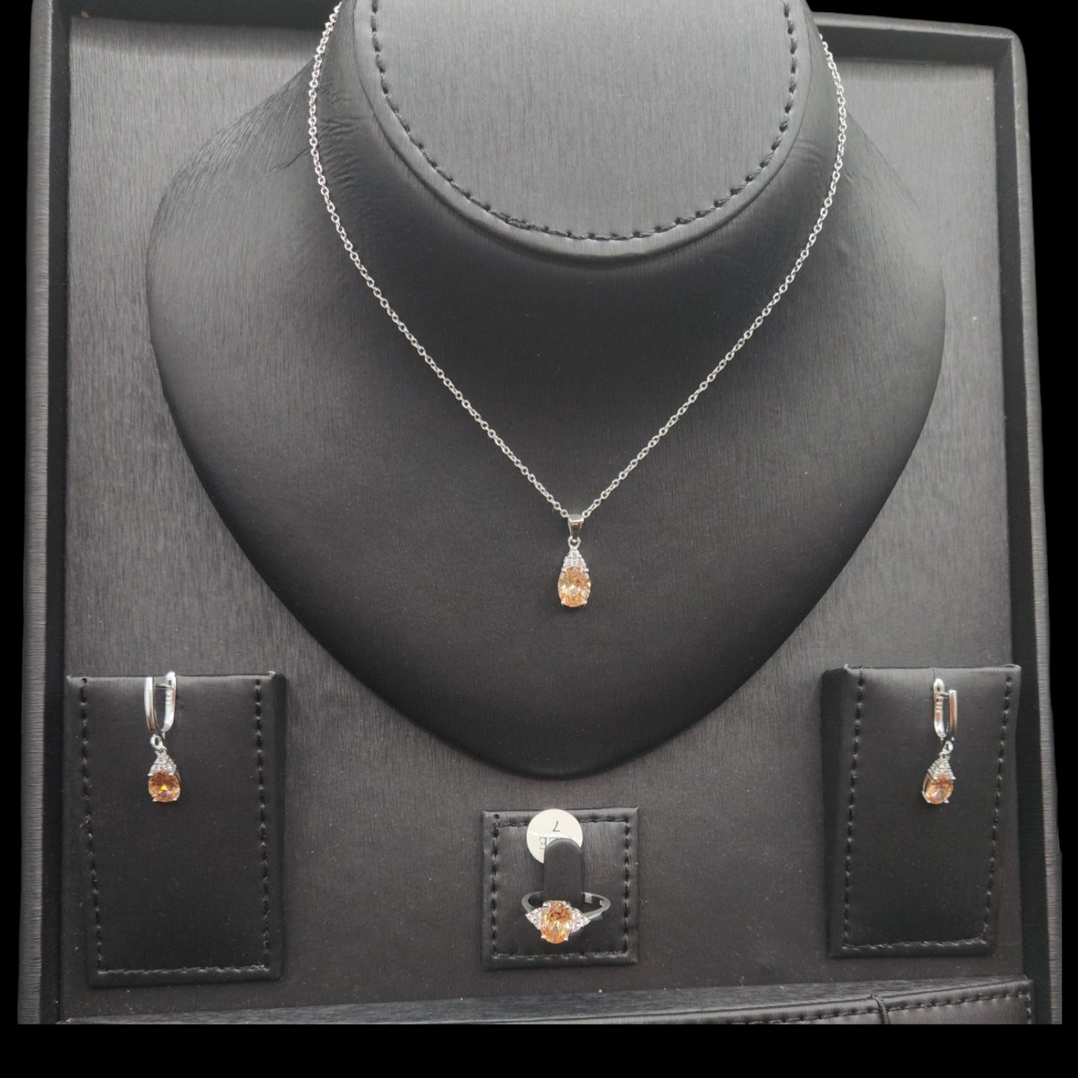 Oval Zircon Rose Gold Stone Pendant Earrings With Ring Set