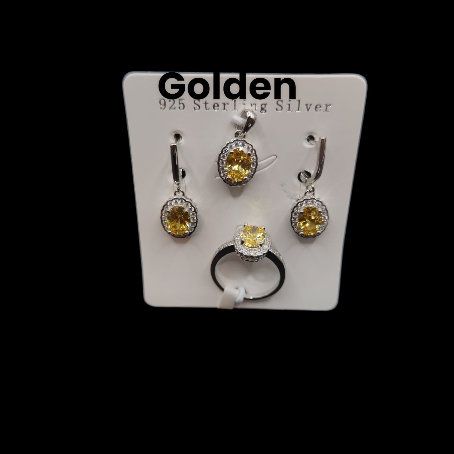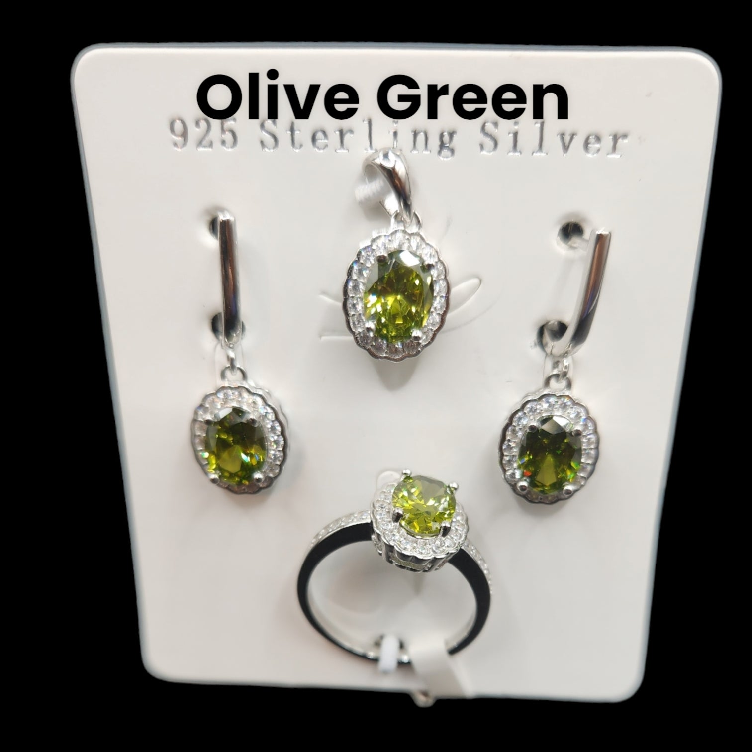 Olive Color Oval shaped Pendant, Earring with Ring set