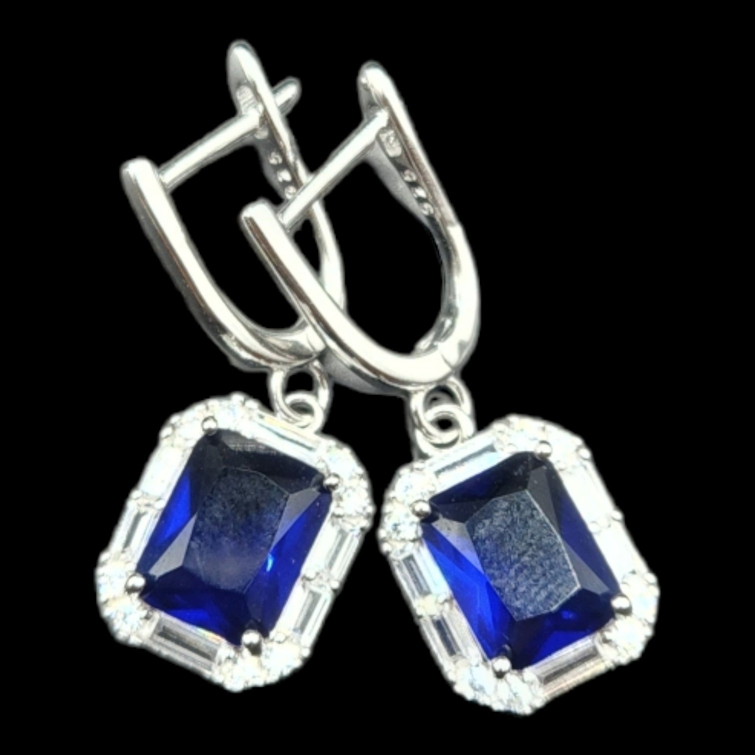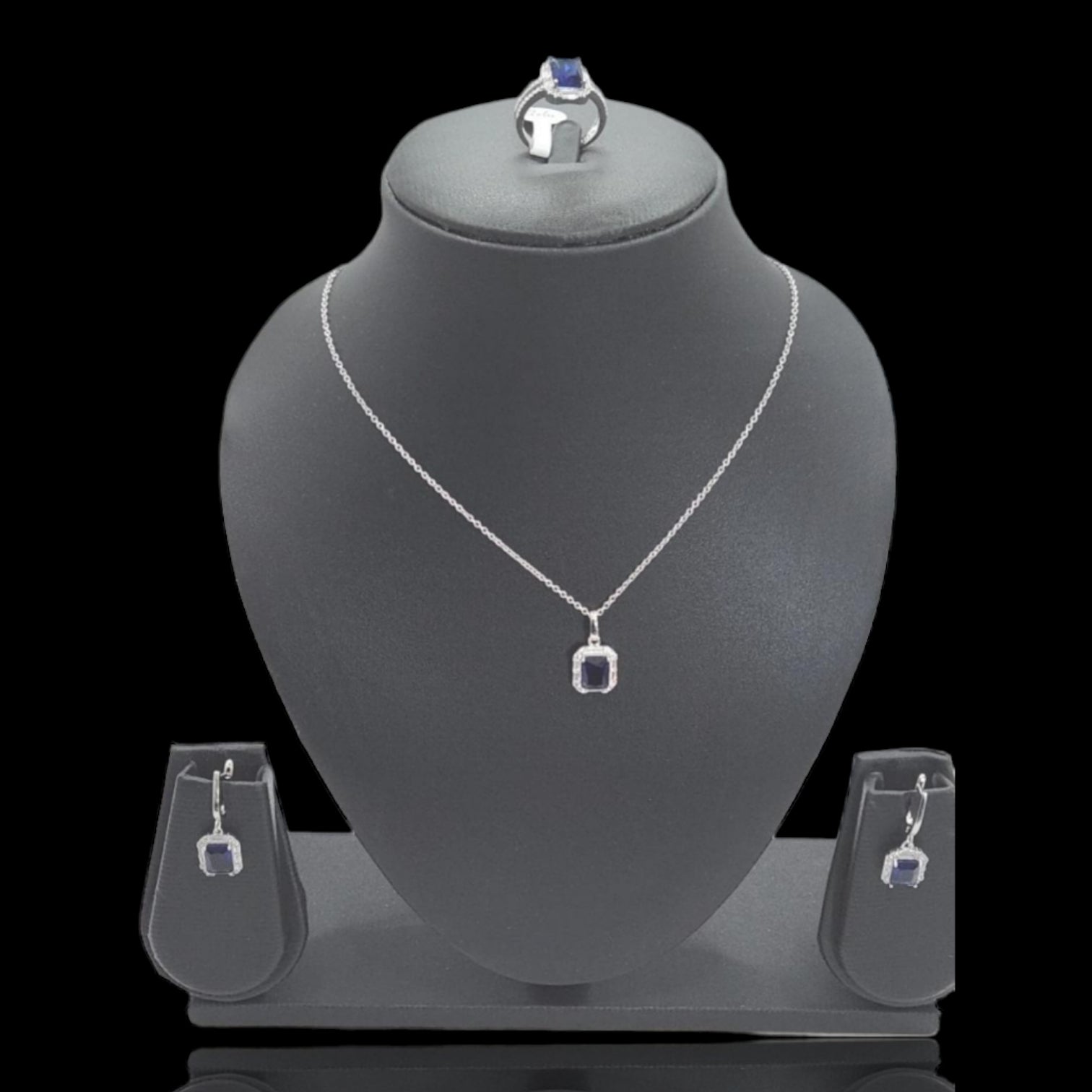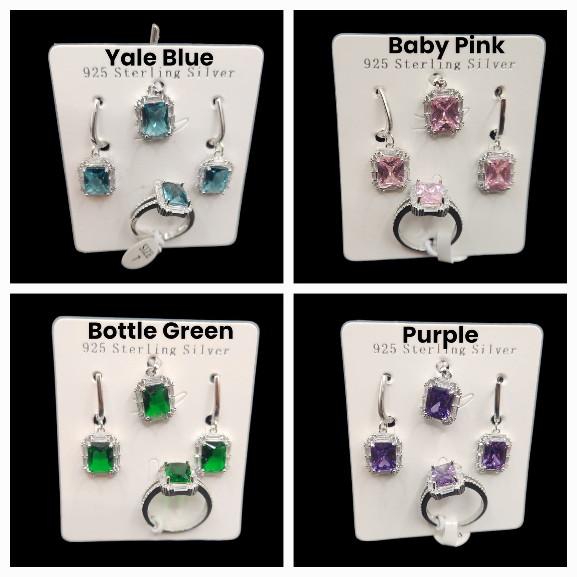 925 sterling silver spectacular Princess Cut Zircon Stone  Pendant,  hoop earrings & ring set (without chain) available in different colors