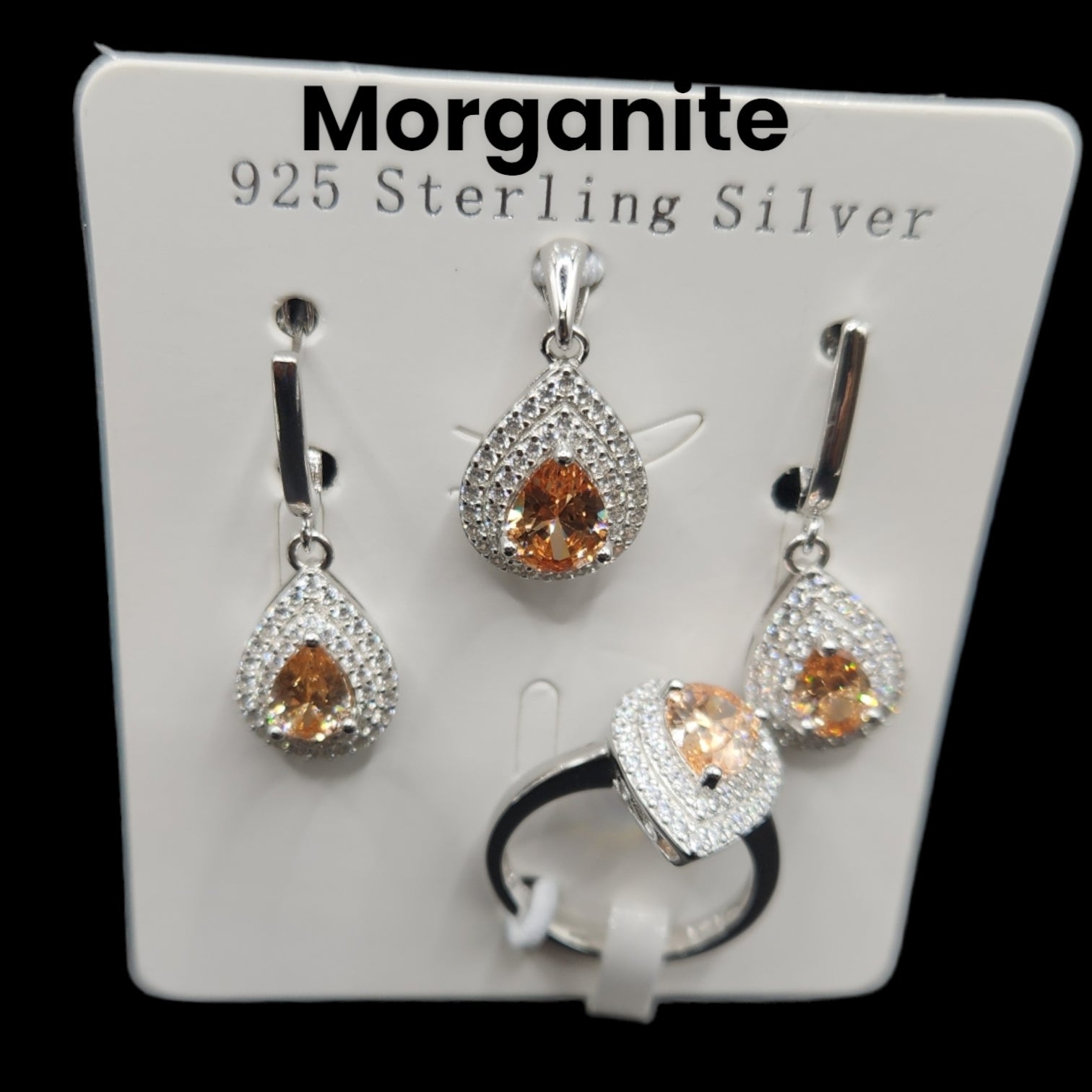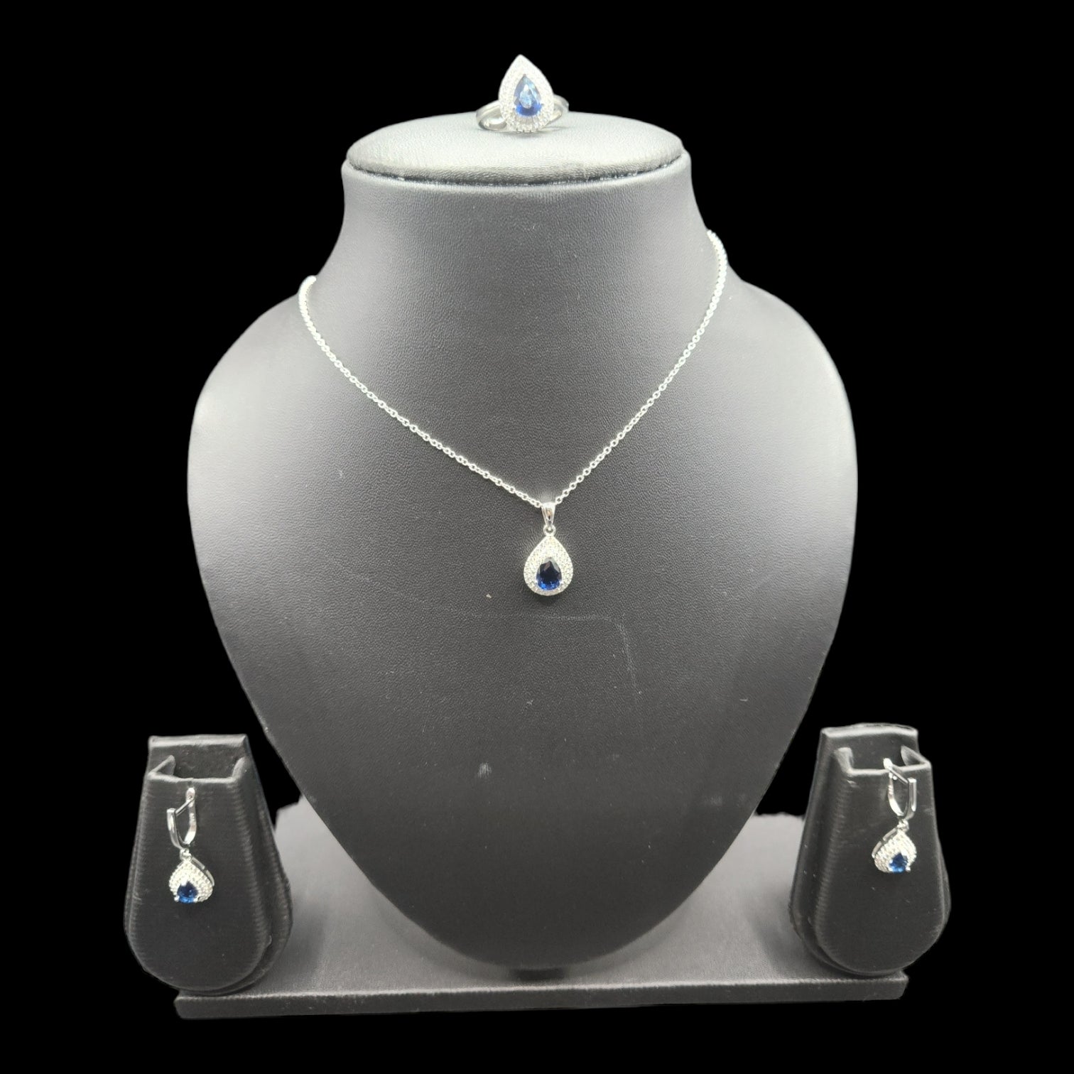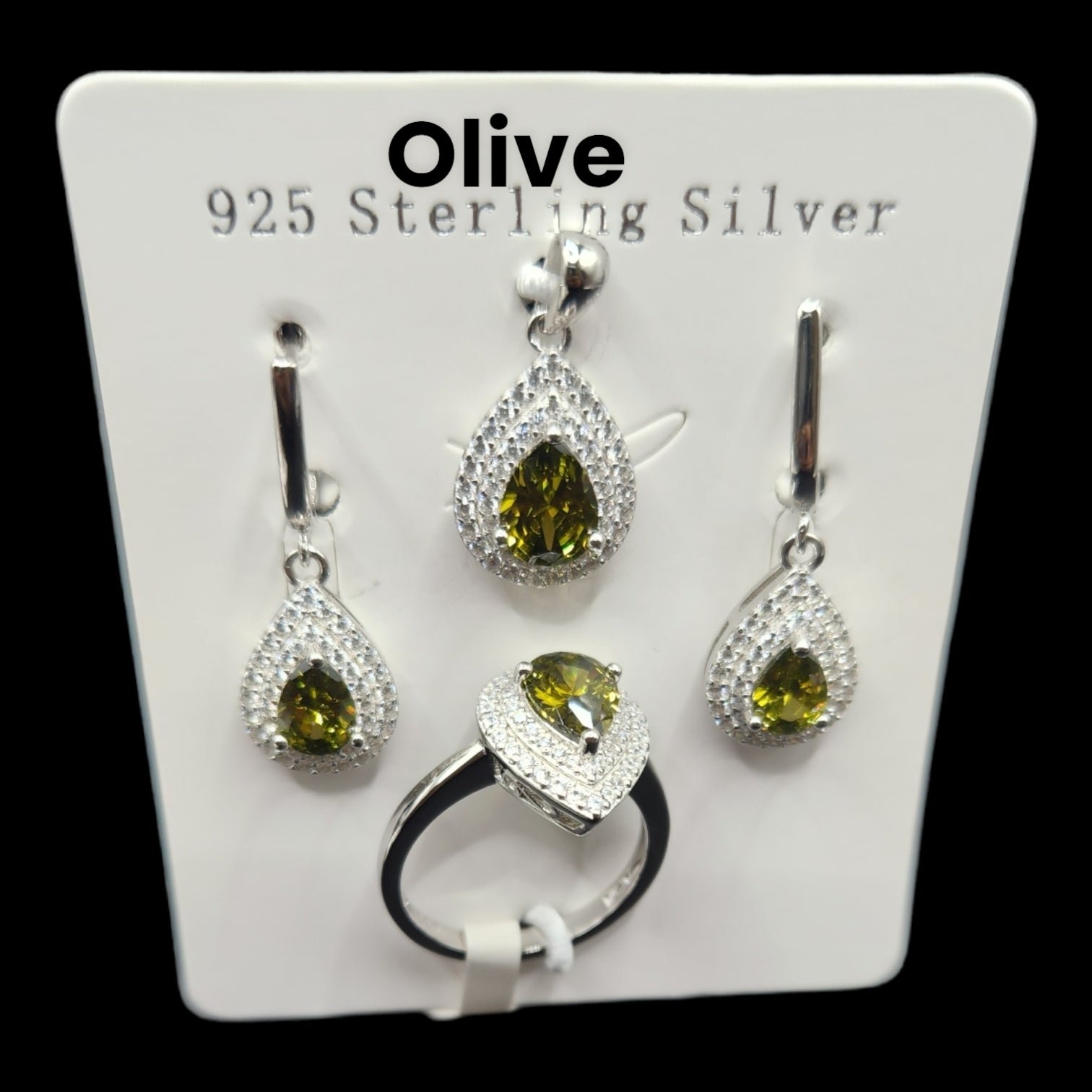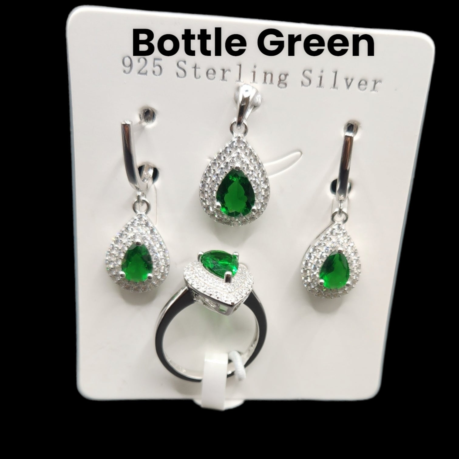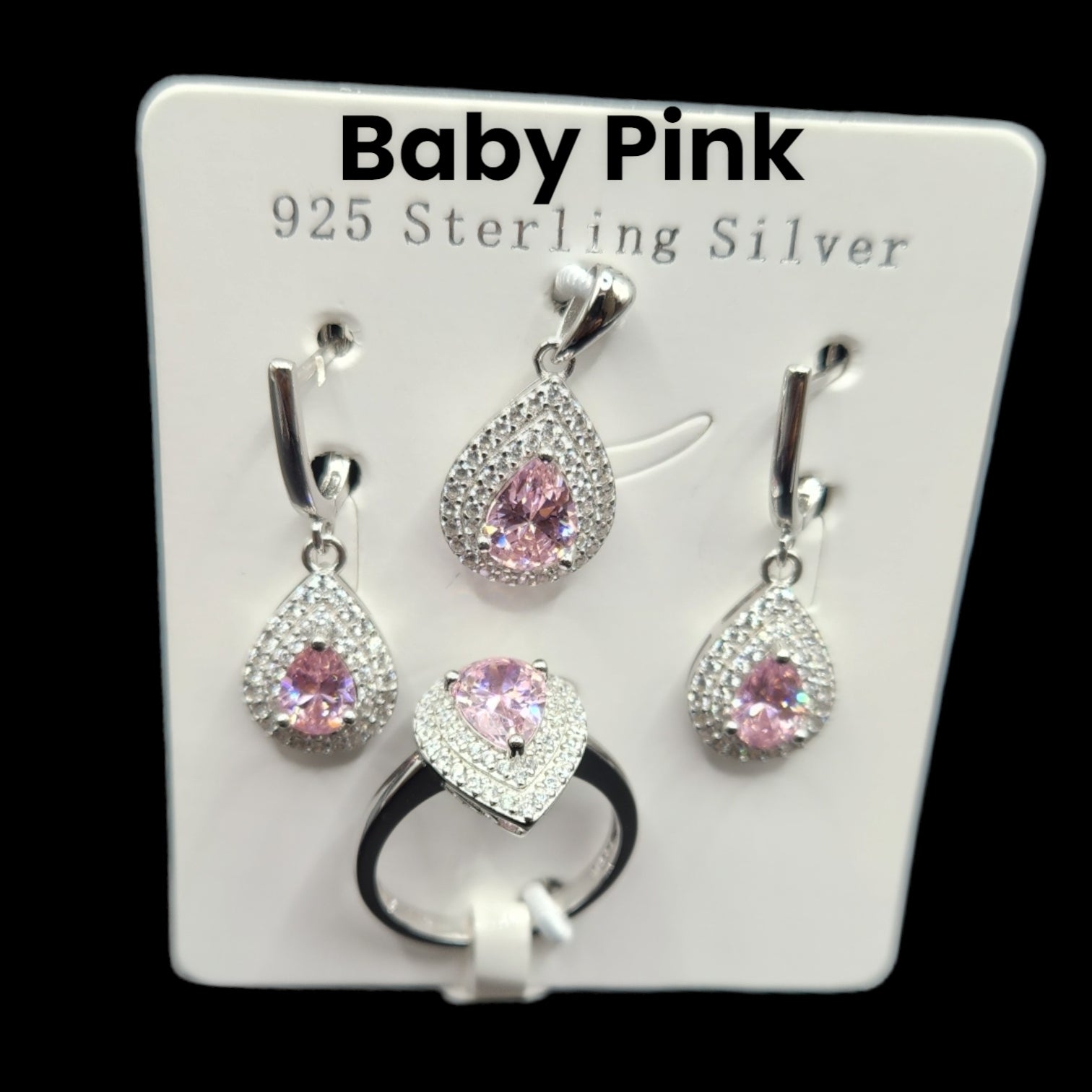 925 sterling silver Pear shape Pendant, hoop earrings & ring set (without chain). available in different colors