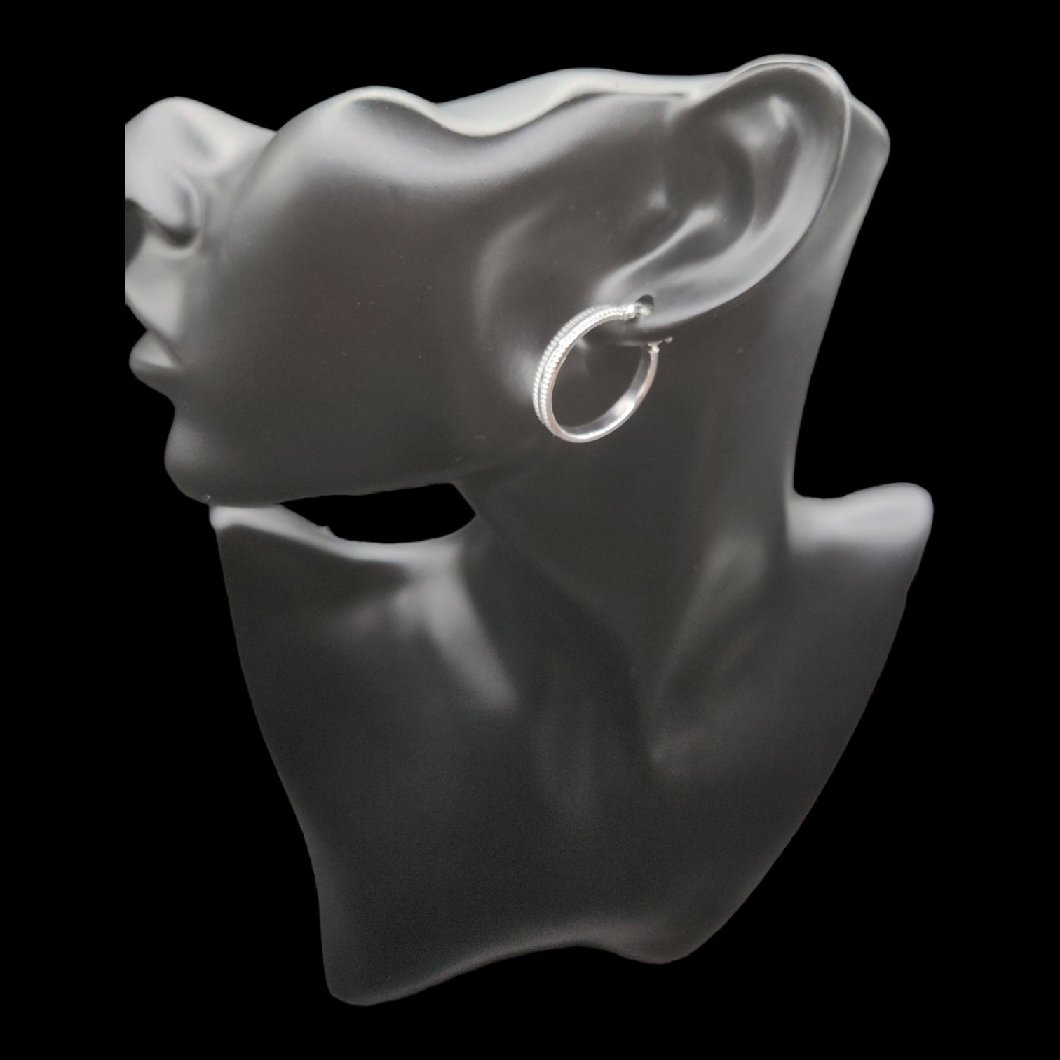 925 Sterling Silver Embellished Thick Hoop  2.5 CM