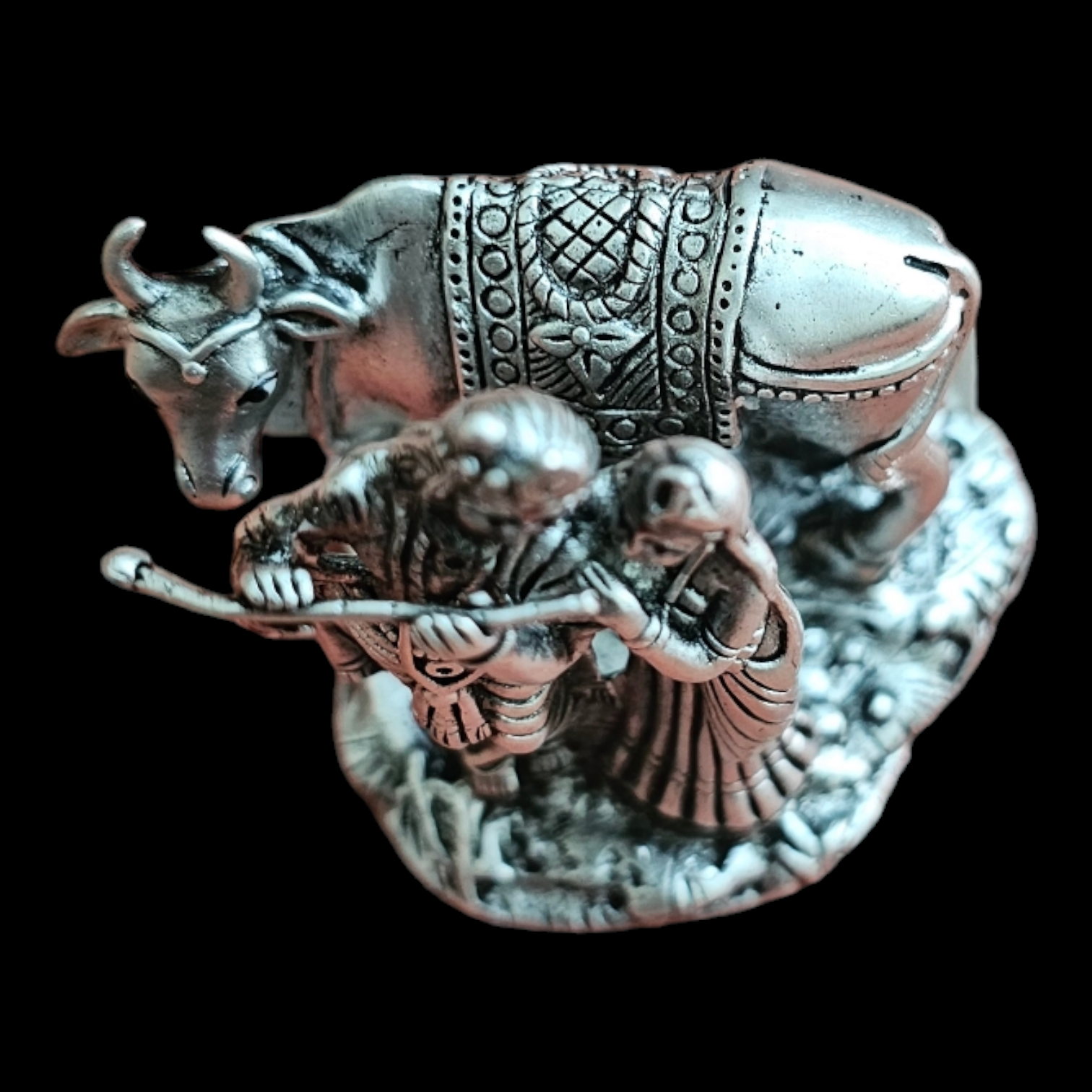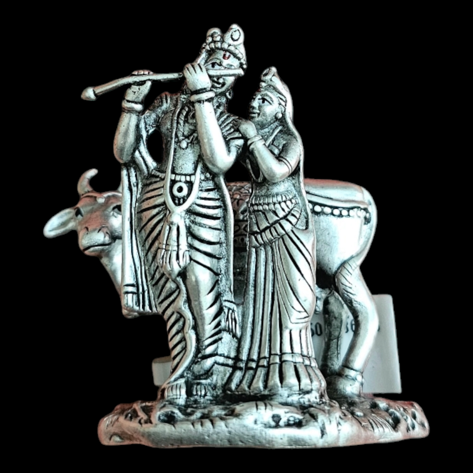925 SILVER Pure Silver Radha Krishna Solid Idol/Murti Playing Flute with Kamdhenu Cow