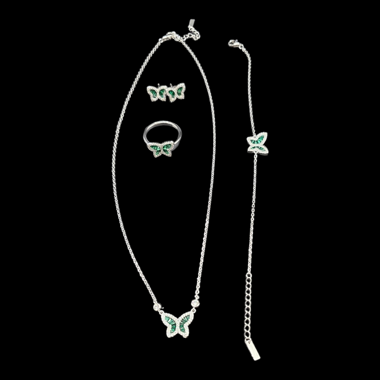 925 silver butterfly shaped pendant Necklace with earrings bracelet and ring.