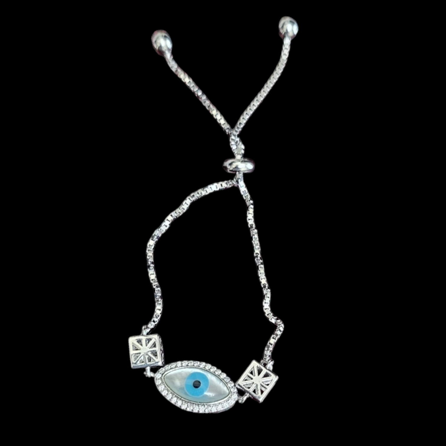 Beautiful 925 sterling silver evil eye slider Bracelet in Zircon stone.