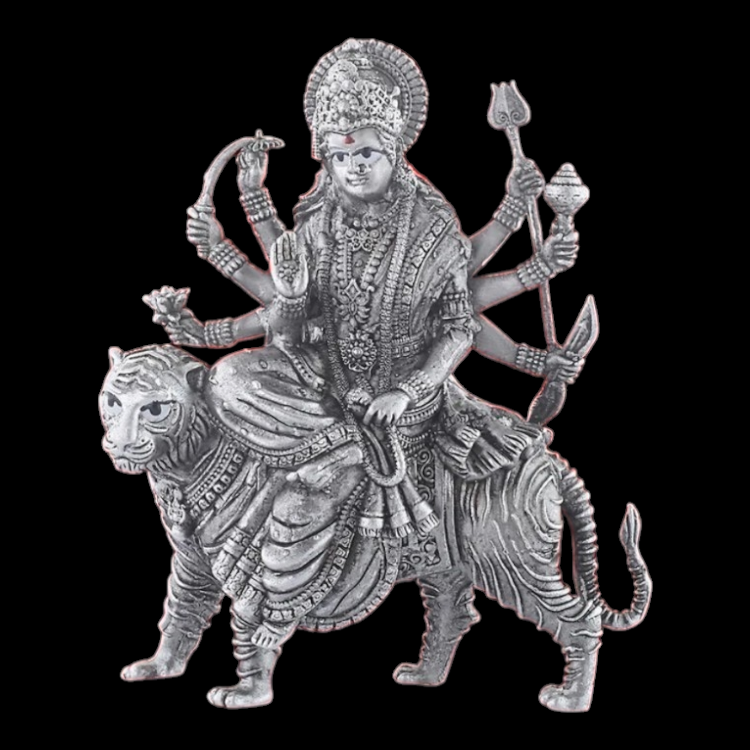 925 Silver Goddess Maa Durga Statue On Tiger