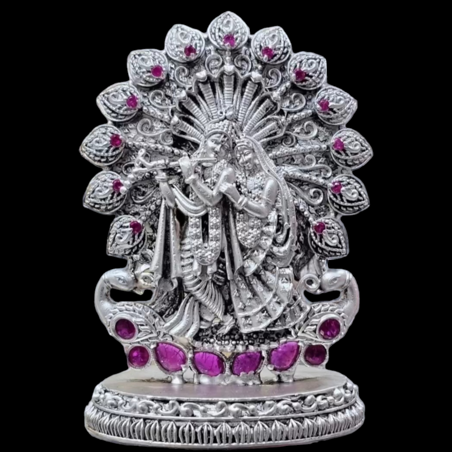 925 Silver Radha krishna idol with stones and antique polish.