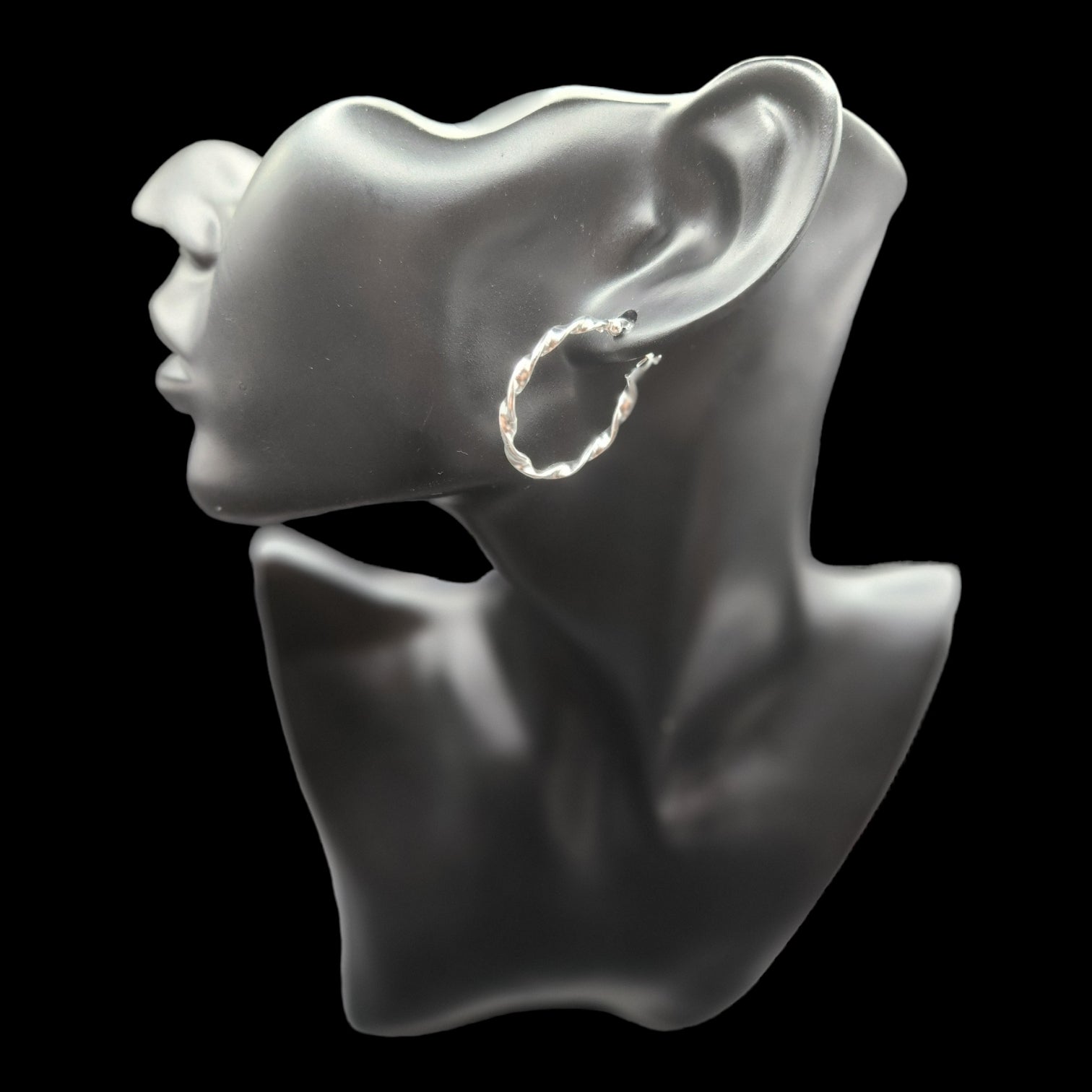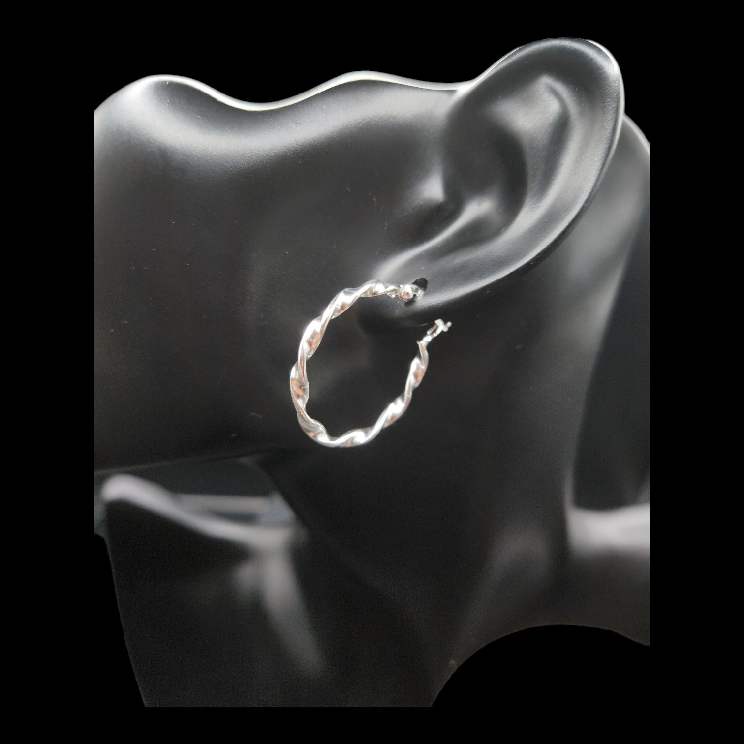 925 Sterling Silver Twisted Hoop Earrings 3 CM