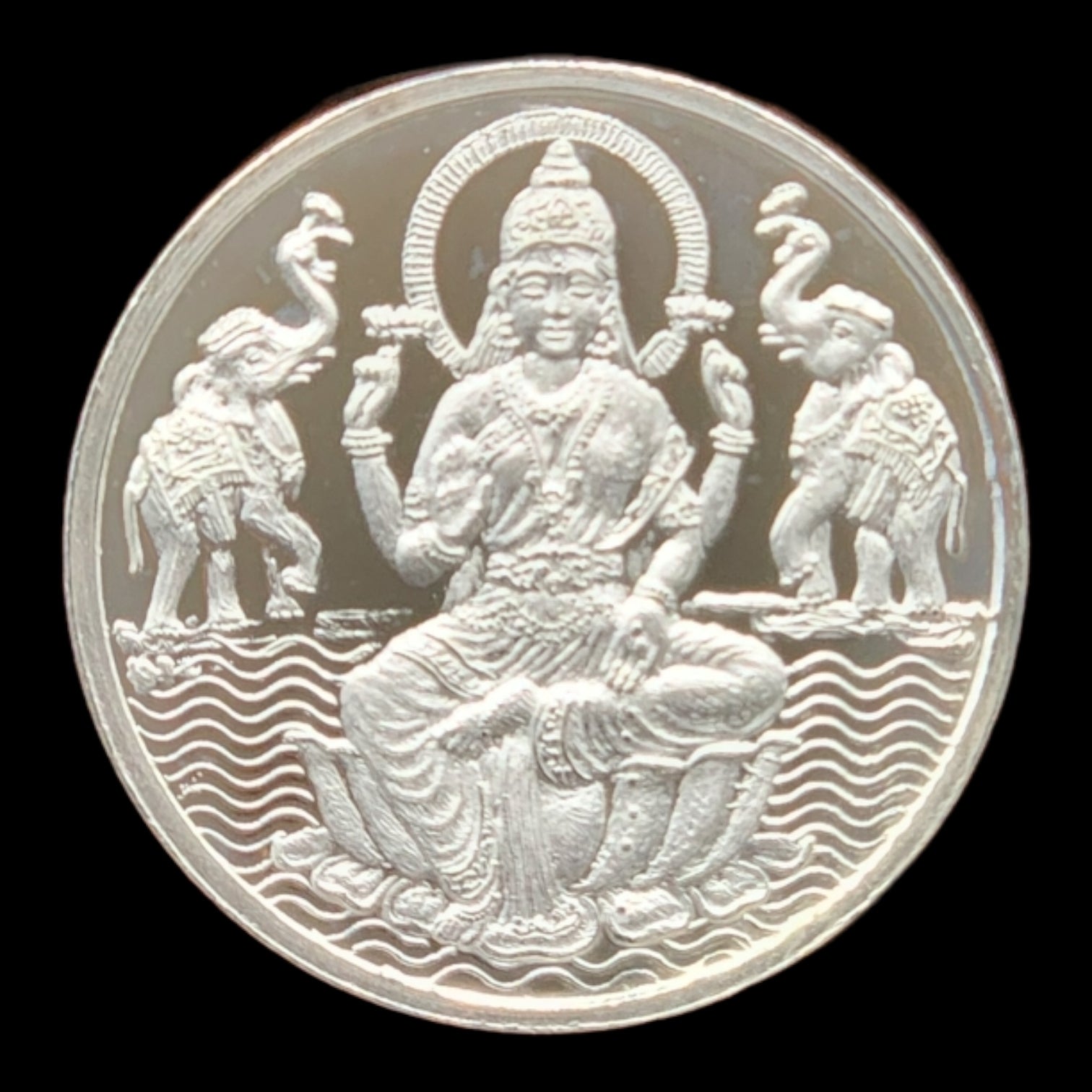 • This 999 fine Silver coin of  Goddess Laxmi on the front and symbol of ' SHREE ' at the reverse side of the coin.