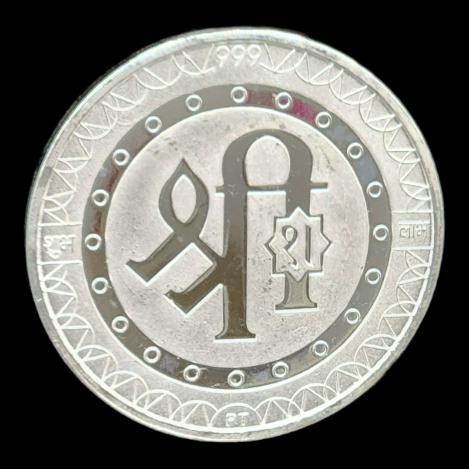 • This 999 fine Silver coin of  Lord Ganesh Goddess Laxmi , Goddess Saraswati on the front and symbol of ' SHREE ' at the reverse side of the coin.