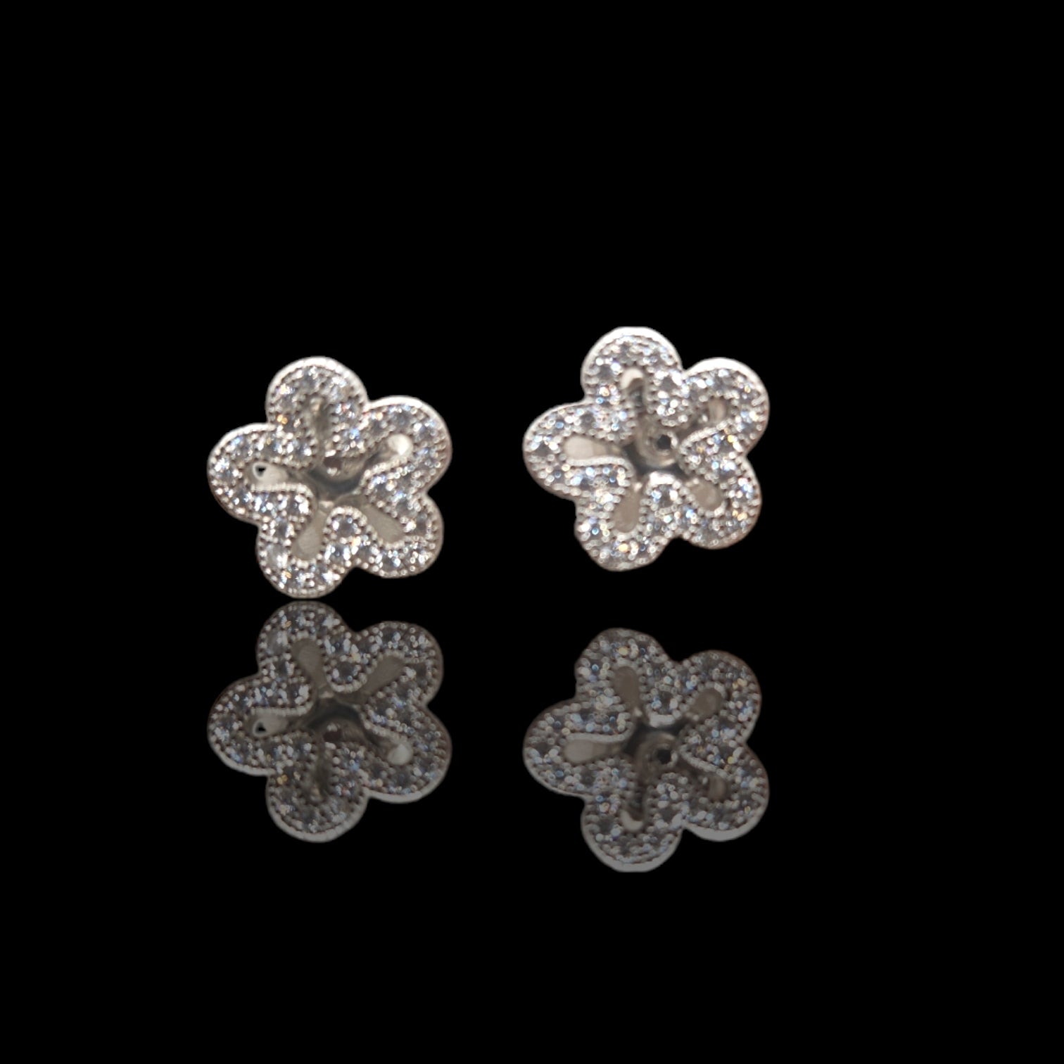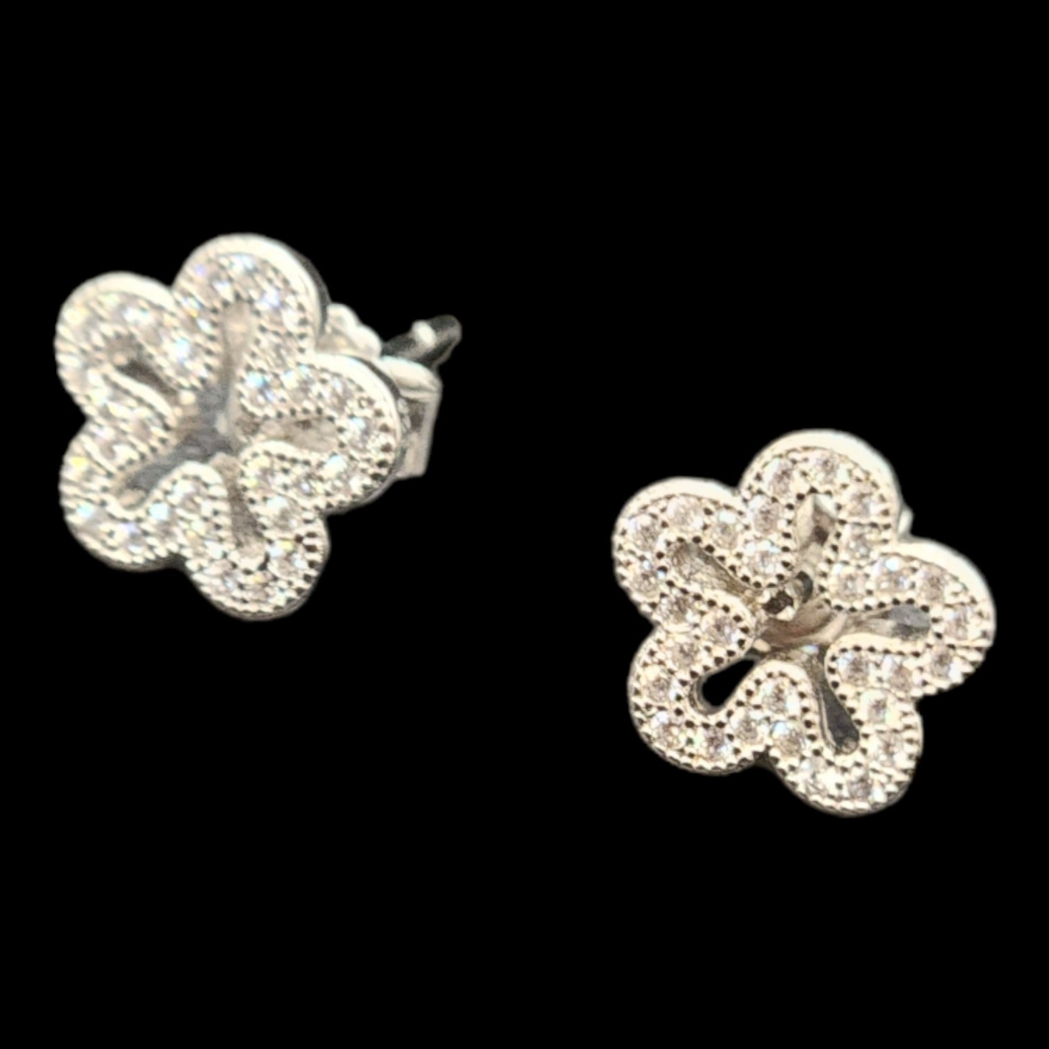 924 Sterling Silver Zircon Stone Blossom Studs.