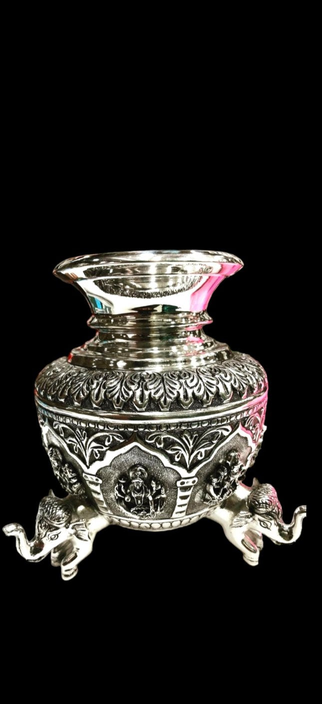 925 Antique Silver Handcrafted Nakshi Elephant Stand Kalash.