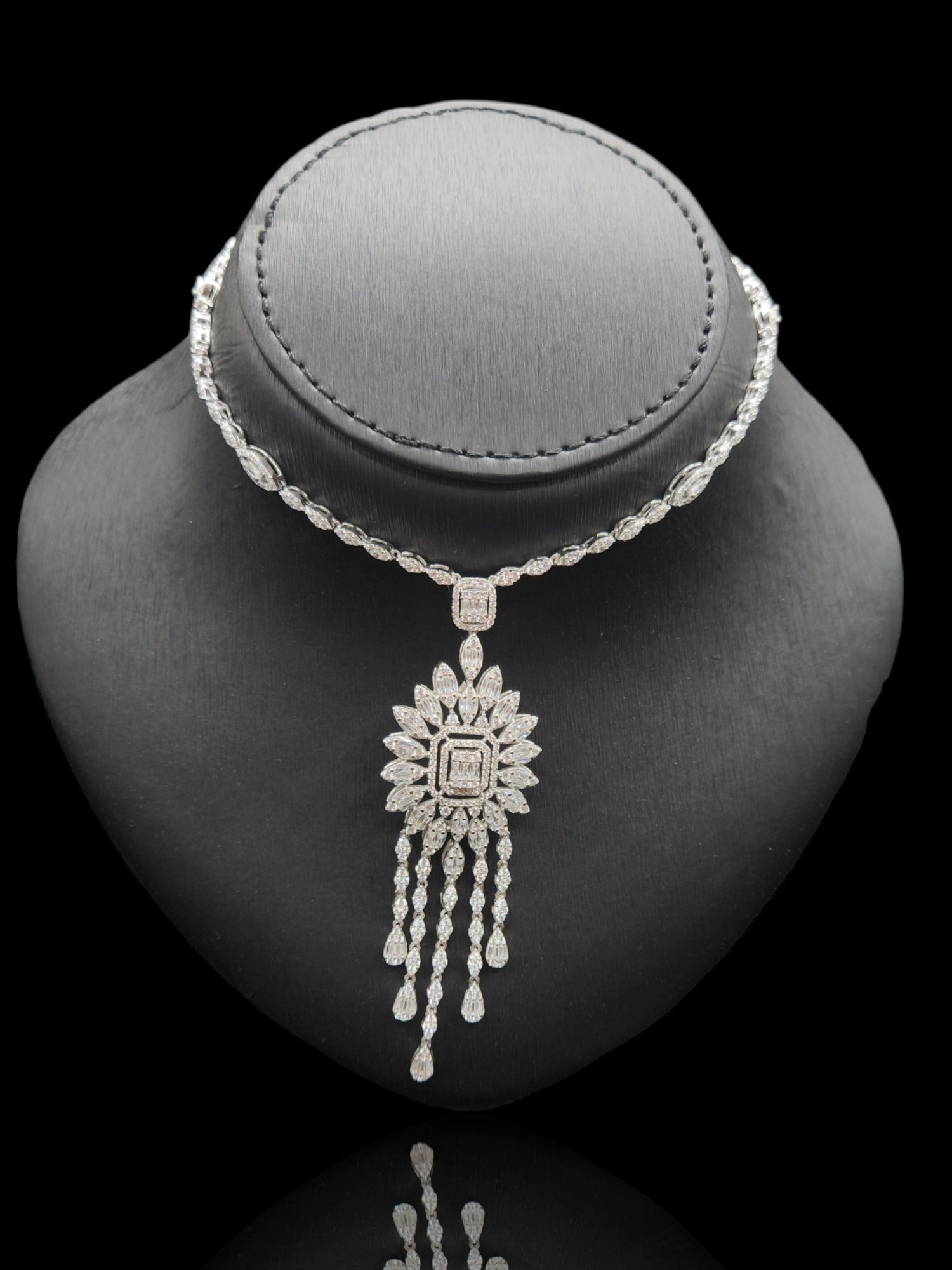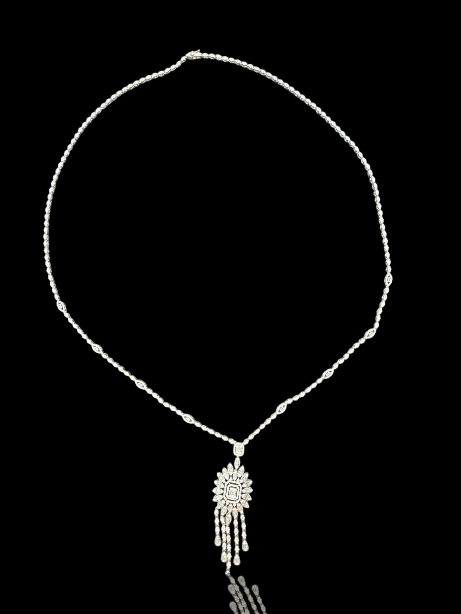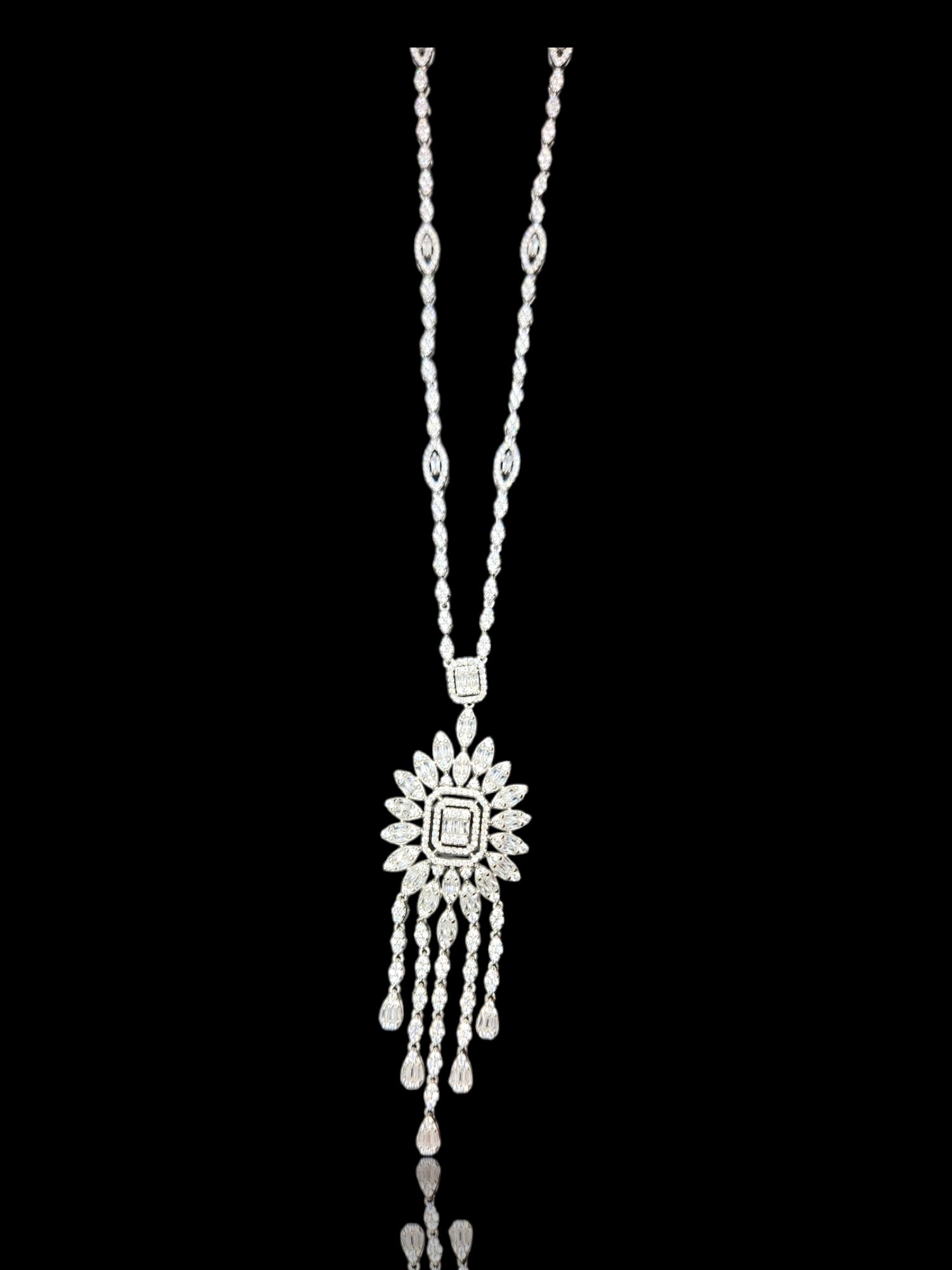 - Beautiful long Chandelier Pendant necklace is made of white Stone and 925 Sterling Silver for you to be the queen of all.