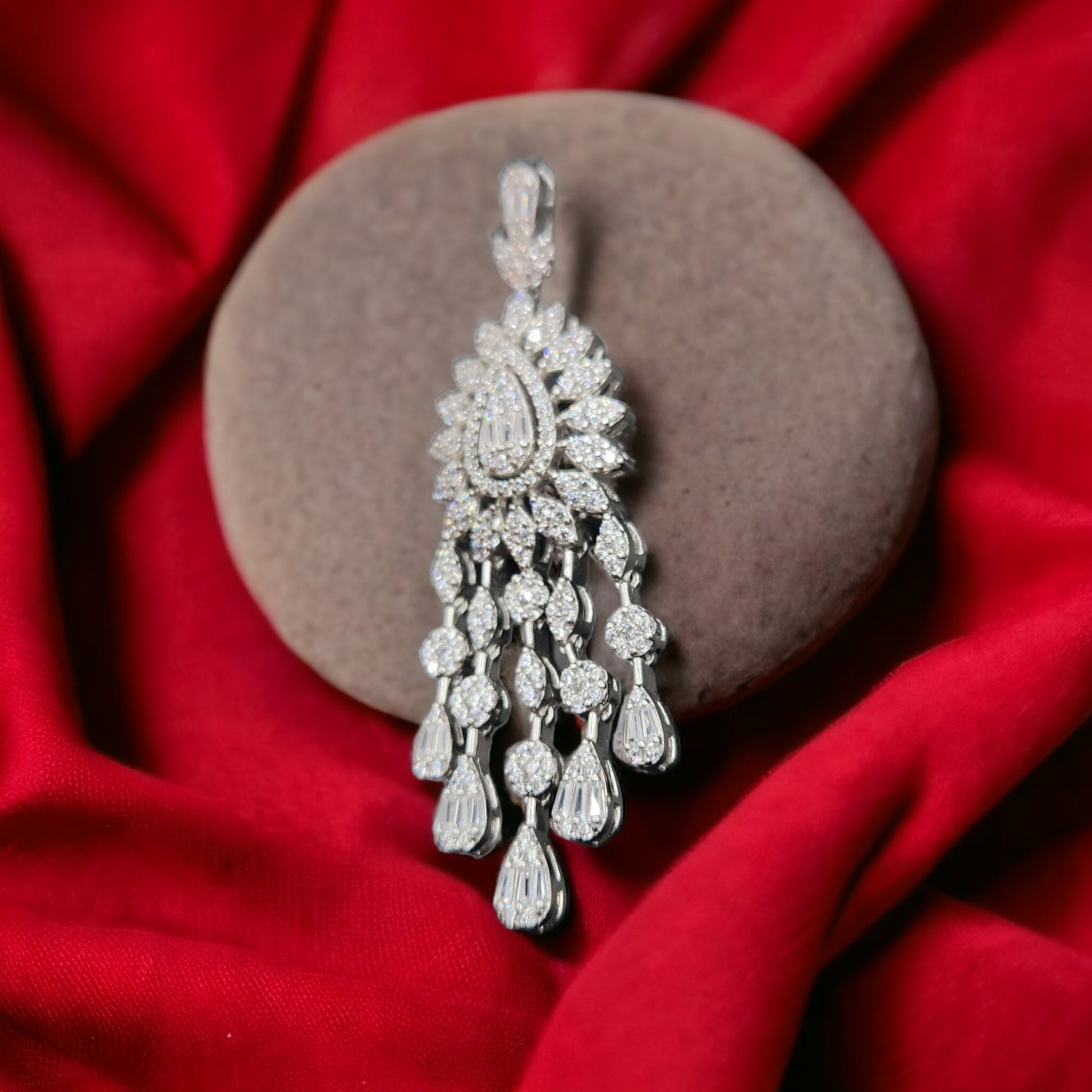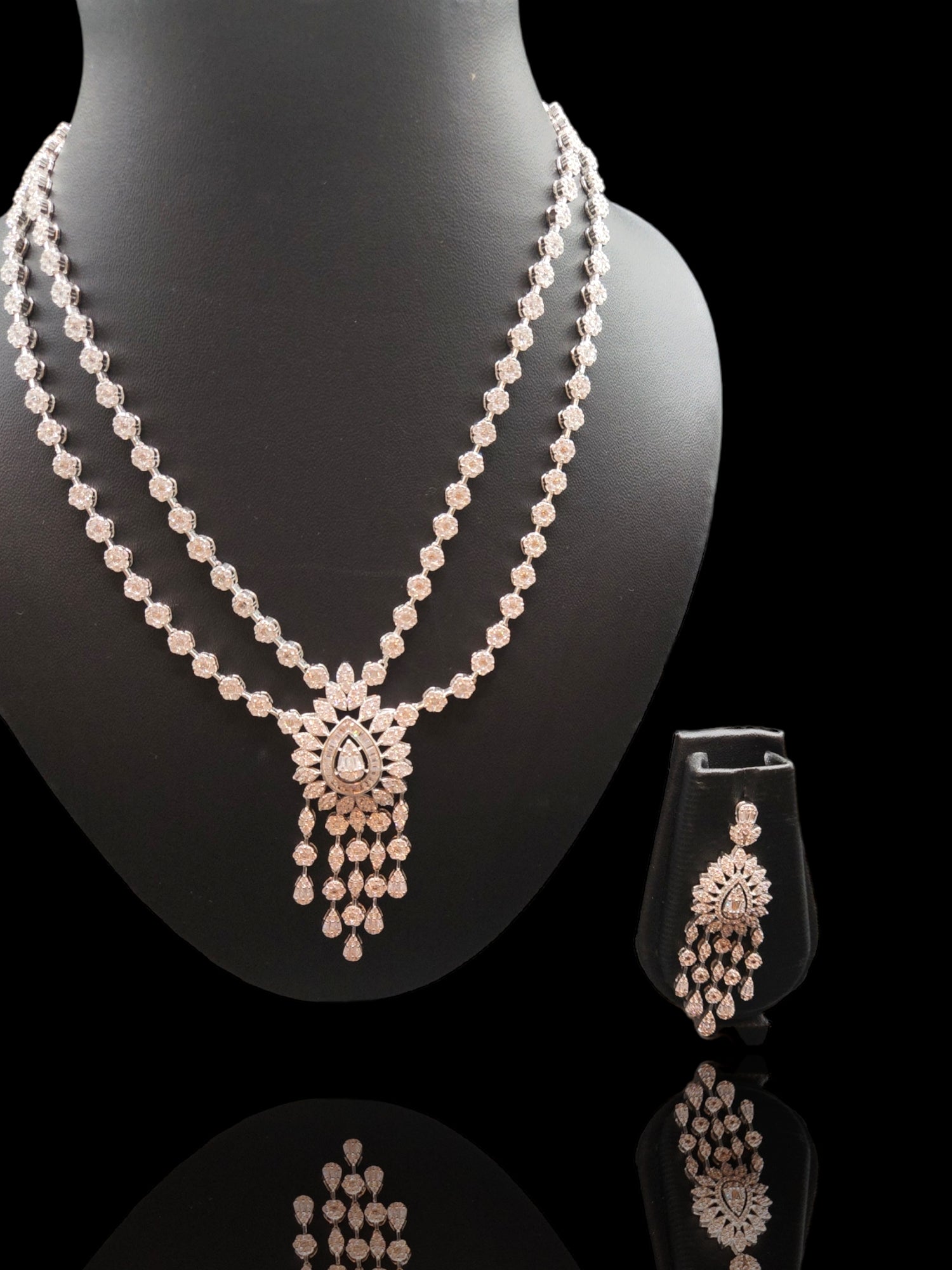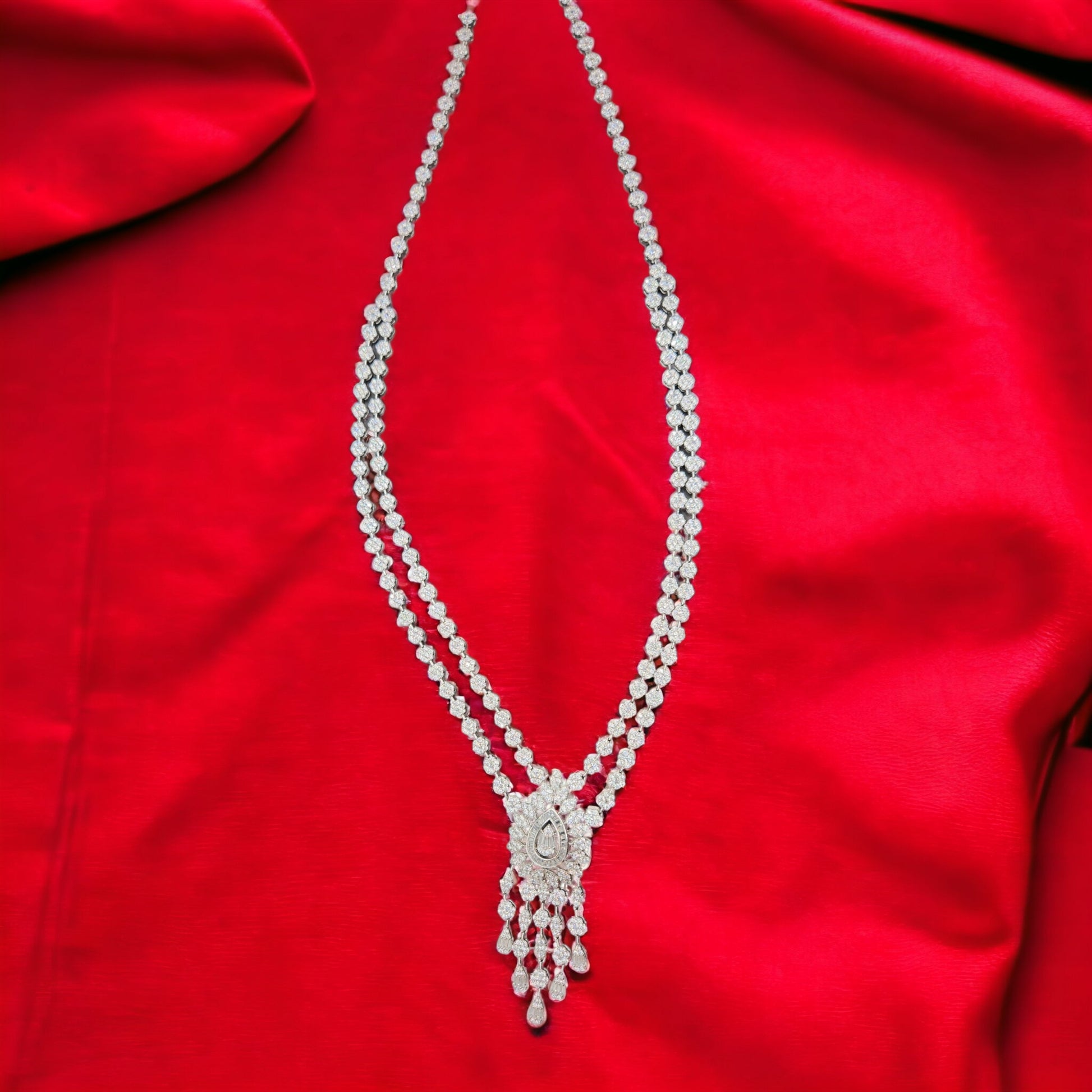 - Beautiful long Chandelier Pendant necklace and Earrings are made of white Stone and 925 Sterling Silver for you to be the queen of all.