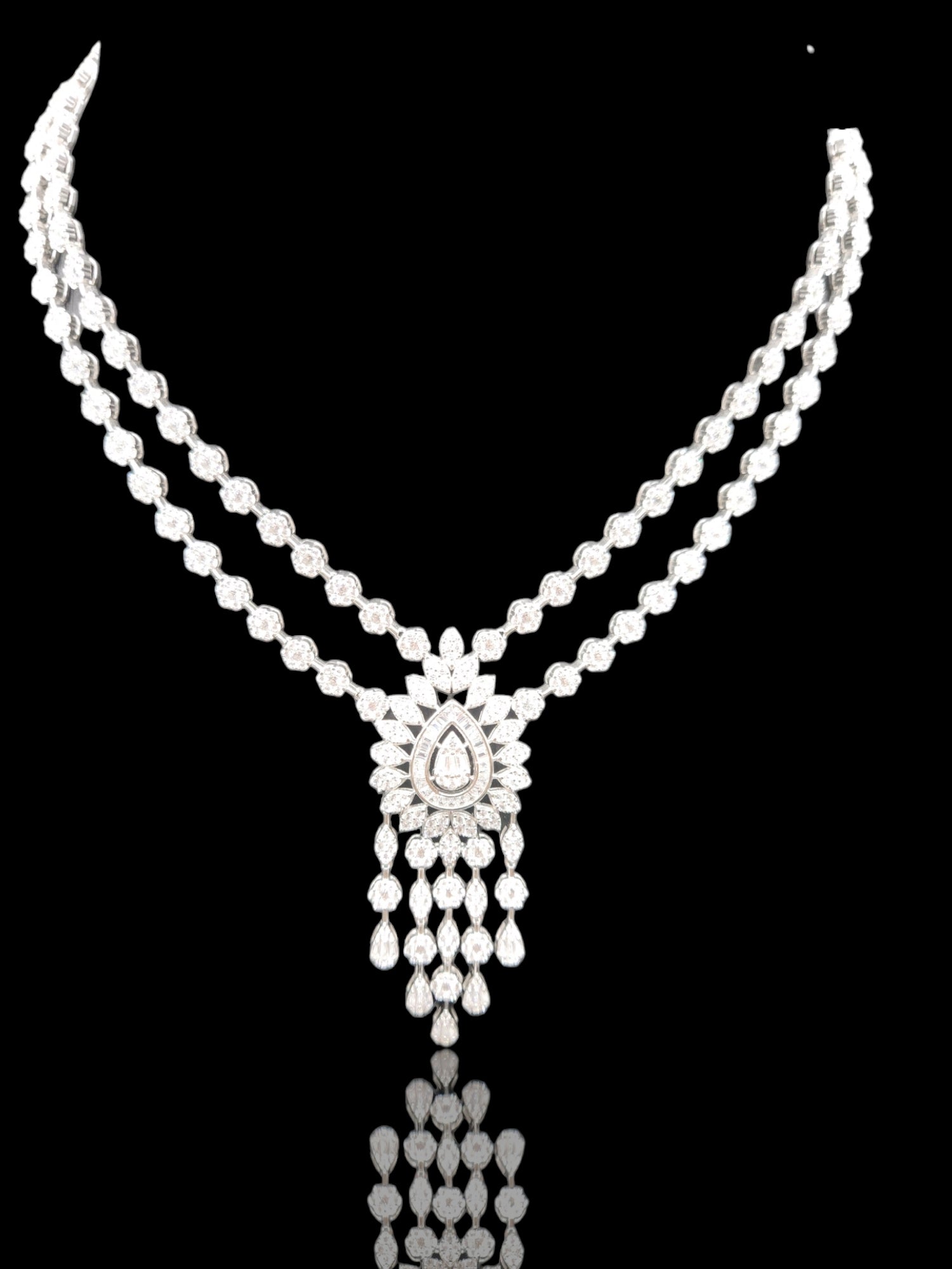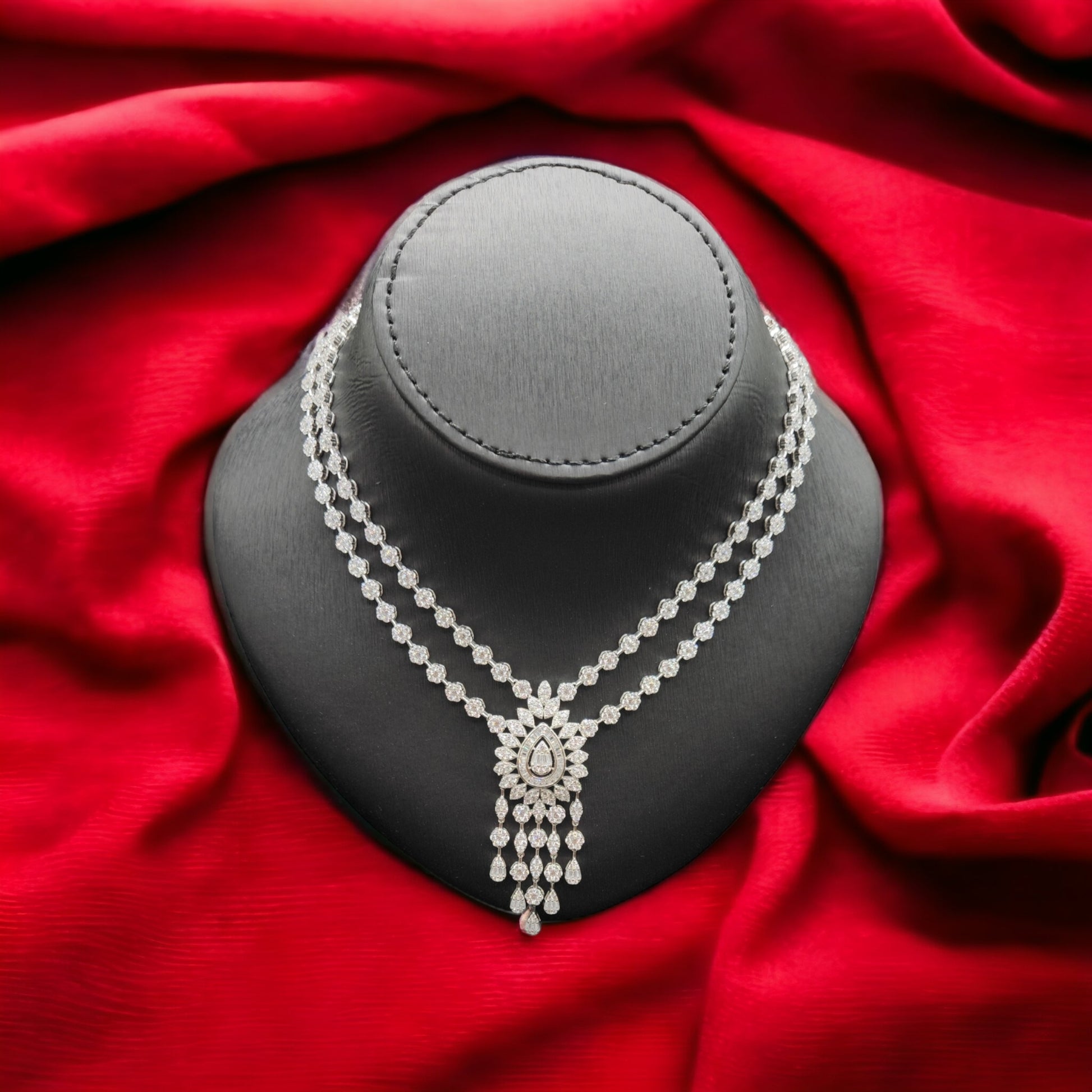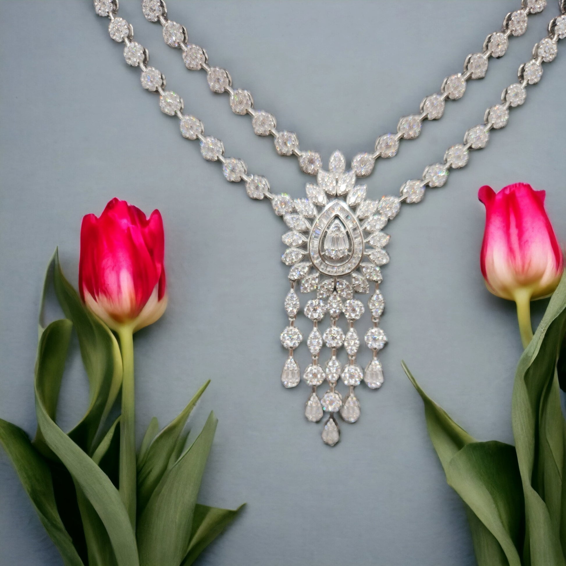 - Beautiful long Chandelier Pendant necklace and Earrings are made of white Stone and 925 Sterling Silver for you to be the queen of all.