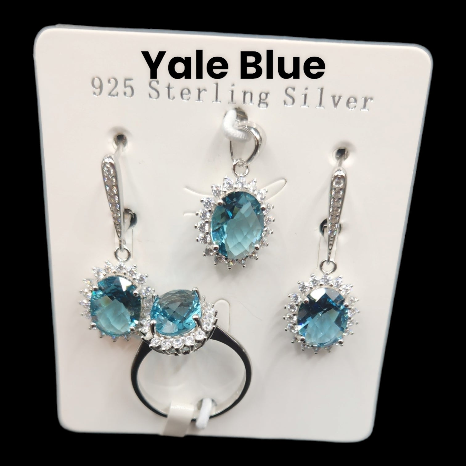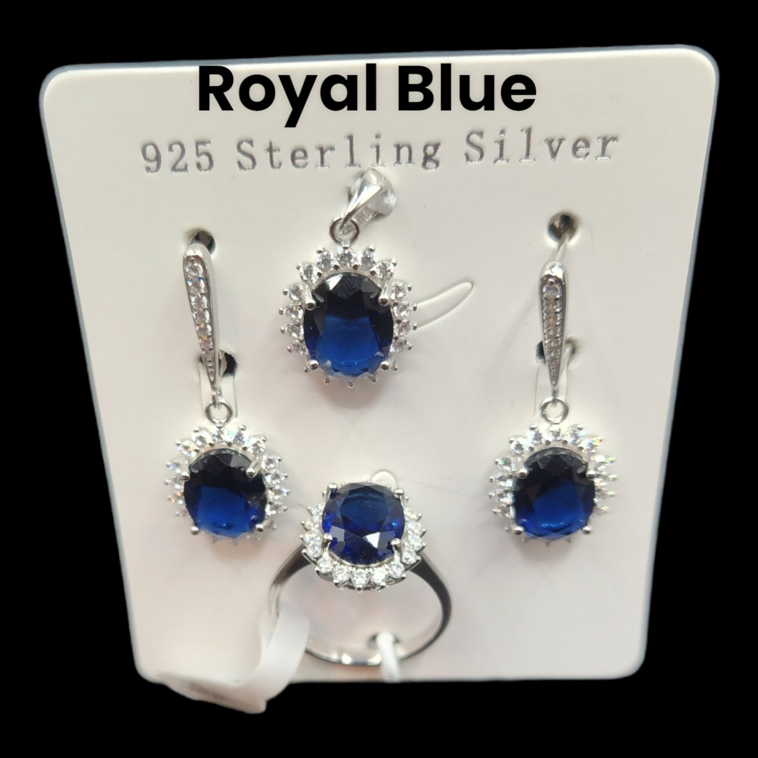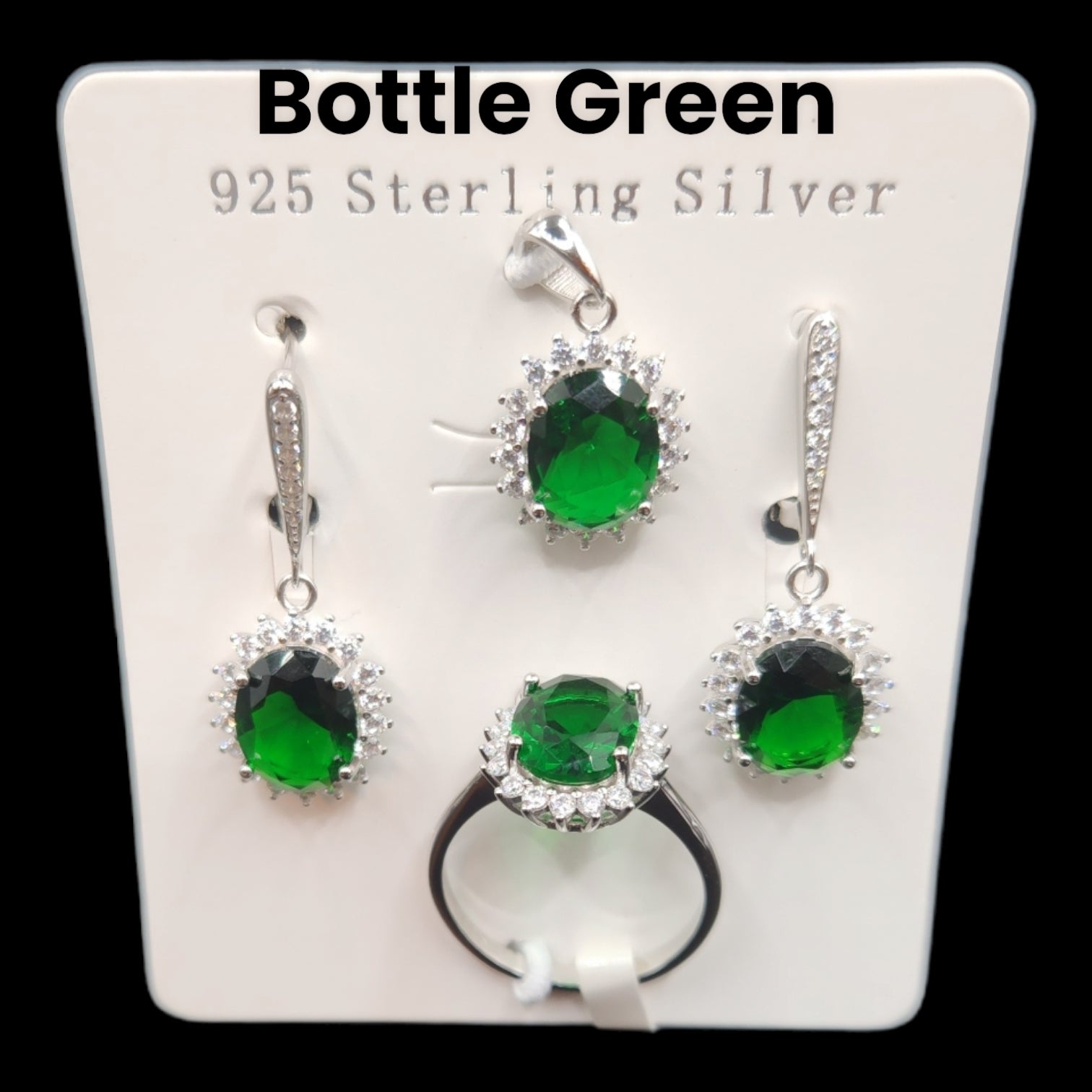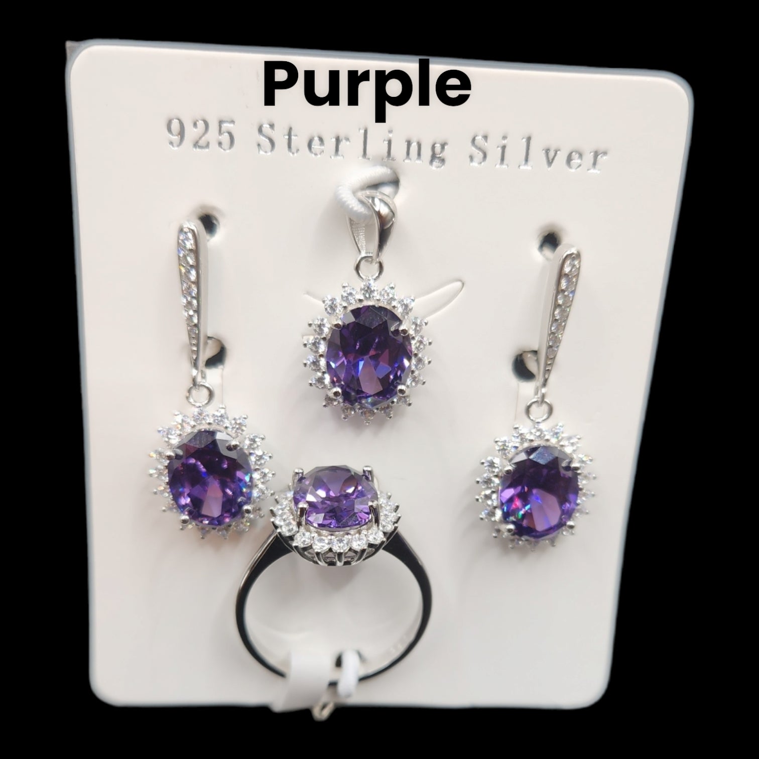 925 sterling silver oval flower shape Pendant,  hoop earrings & ring set (without chain). available in different colors