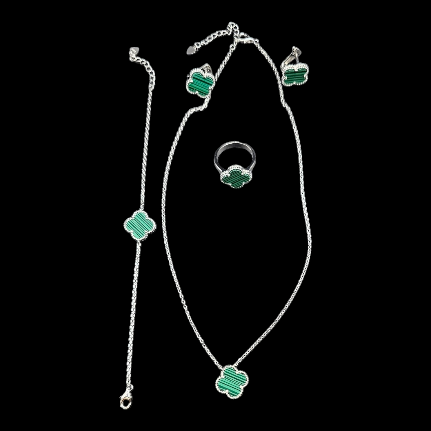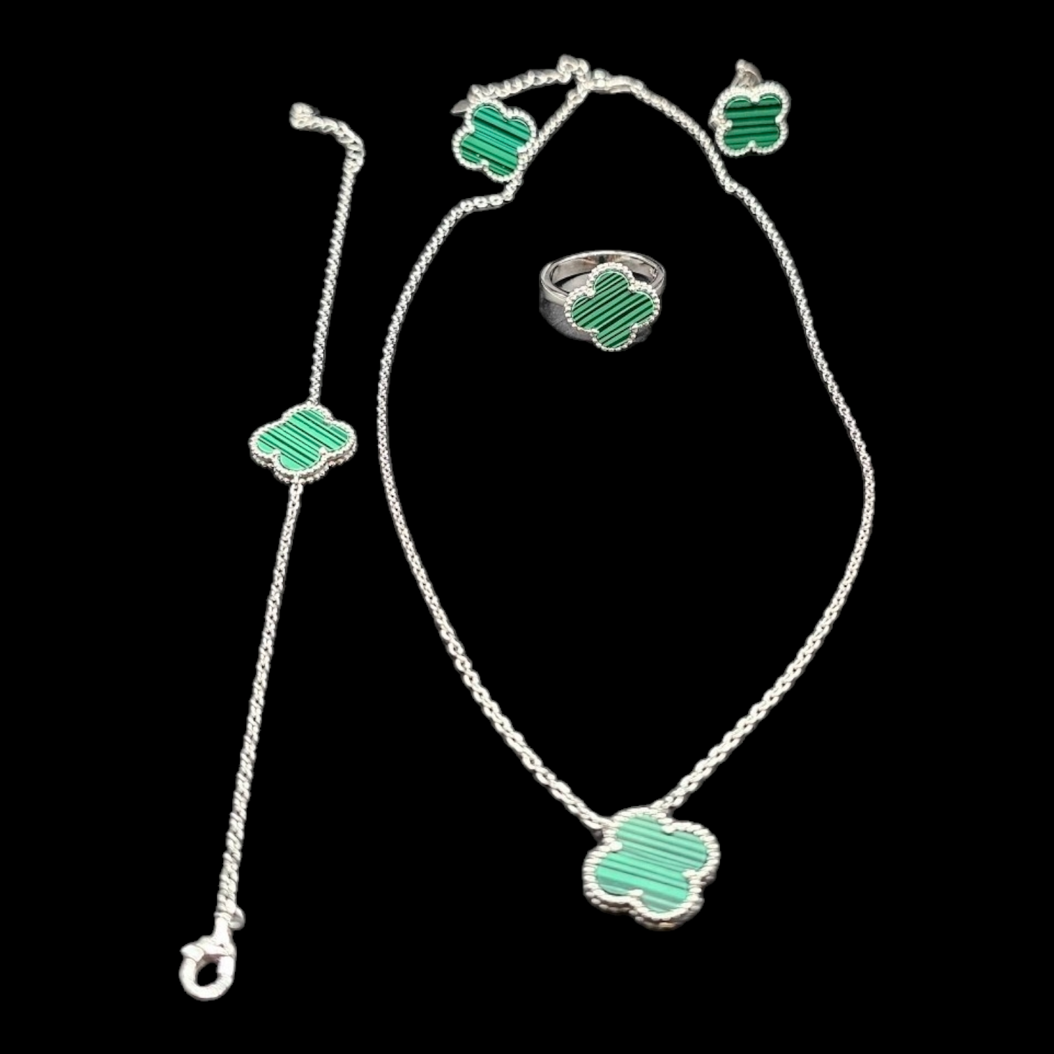 925 silver four clover leaf design necklace set with bracelet , earrings n ring