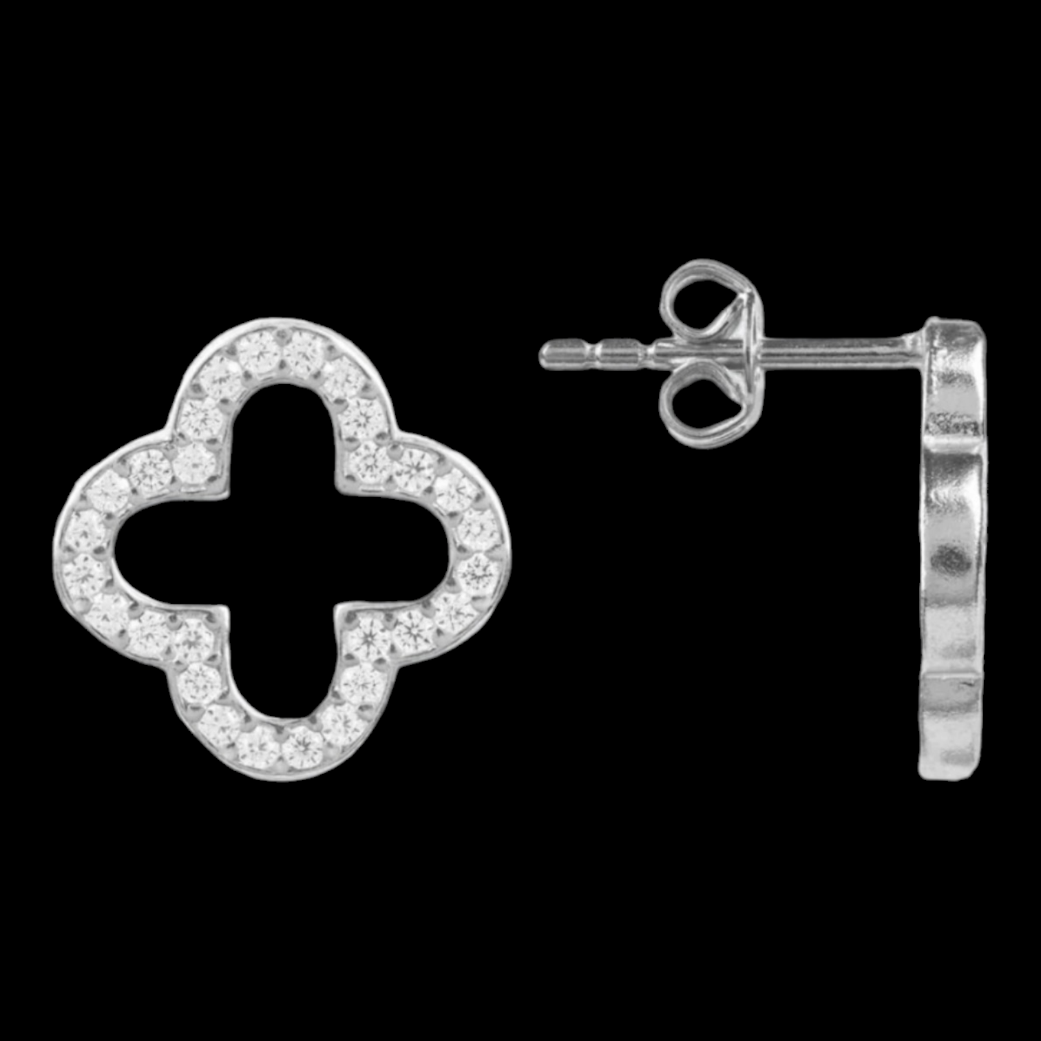 925 Sterling Silver Hollow Four clover Leaf Earrings.