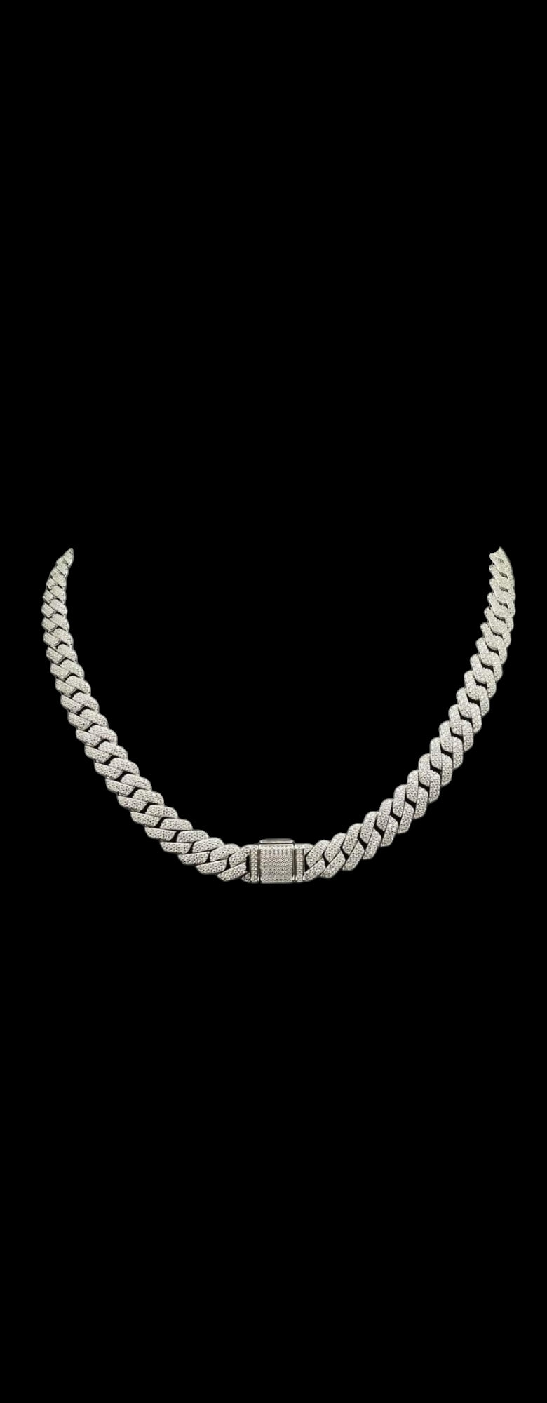 Mens Iced Out Hip Hop 925 sterling Silver Miami Cuban Link Chain.