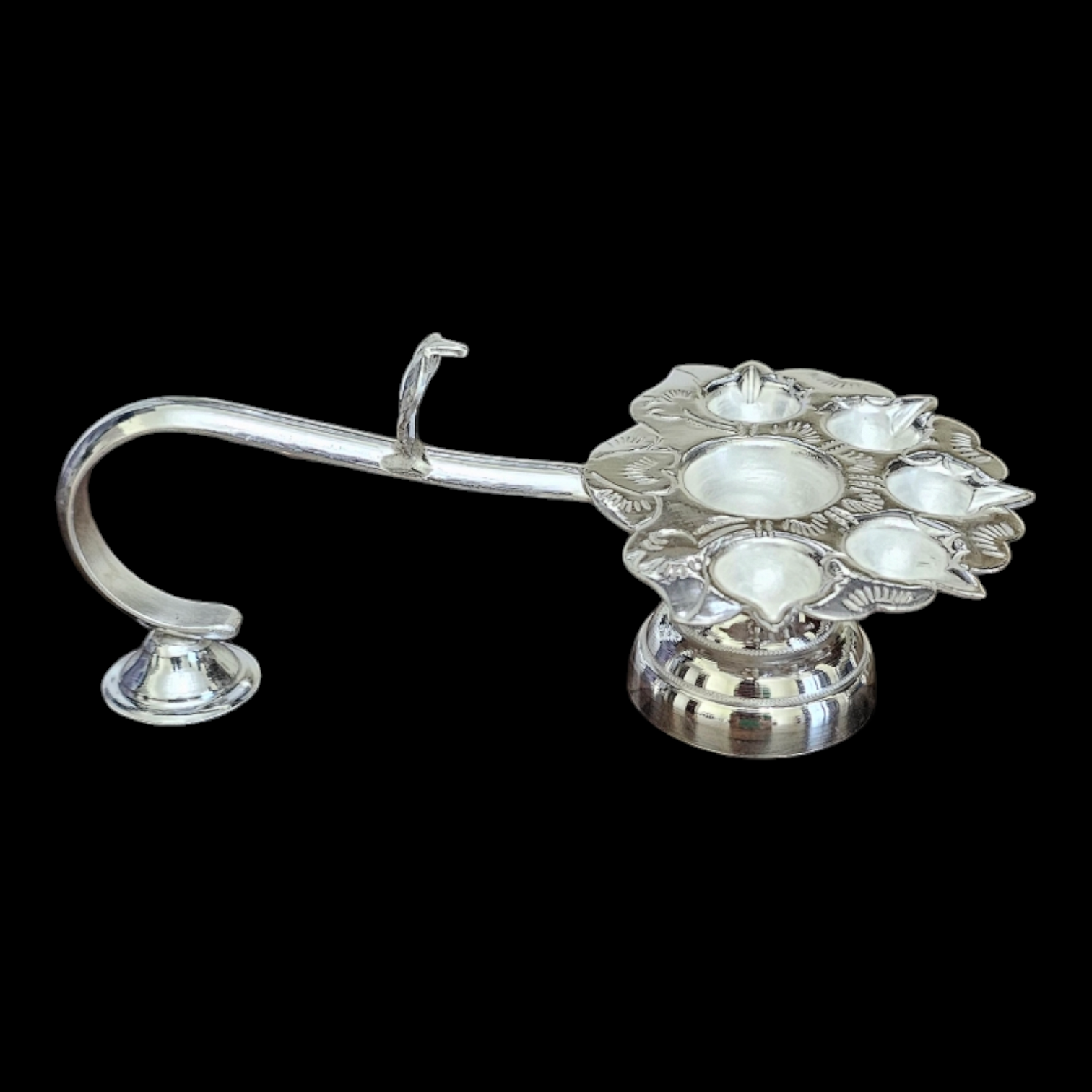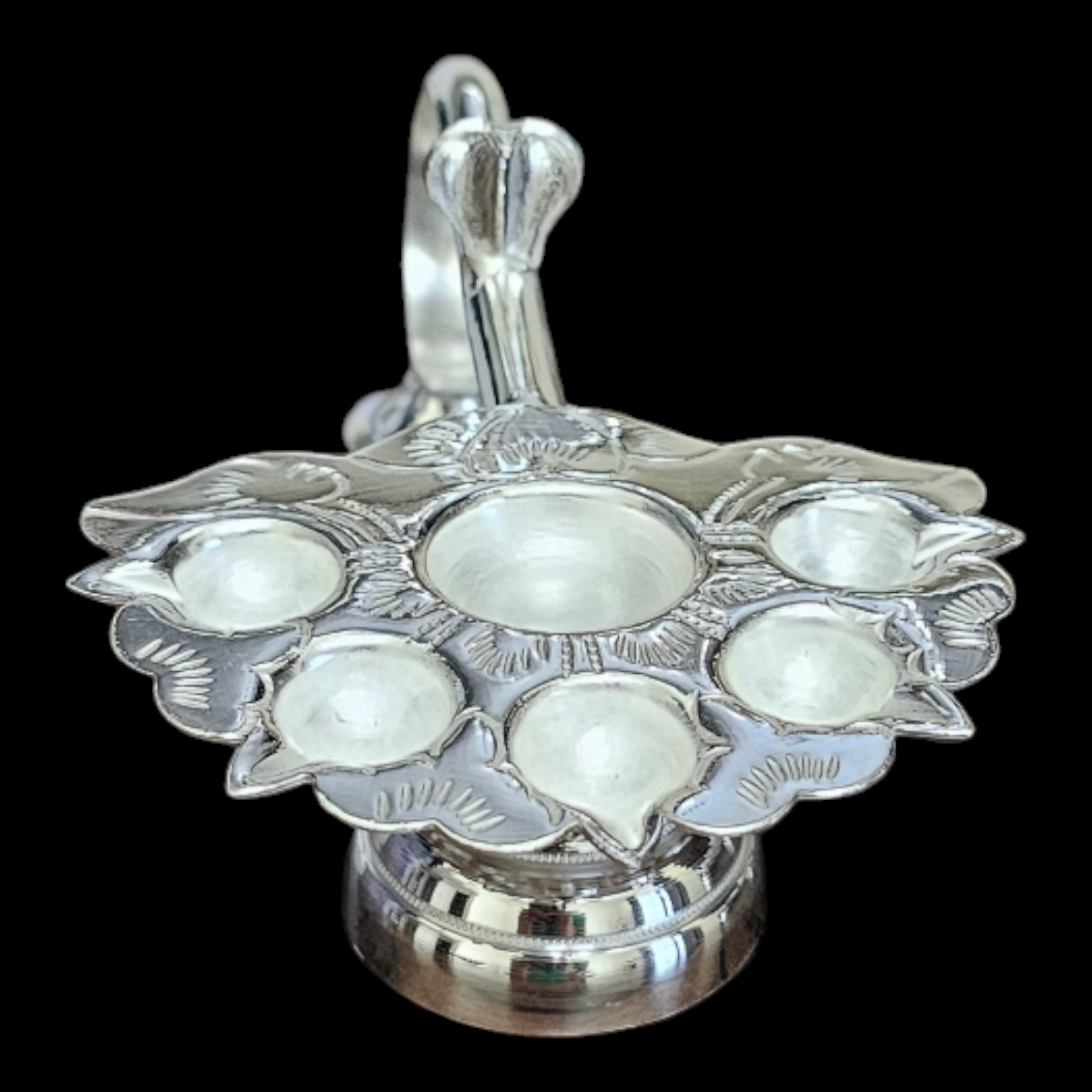 Panchaarti Diya in Pure Silver Oil Lamp Hindu Religion Puja Vessel for Aarti Pooja and Havan