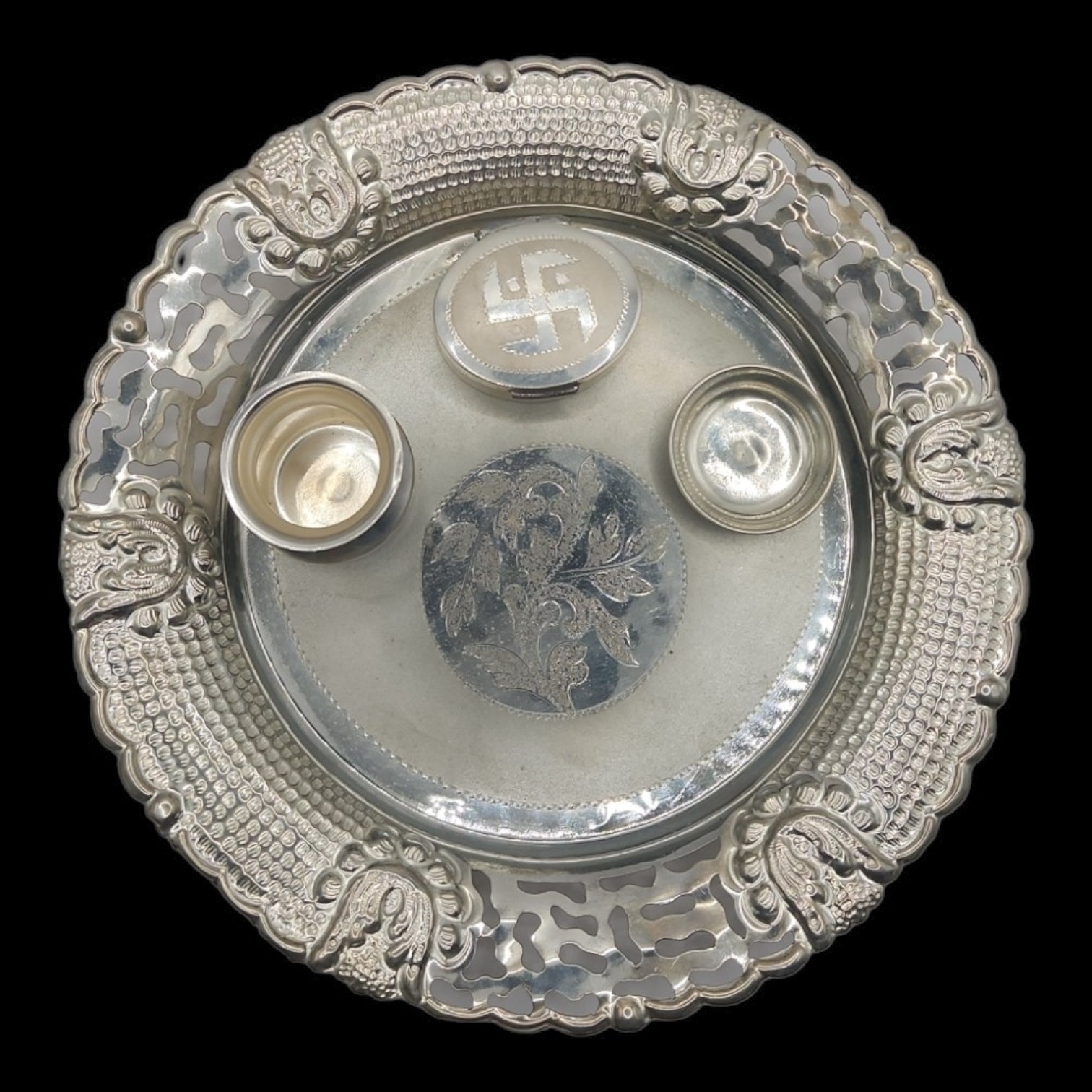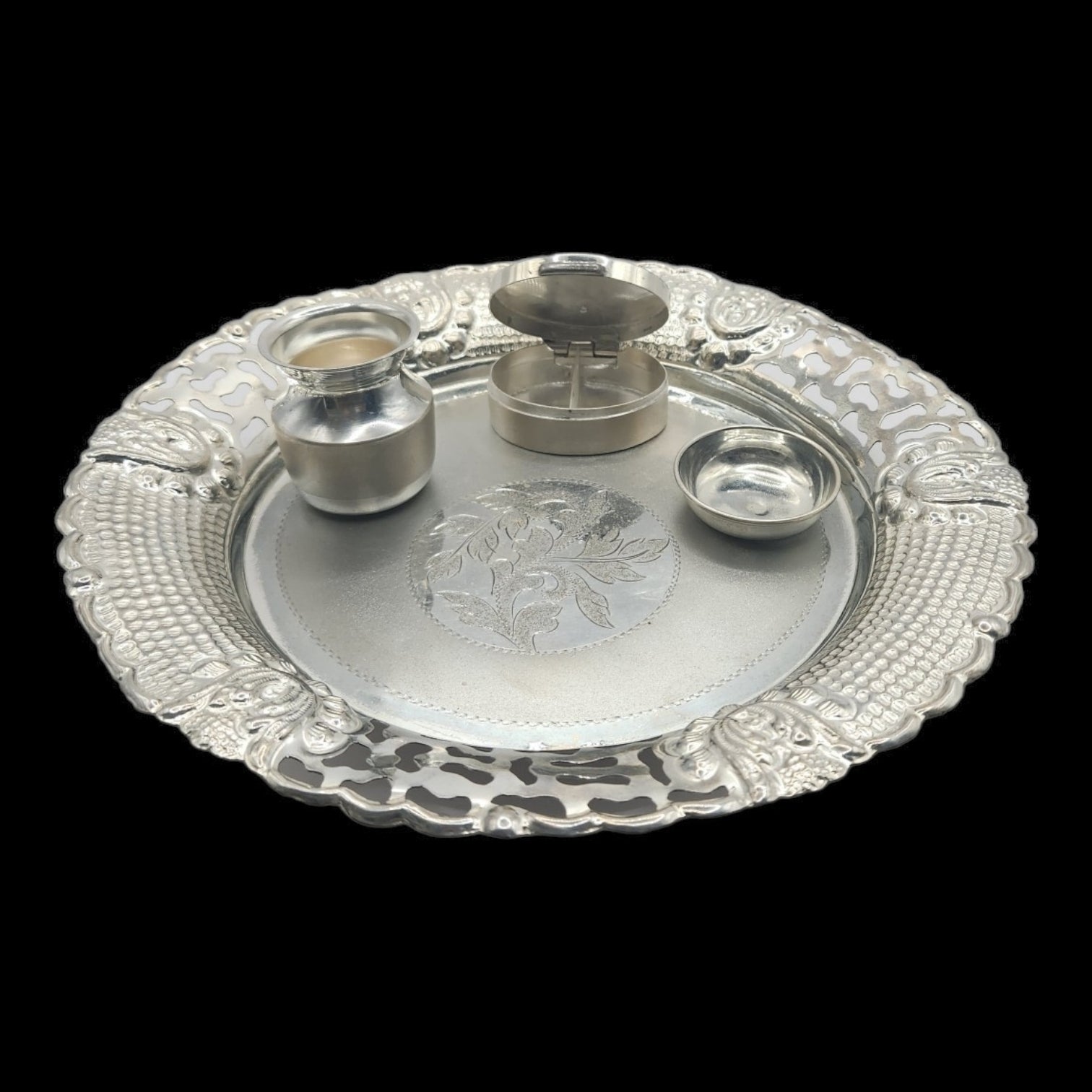 Beautiful pooja Thali Set in Silver to Enhance the Beauty of Your Festivals.