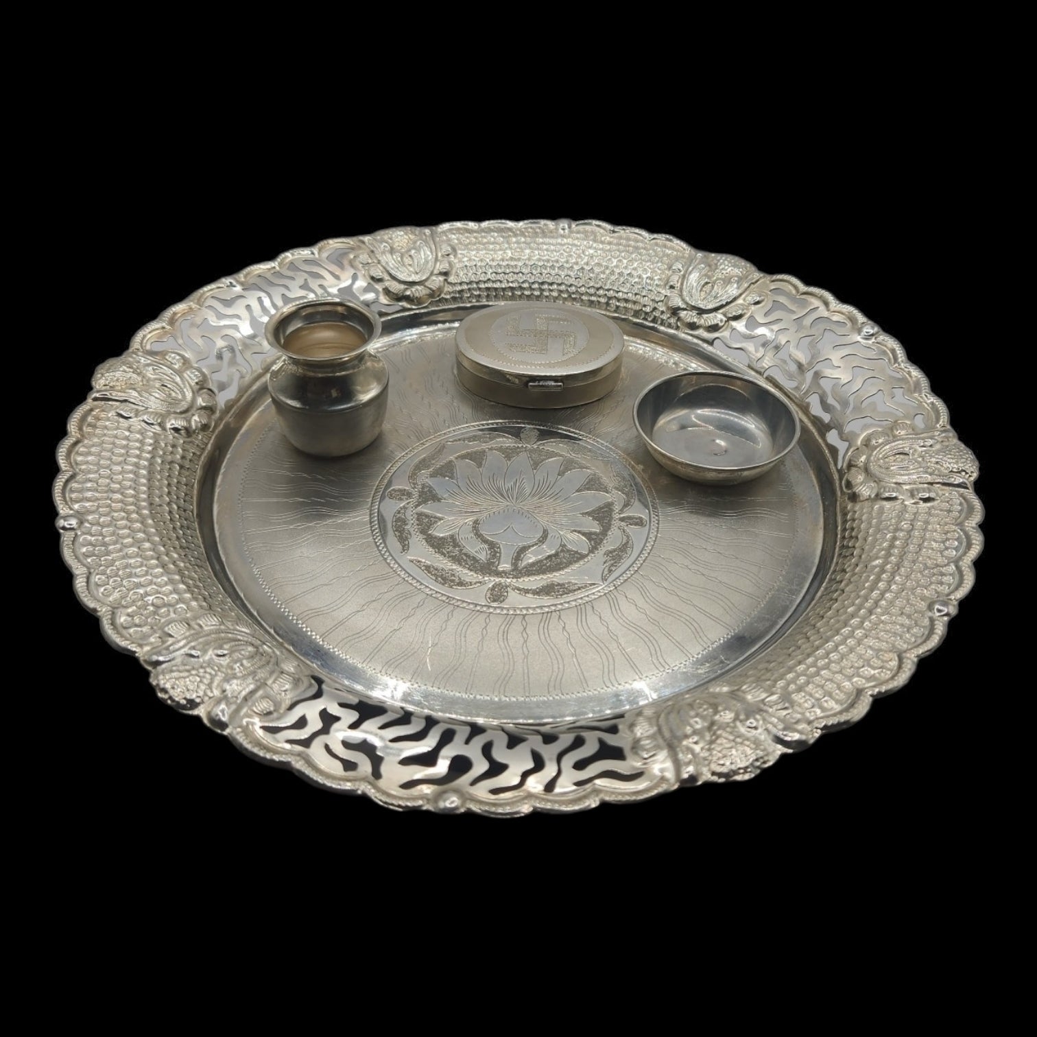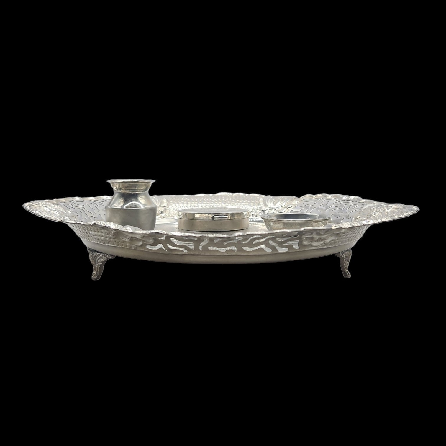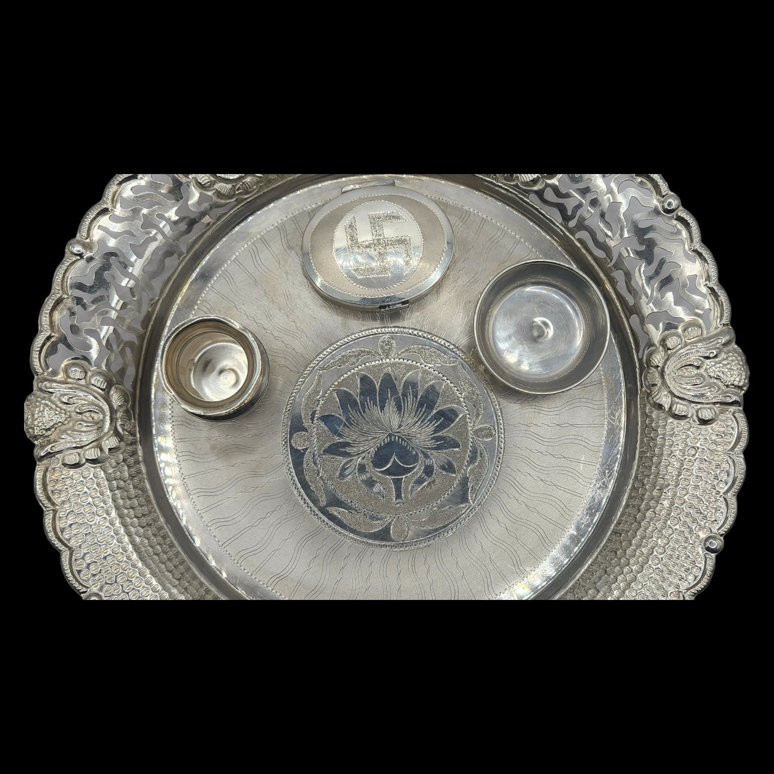Beautiful pooja Thali Set in Silver to Enhance the Beauty of Your Festivals.